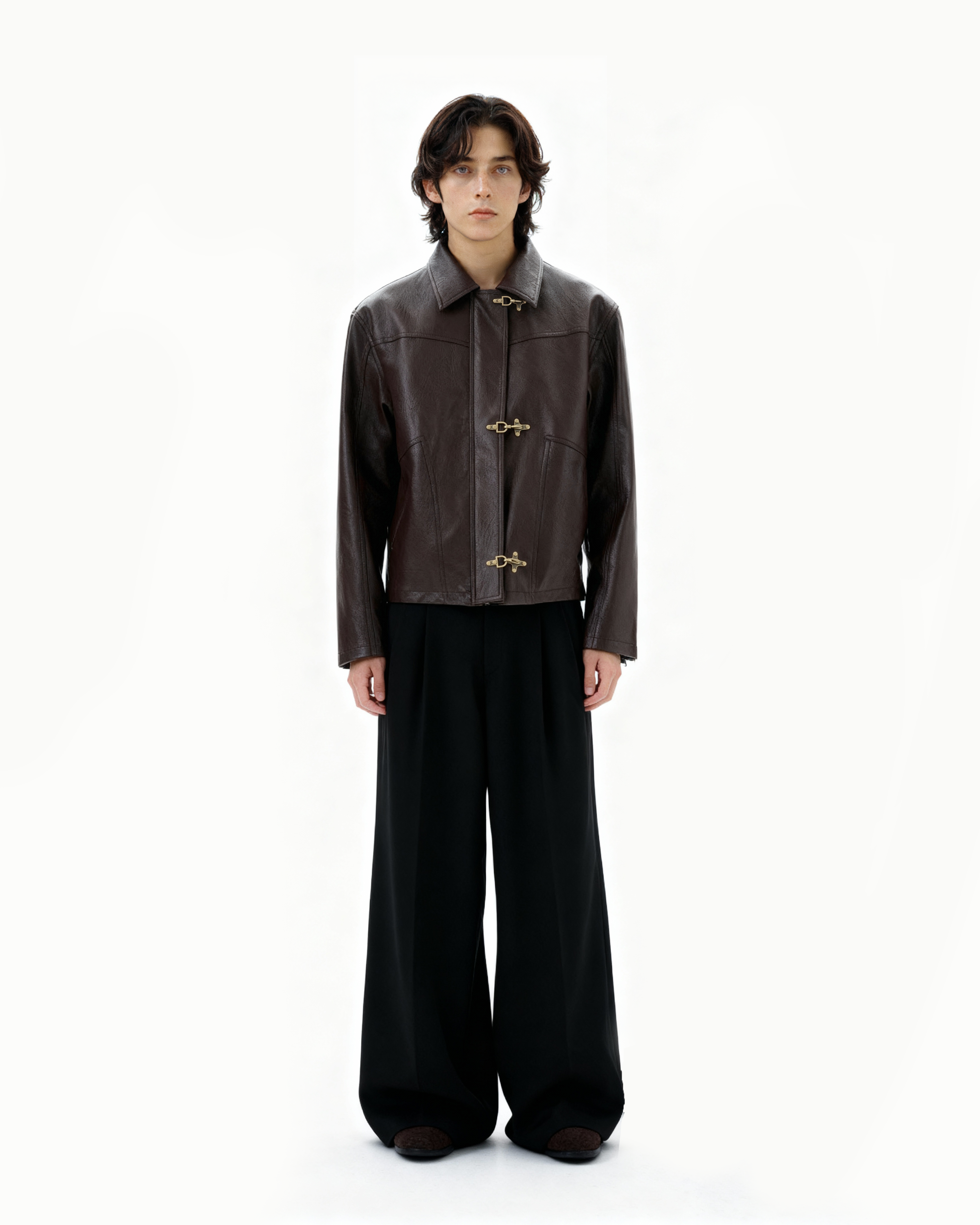 Overlap Fireman Buckle Mid-Crop High Collar Jacket