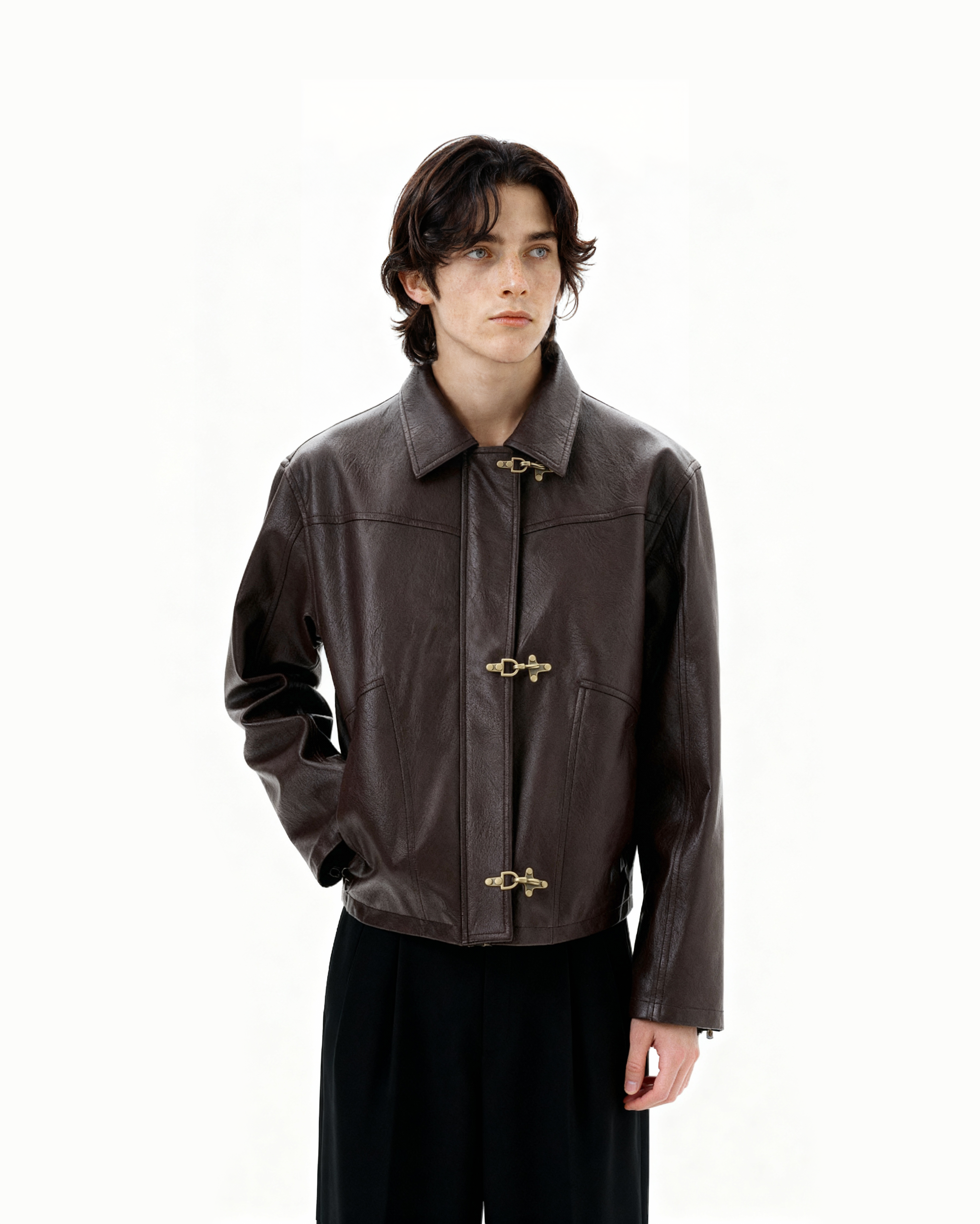 Fireman Buckle Mid-Crop Faux Leather Jacket