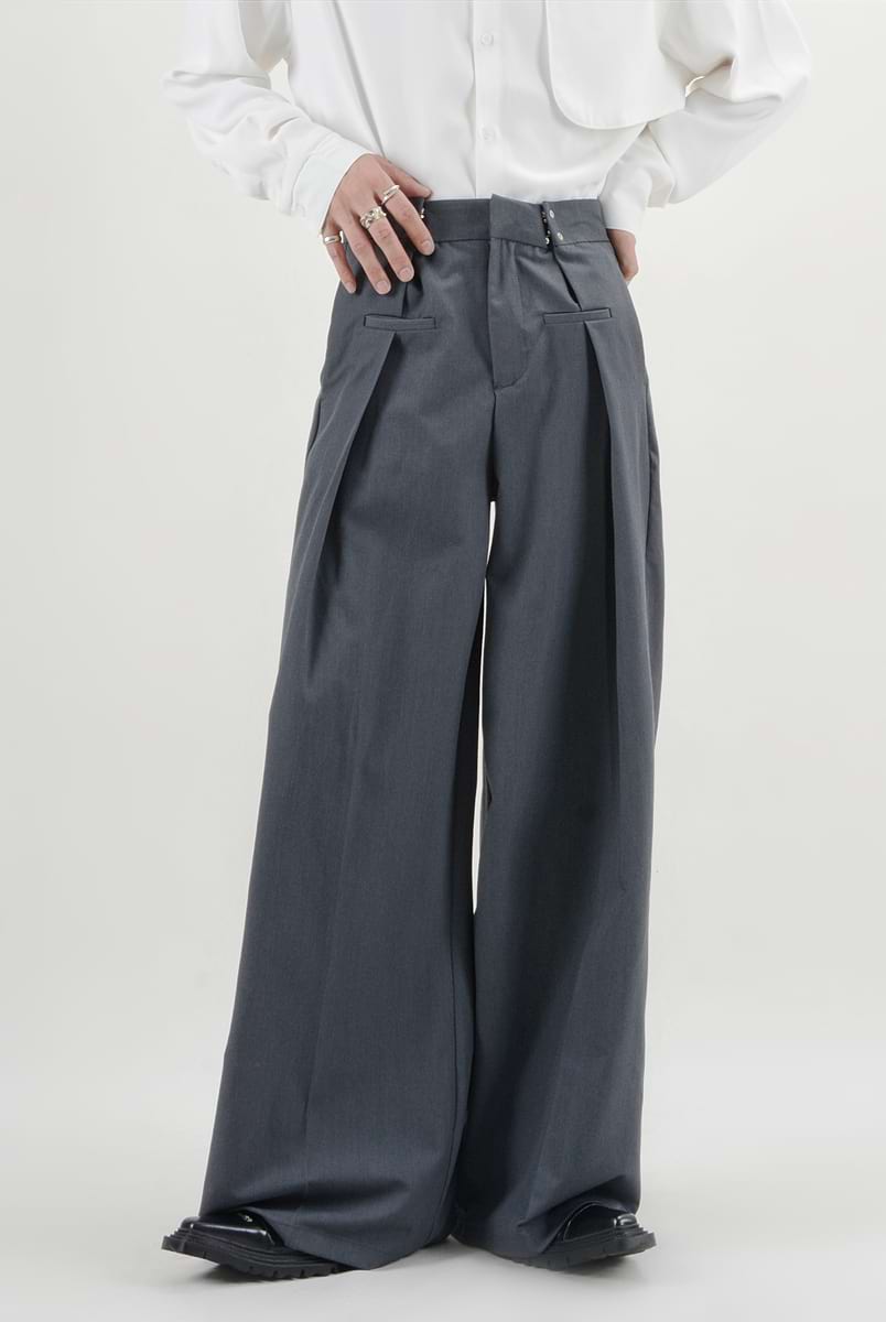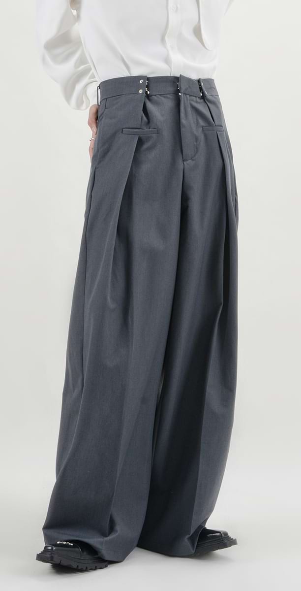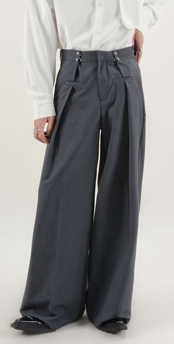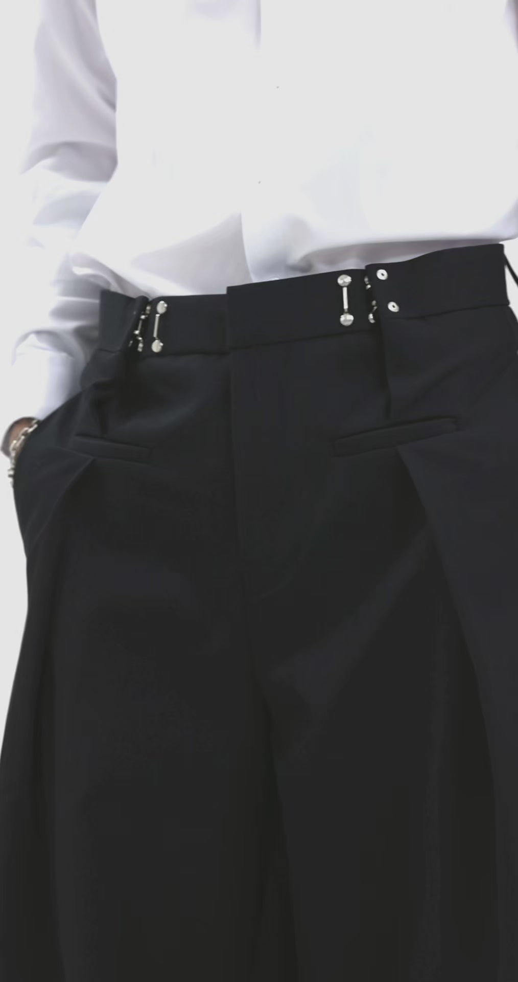 Read full Return PolicyStep into effortless style with our Adjustable Waist Hook Pleated Pants, where comfort meets a sharp silhouette.