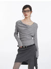 Asymmetric Cowl-Collar Long Sleeve Lightweight Top