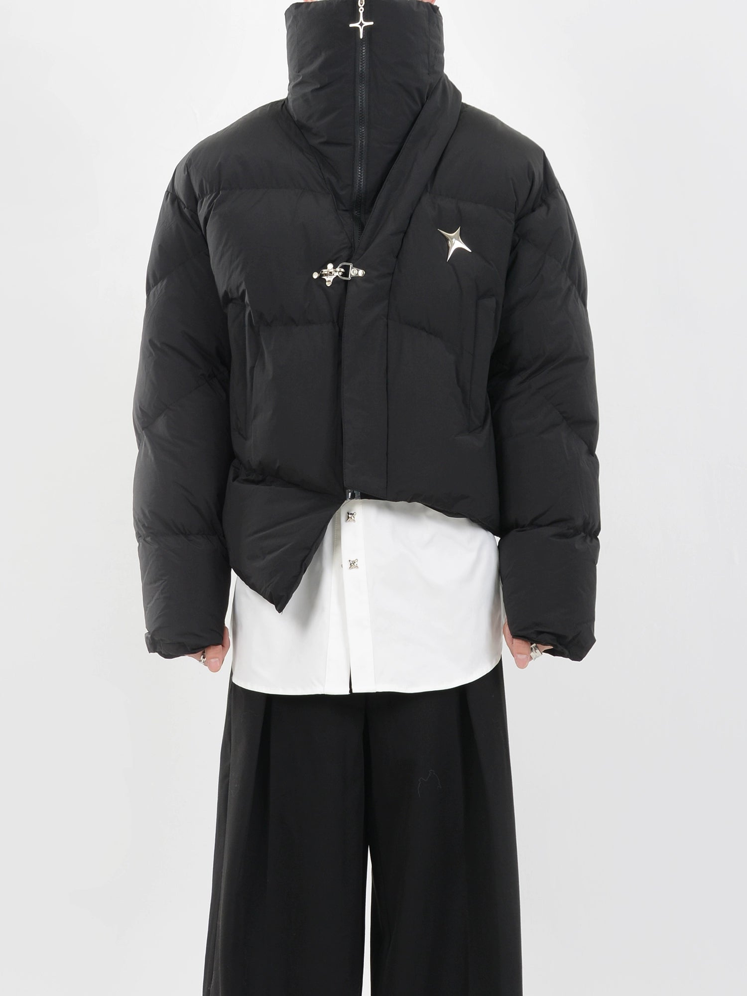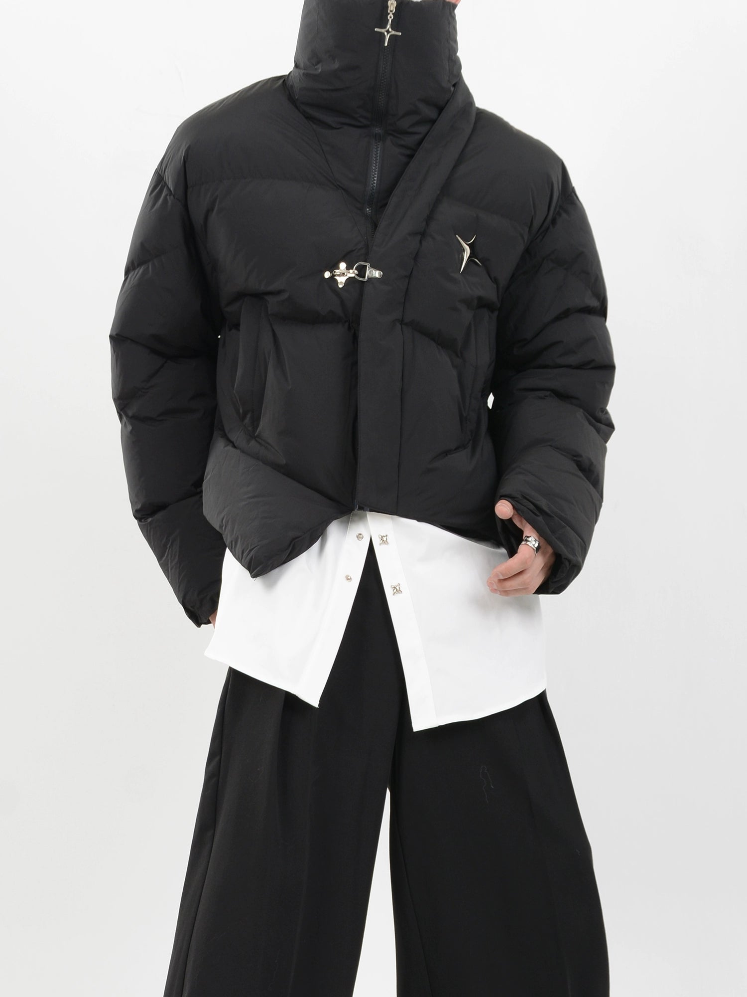 Asymmetric Puffer Jacket with Fireman Clasp Buckle