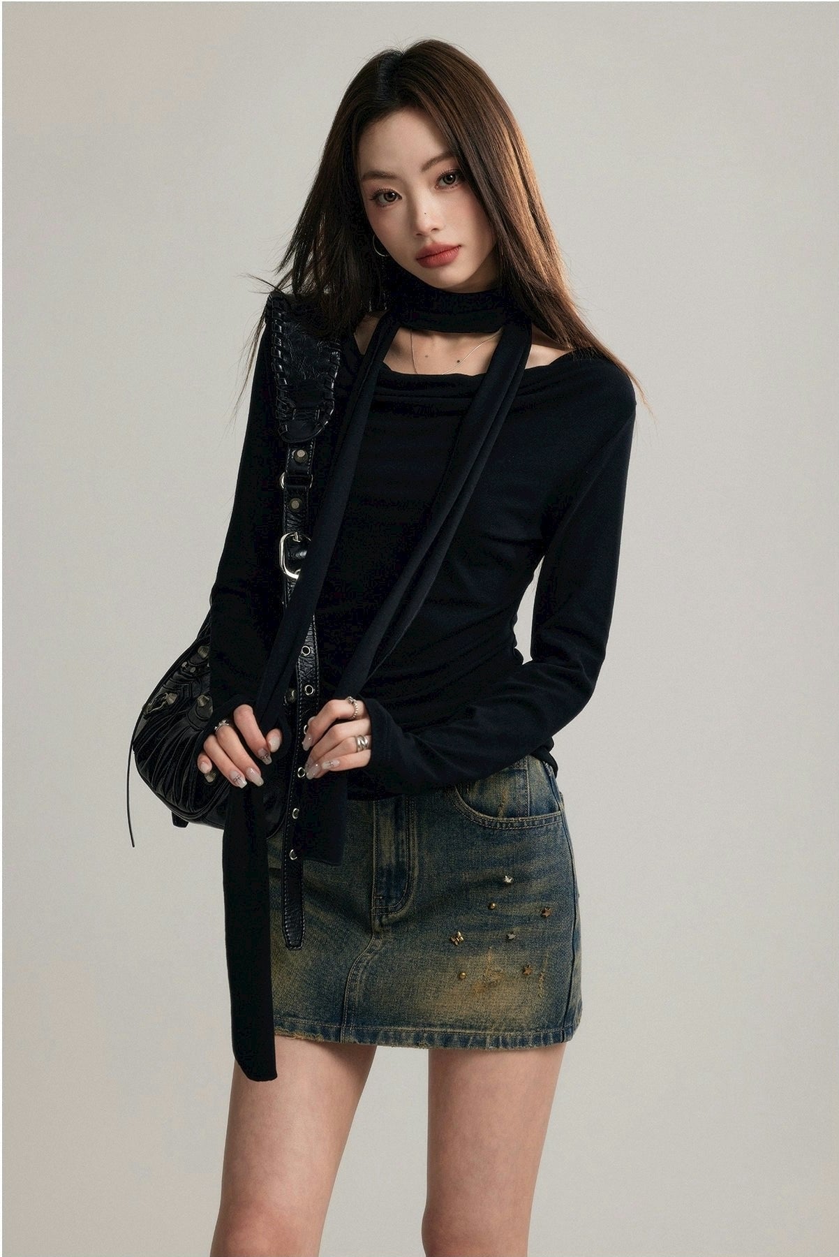 Whether it's for a casual day out or a polished office ensemble, this top pairs effortlessly with high-waisted jeans or a pencil skirt. The included scarf lends itself to create varied looks - from a nonchalant bow to a sleek, wrapped finish - aligning with a laid-back yet professional aesthetic.