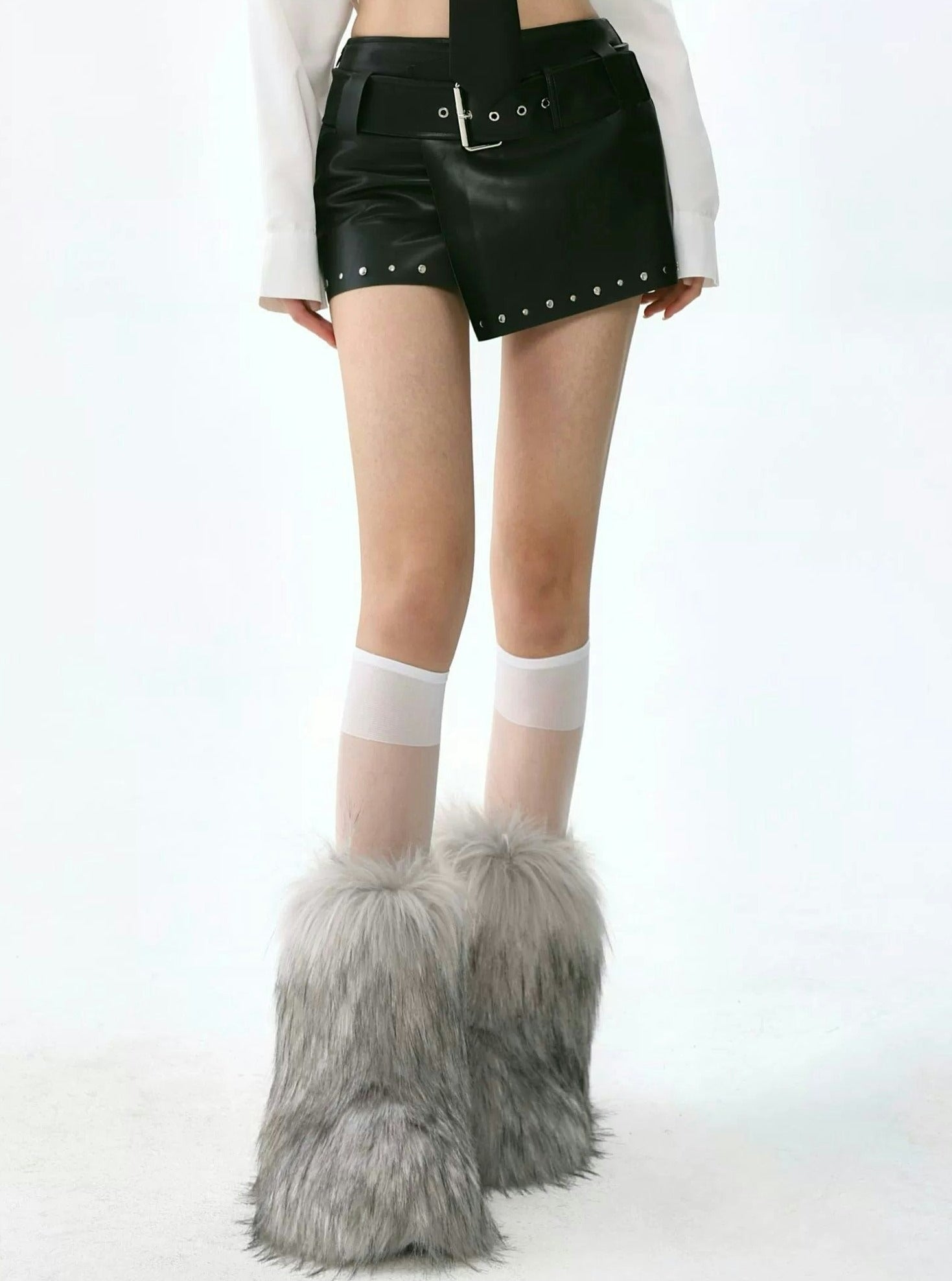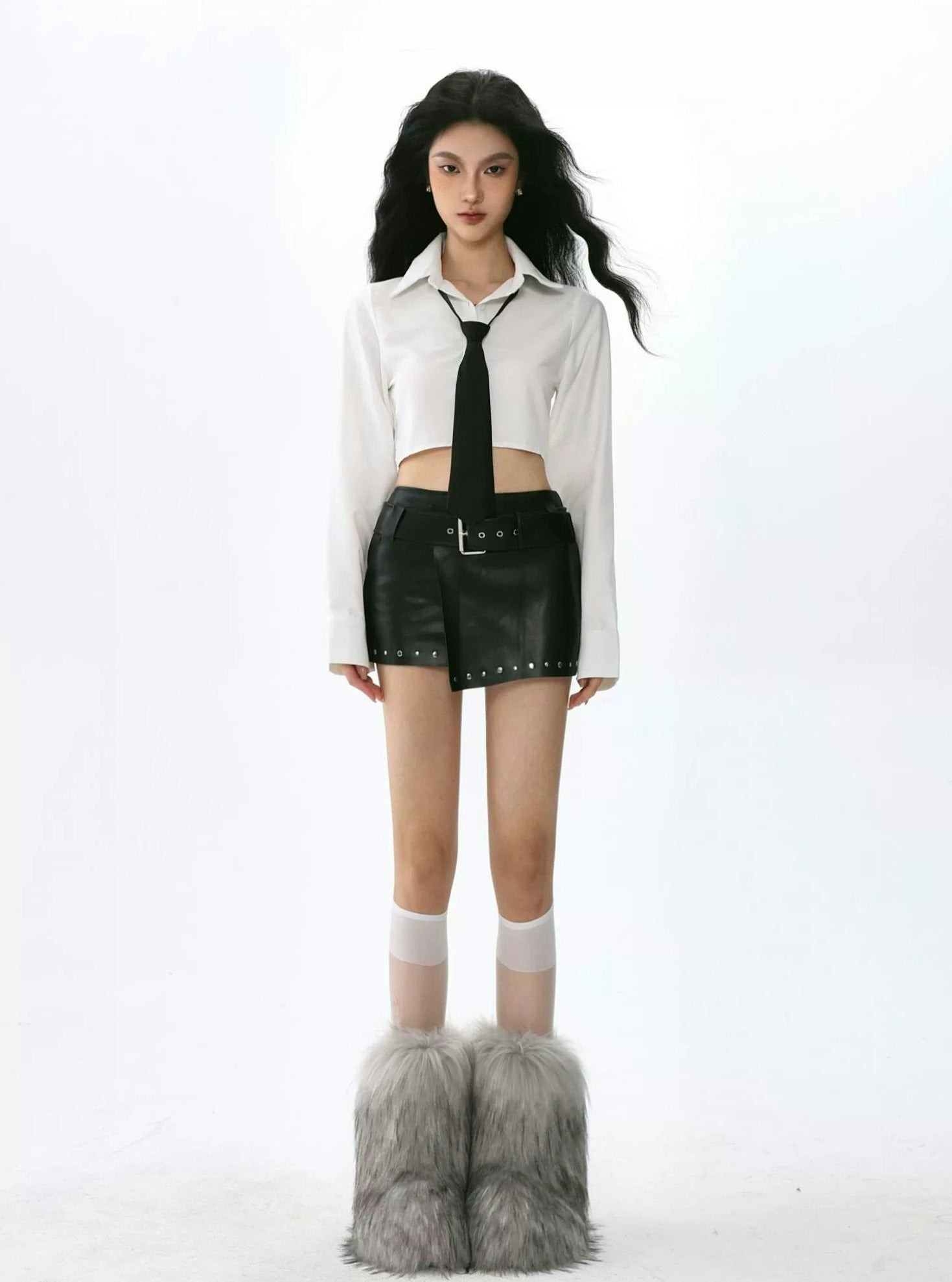 Belted Faux Leather Mini Skirt with Eyelet Trim