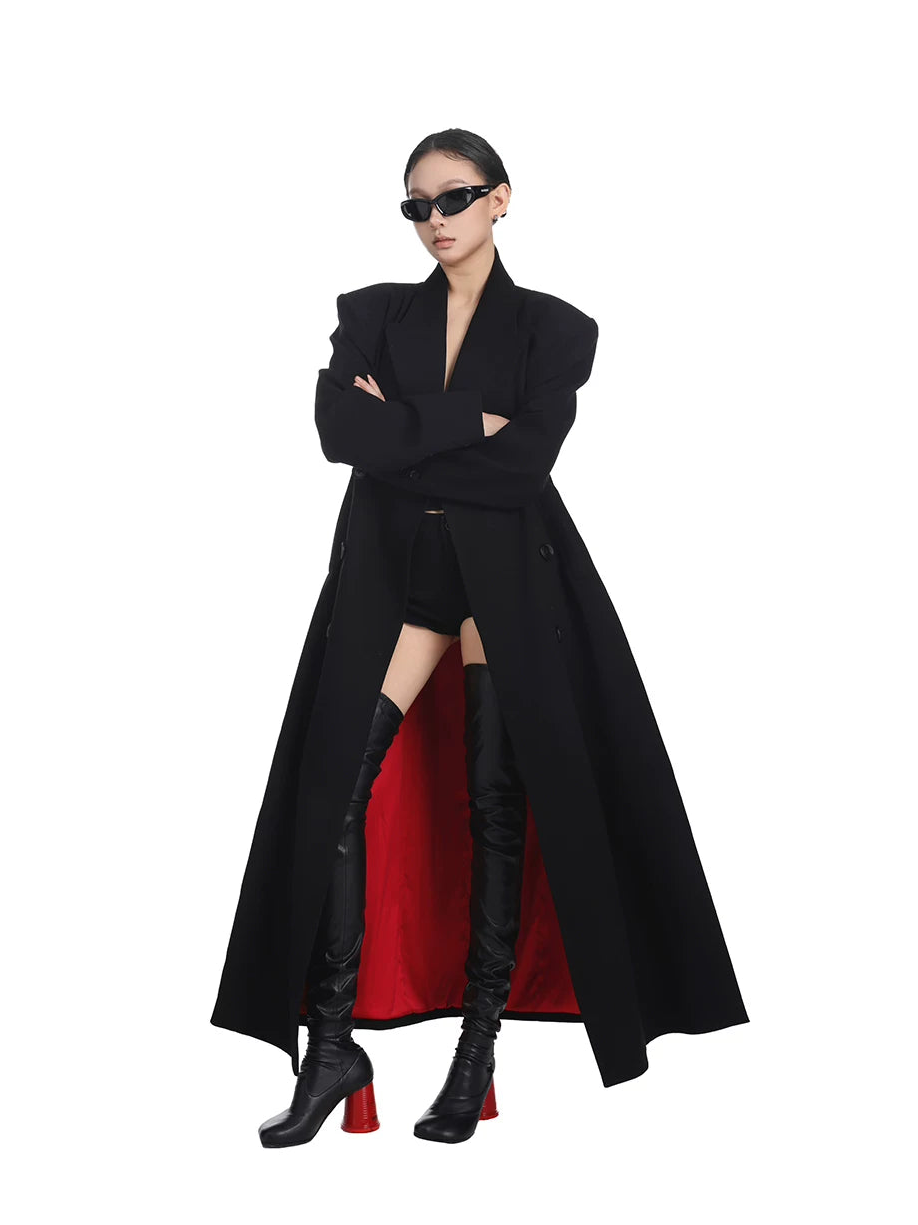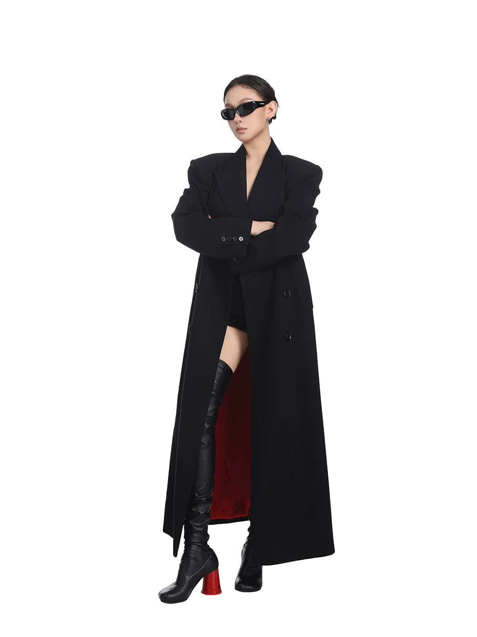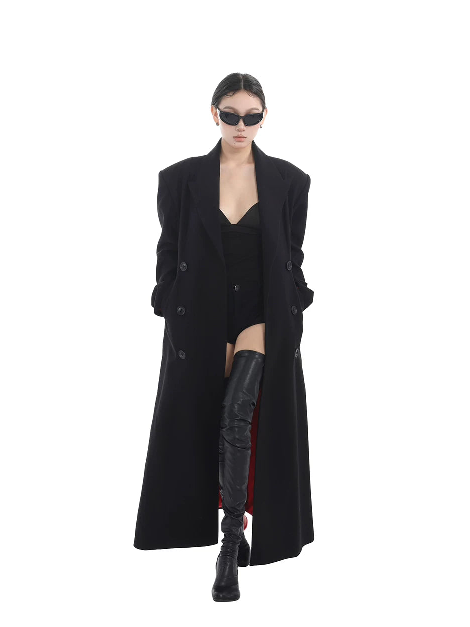Boxy Double Breasted Wide Lapel Longline Overcoat