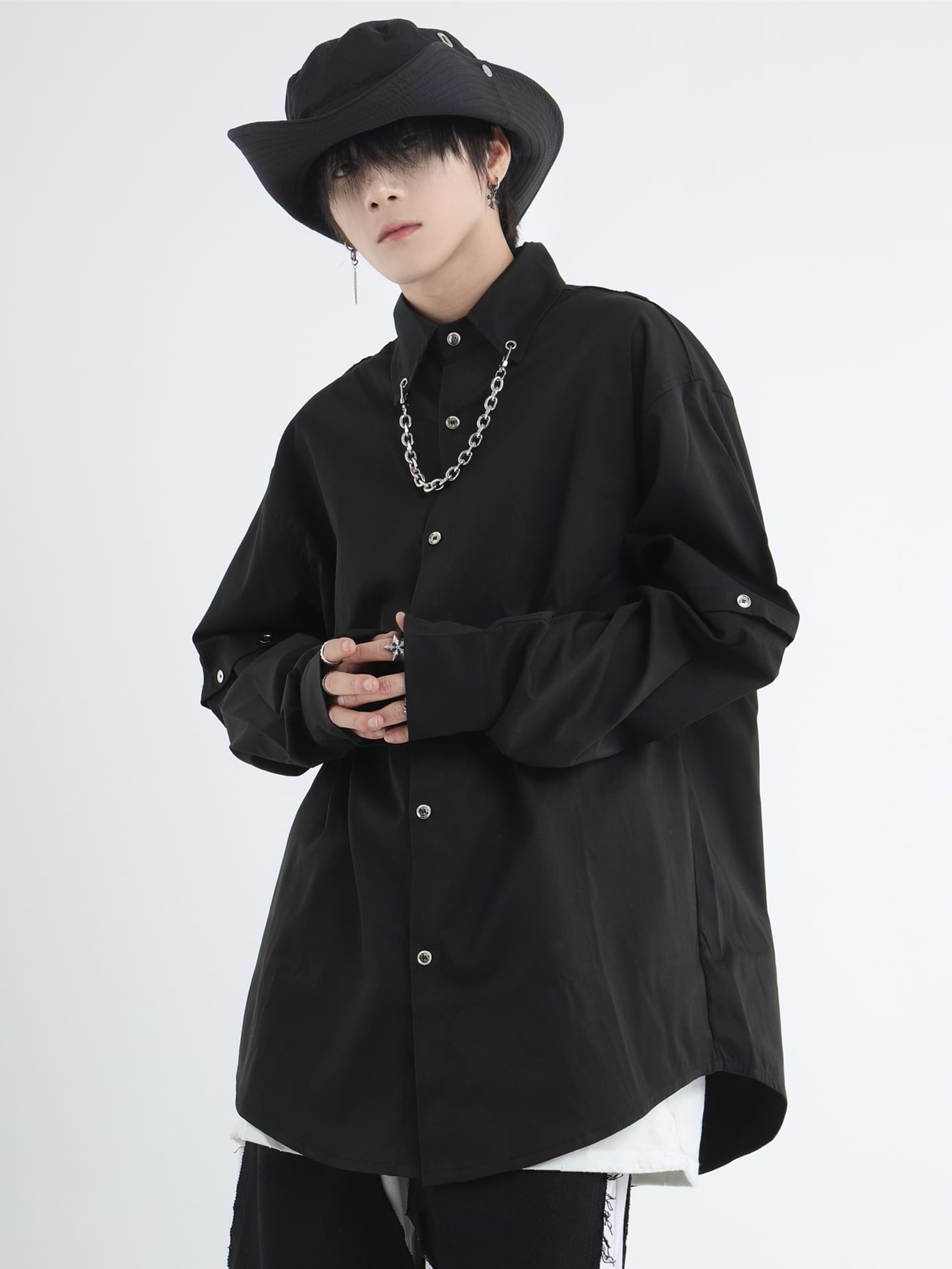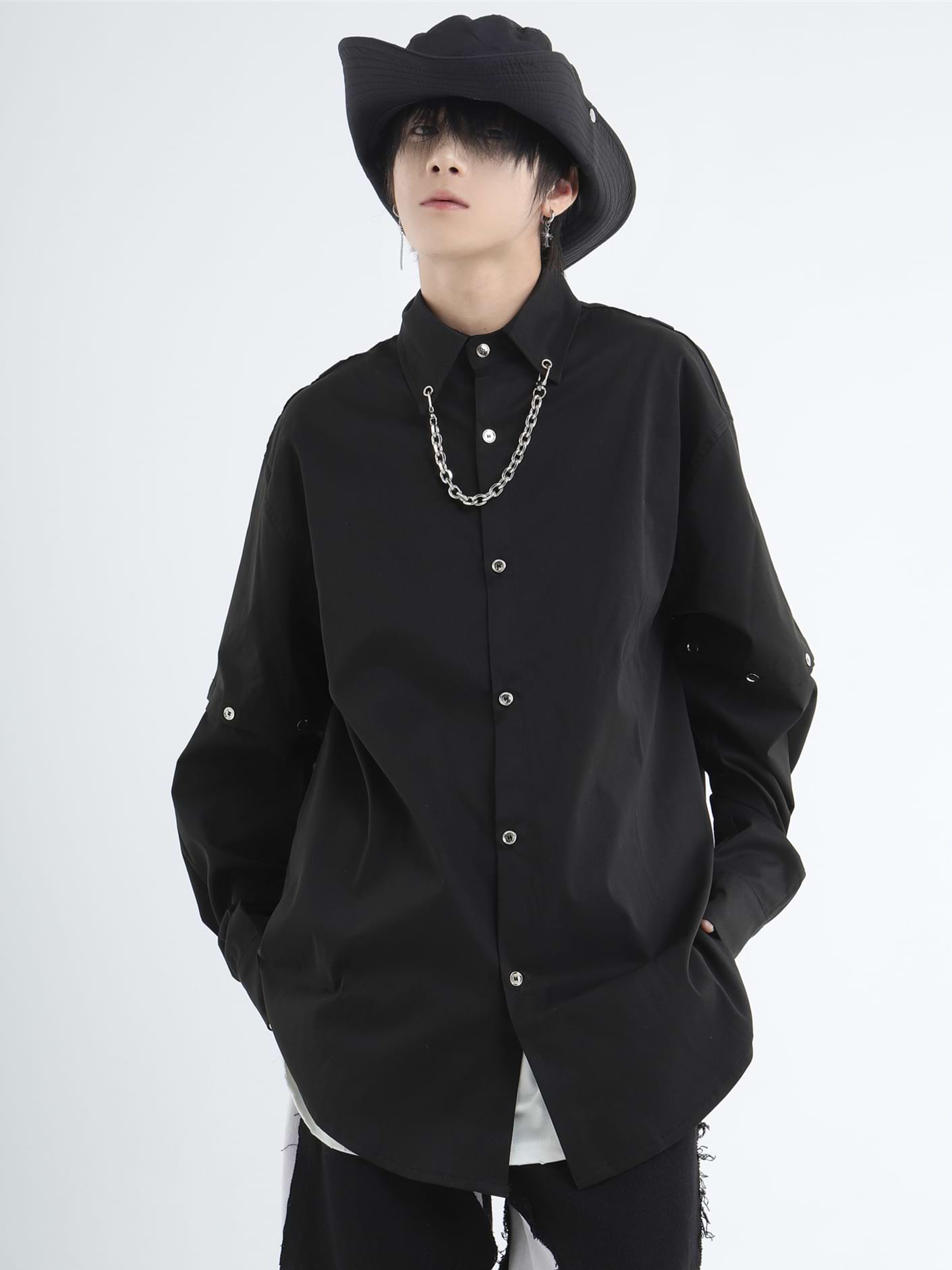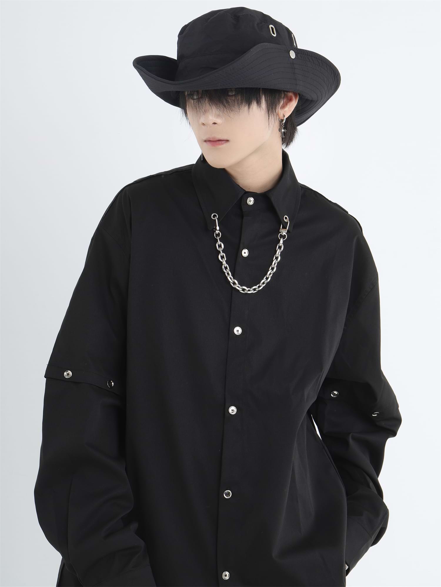 Button Shirt with Detachable Sleeves and Chain Accessory