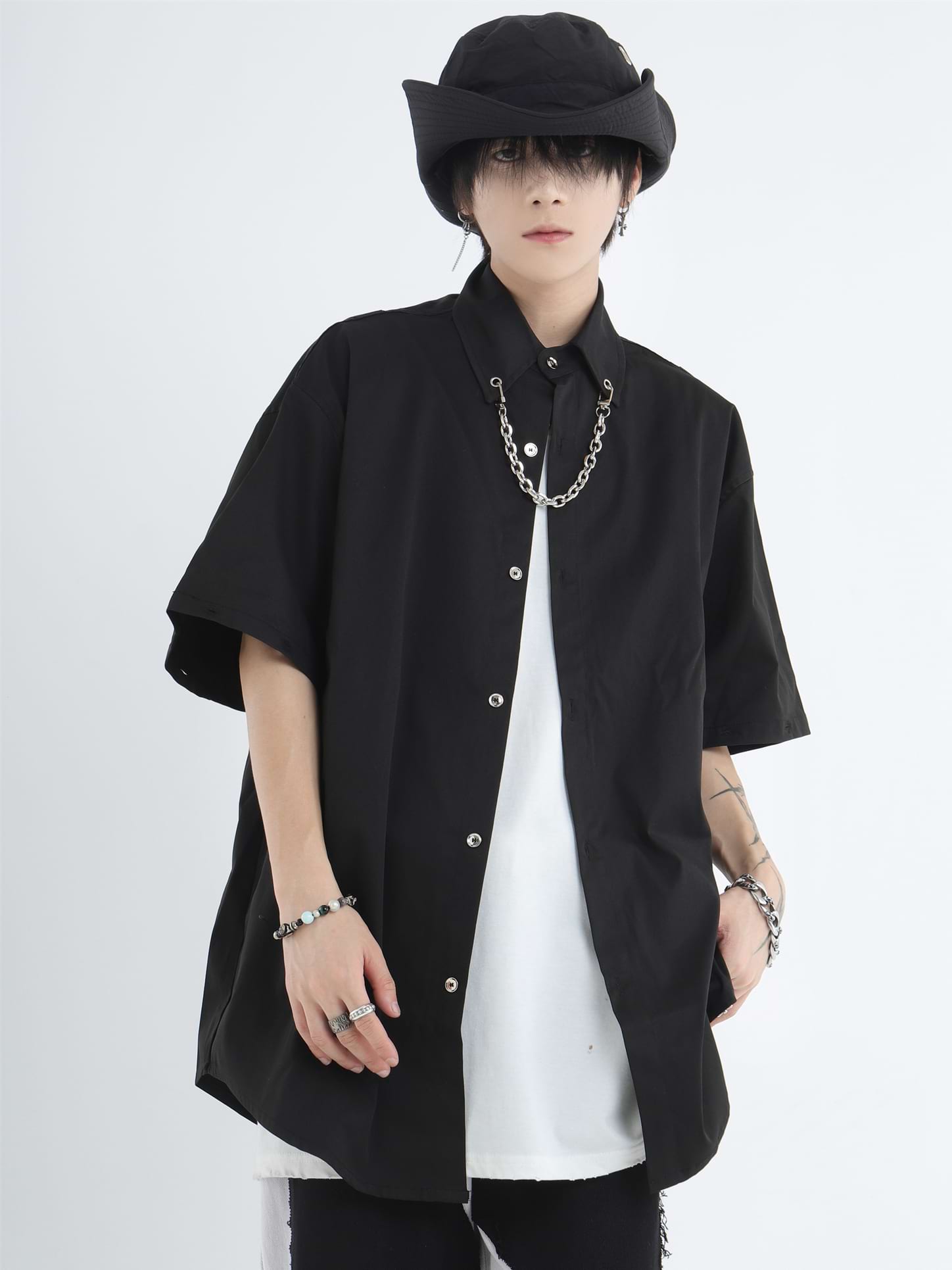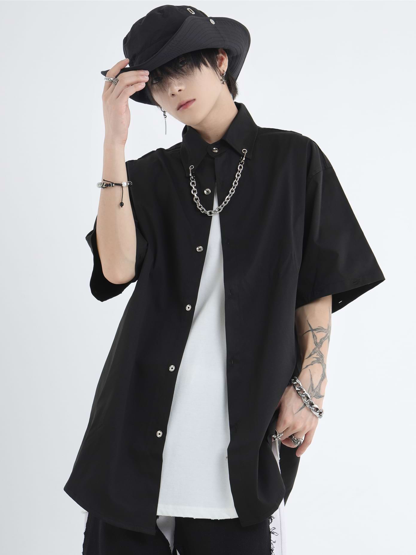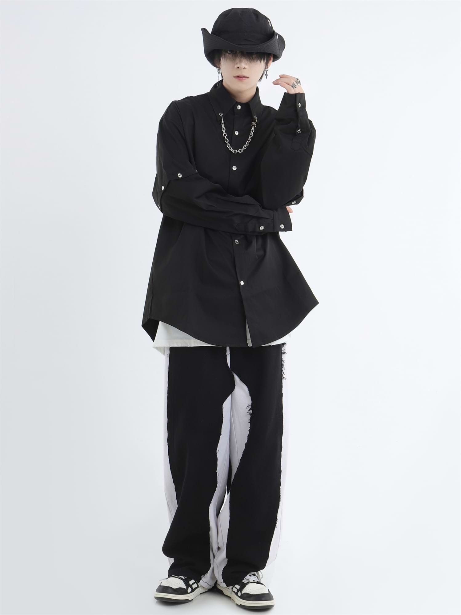 Button Shirt with Detachable Sleeves and Chain Accessory