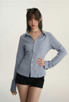 Crafted with a combination of 60% cotton and a mix of nylon, polyester, and spandex, this blouse offers both comfort and a perfect fit. The classic blue stripe pattern provides a timeless appeal while the multiple-button placket adds a modern twist. A convenient pocket and the lapel collar polish off the look, ensuring you're ready for any business casual or smart-casual setting.