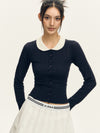 Cable Knit Crop Cardigan with Contrast Collar