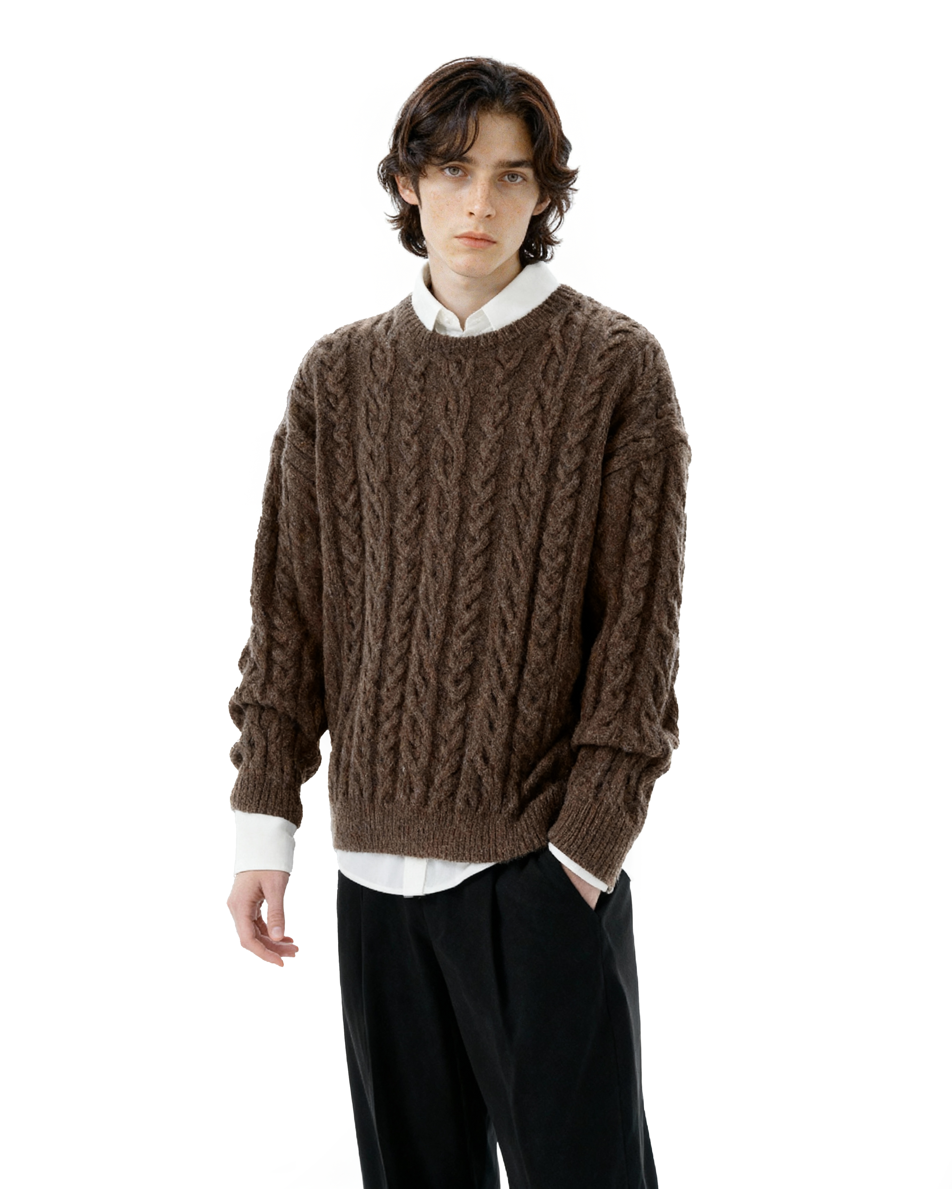 Read full Return PolicyA textured update to a classic essential, this Cable Knit Round-Neck Ribbed Trim Sweater brings character to a staple layering piece without trying too hard.