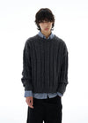Cable Knit Round-Neck Ribbed Trim Sweater