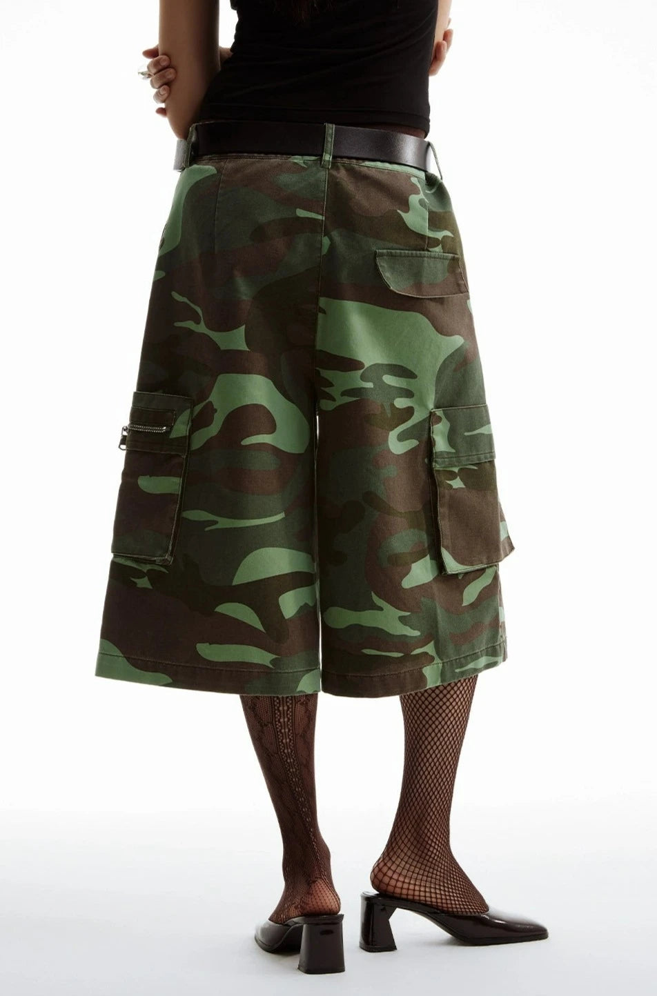 Read full Return PolicyEmbrace the utility trend with effortless cool in these Camouflage Cargo Culotte Shorts, perfect for the urban explorer.