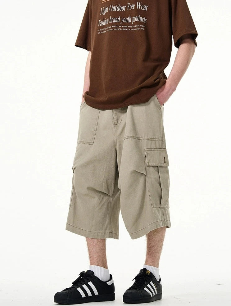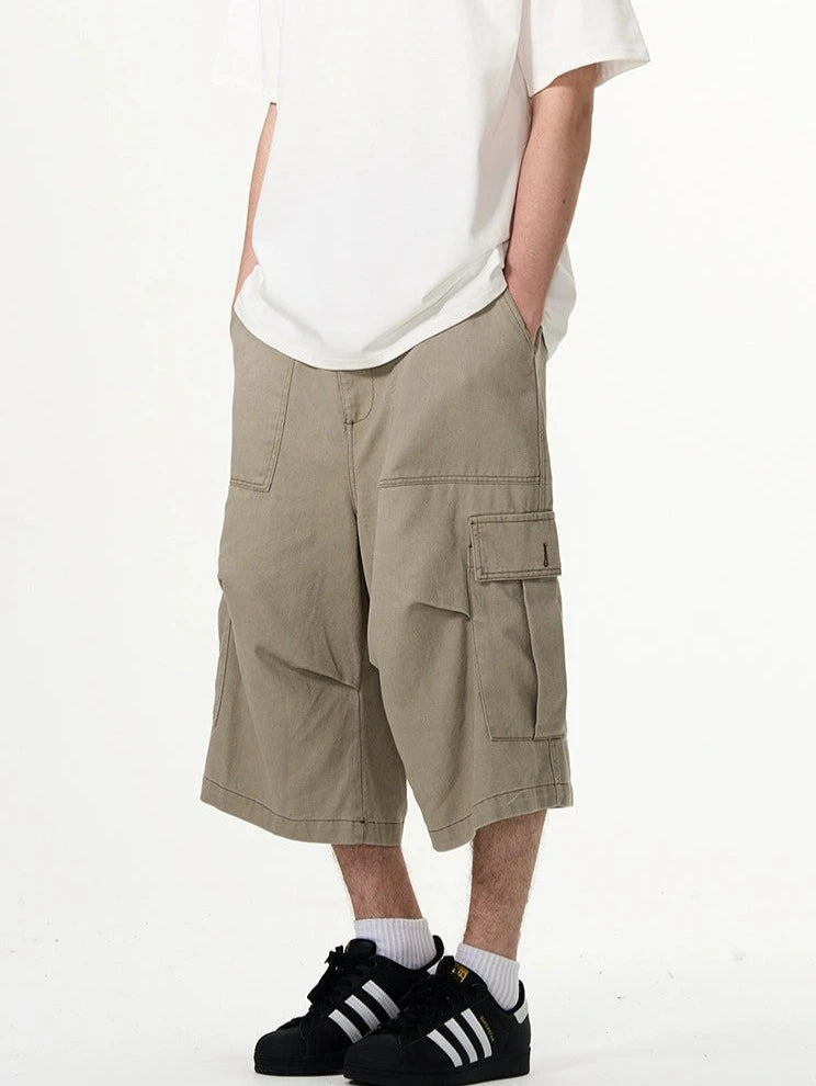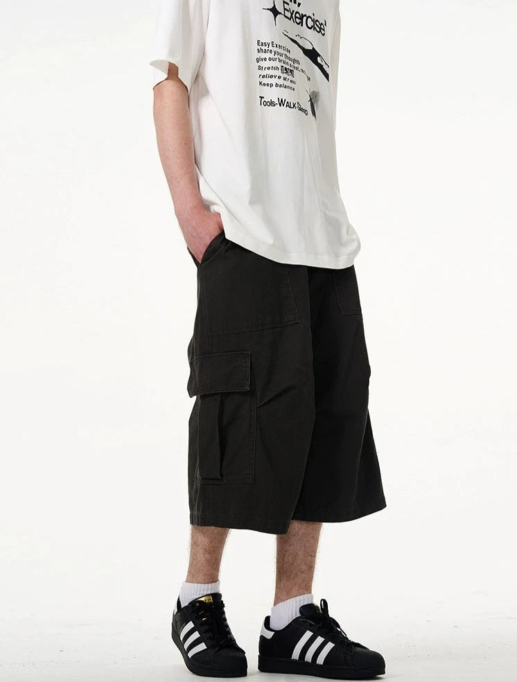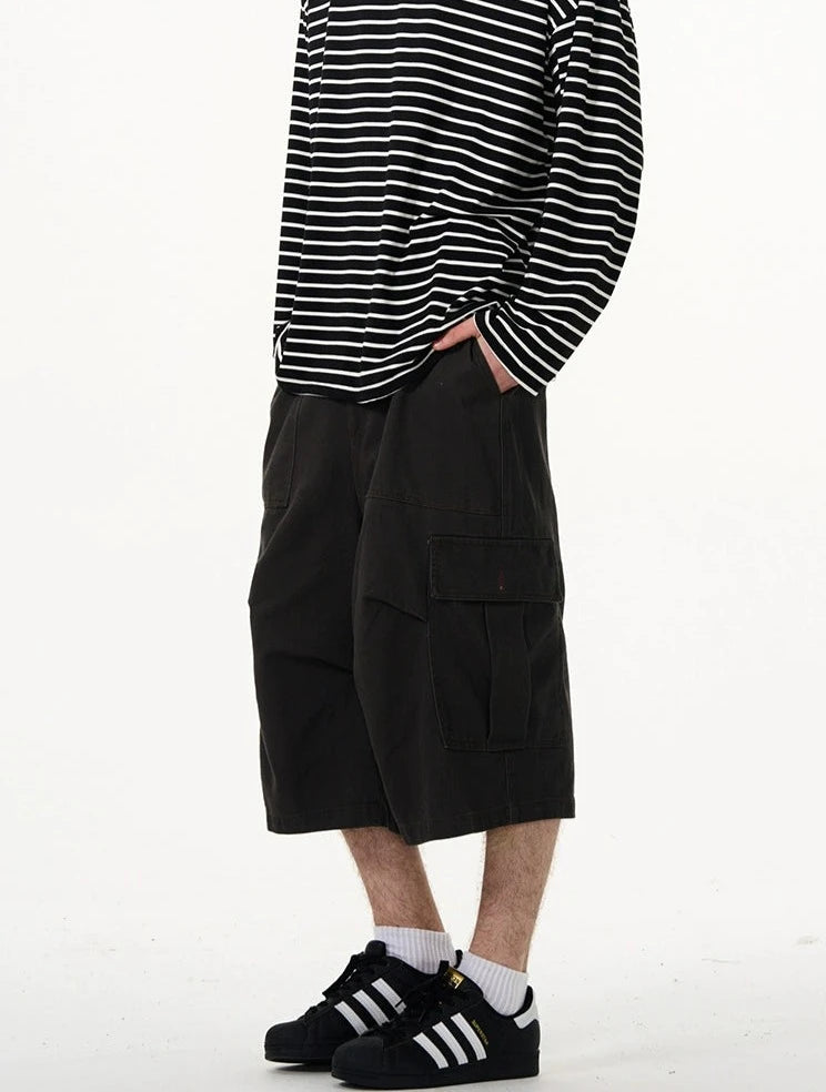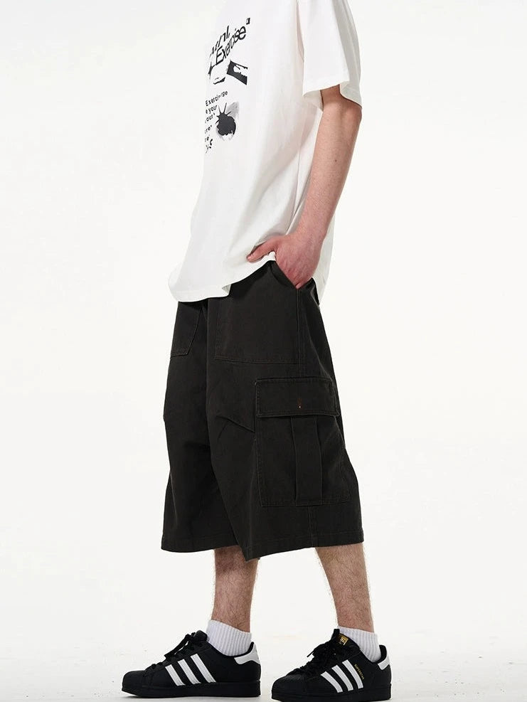 Crafted with utmost attention to detail, these knee-length shorts feature a robust fabric blend that's pre-washed for a lived-in feel. The multiple cargo pockets not only enhance the utilitarian appeal but also add a layer of functionality, perfect for keeping your essentials at hand. The straight, loose fit ensures ease of movement and comfort throughout your day. Whether you're running errands or meeting friends for a casual evening, these shorts offer endless styling possibilities.