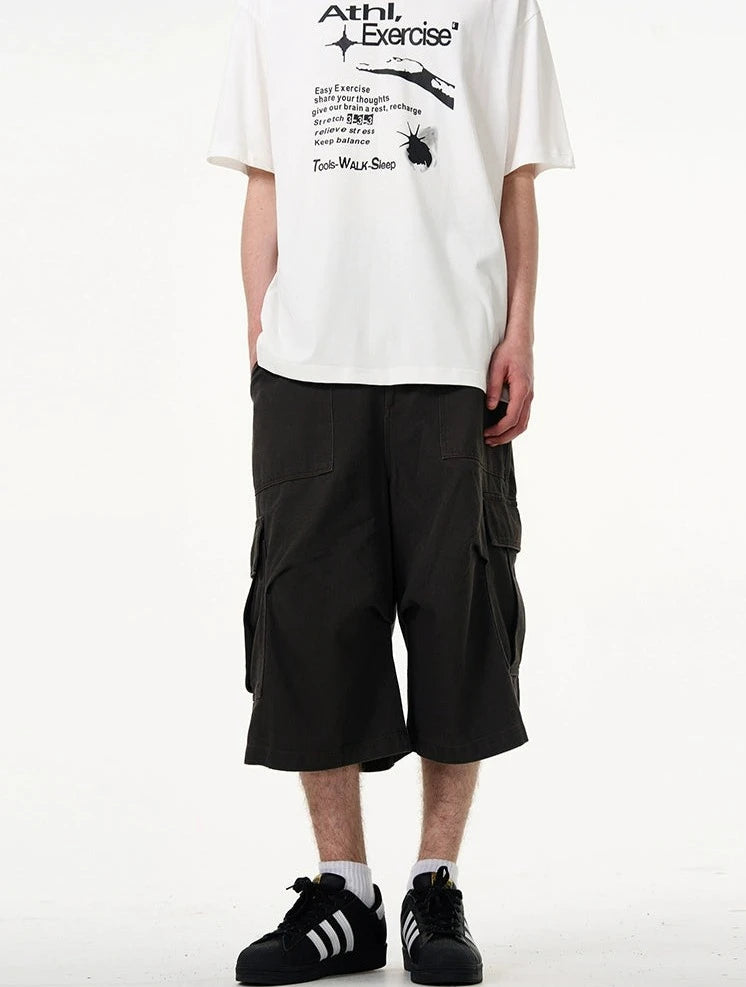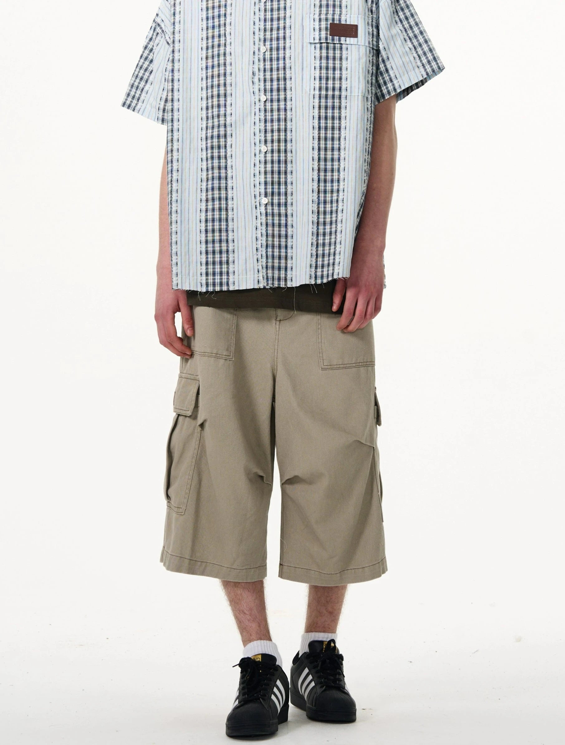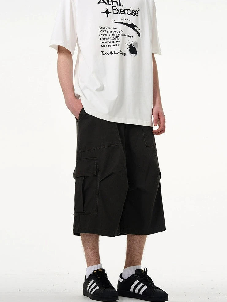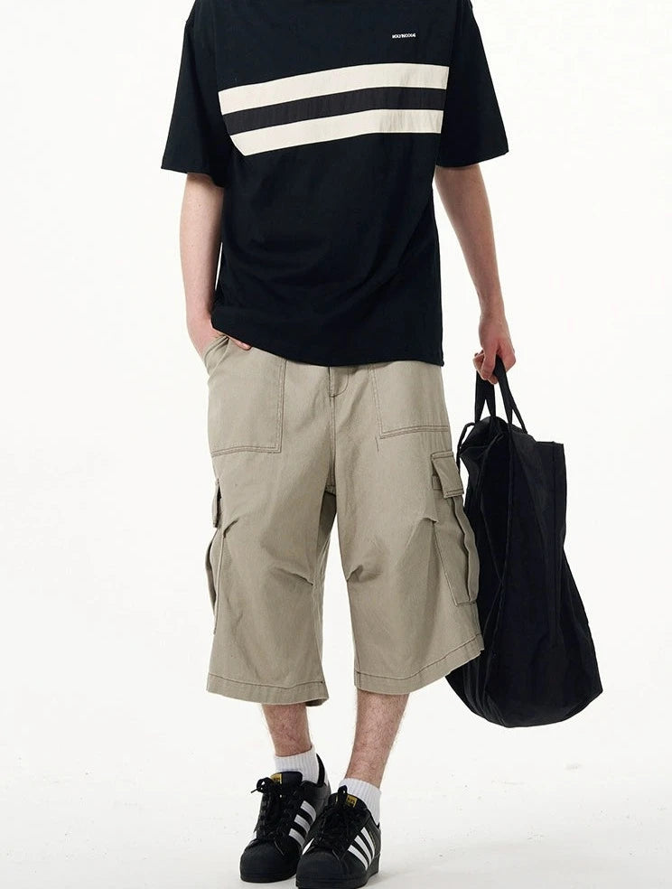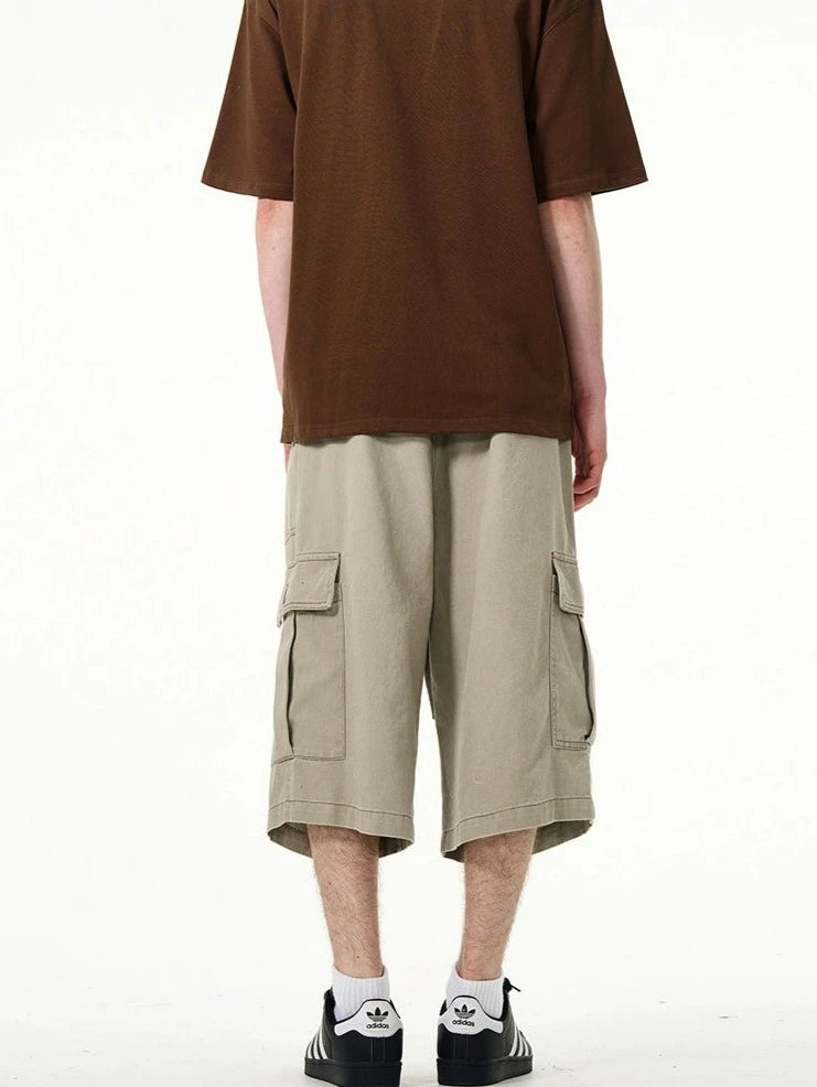 Crafted with utmost attention to detail, these knee-length shorts feature a robust fabric blend that's pre-washed for a lived-in feel. The multiple cargo pockets not only enhance the utilitarian appeal but also add a layer of functionality, perfect for keeping your essentials at hand. The straight, loose fit ensures ease of movement and comfort throughout your day. Whether you're running errands or meeting friends for a casual evening, these shorts offer endless styling possibilities.