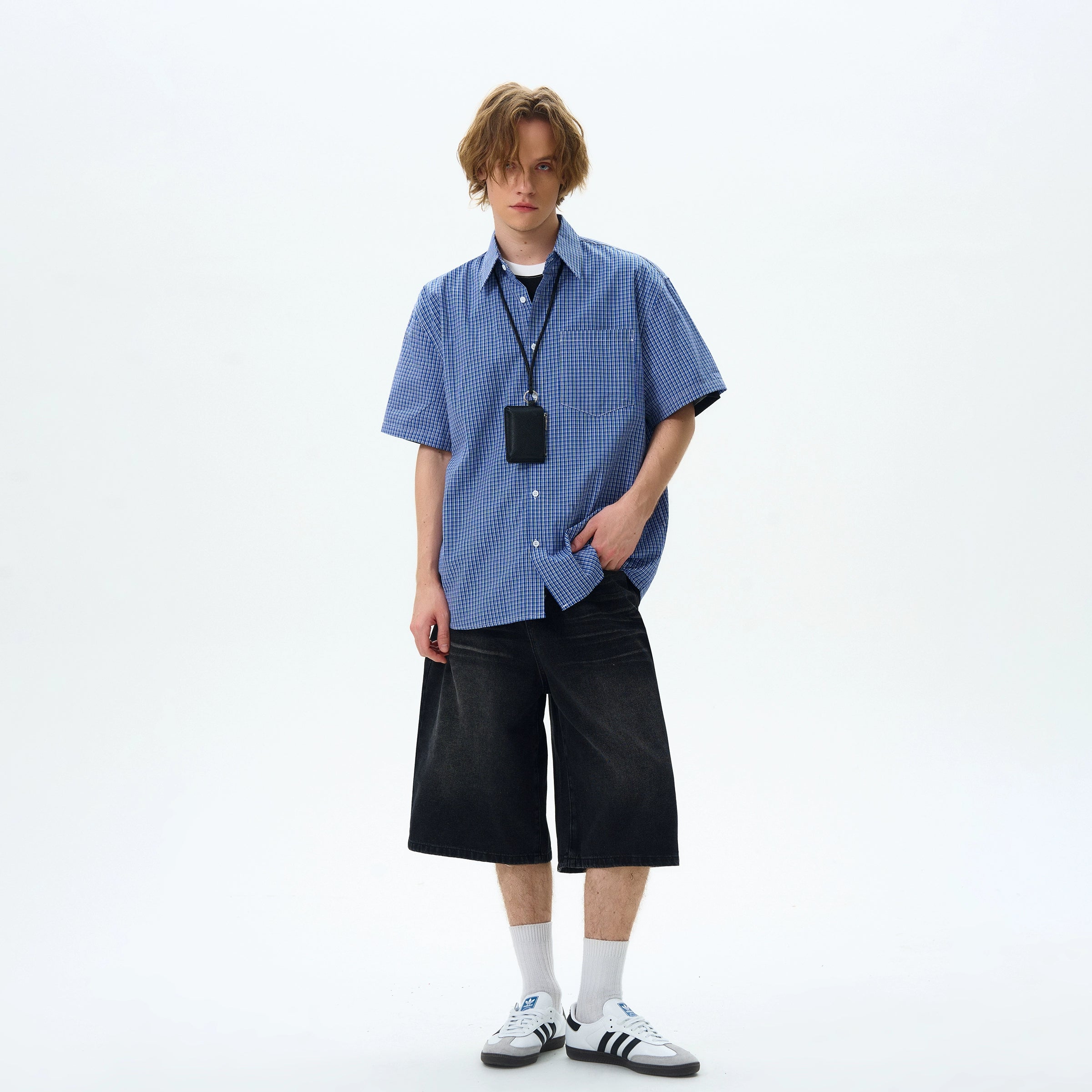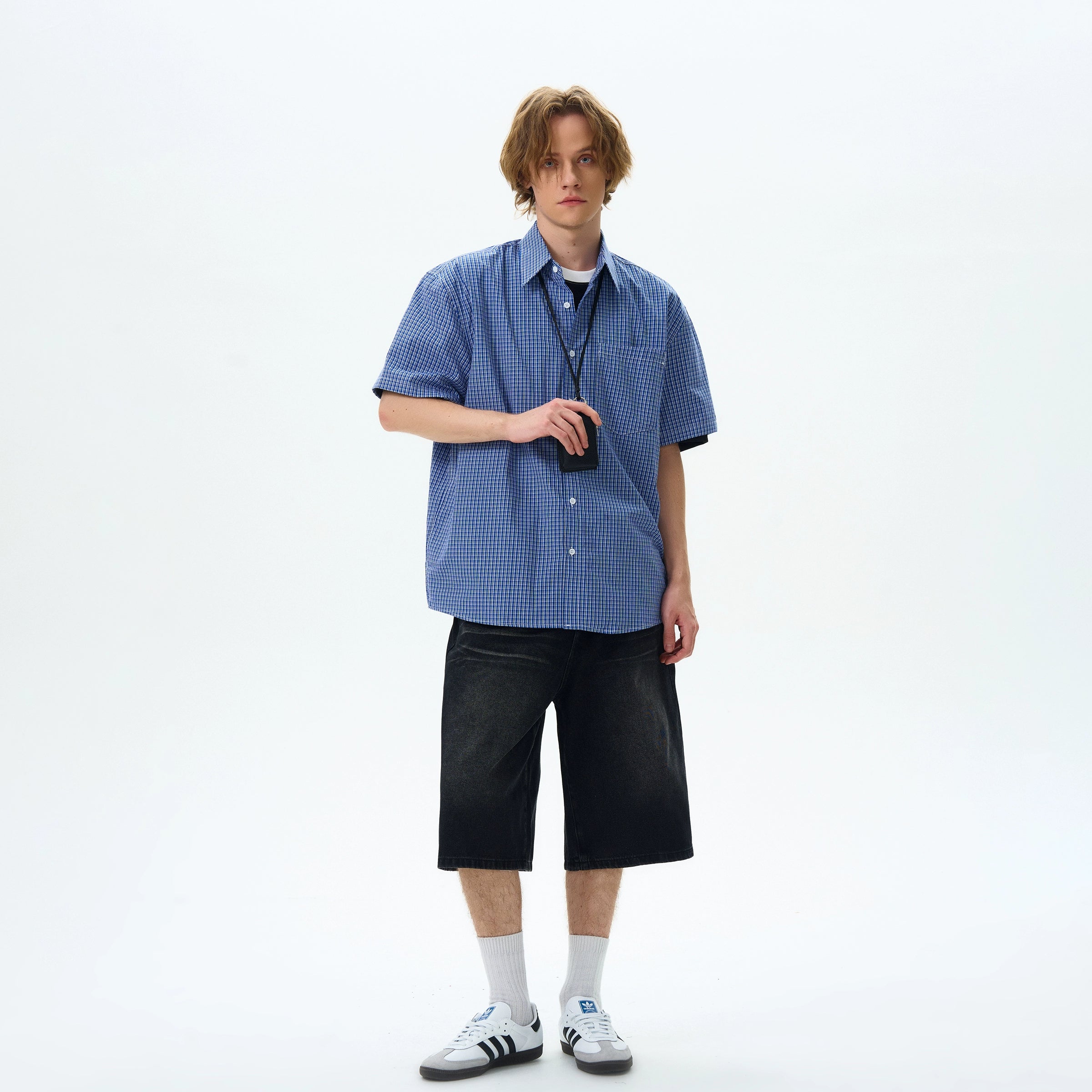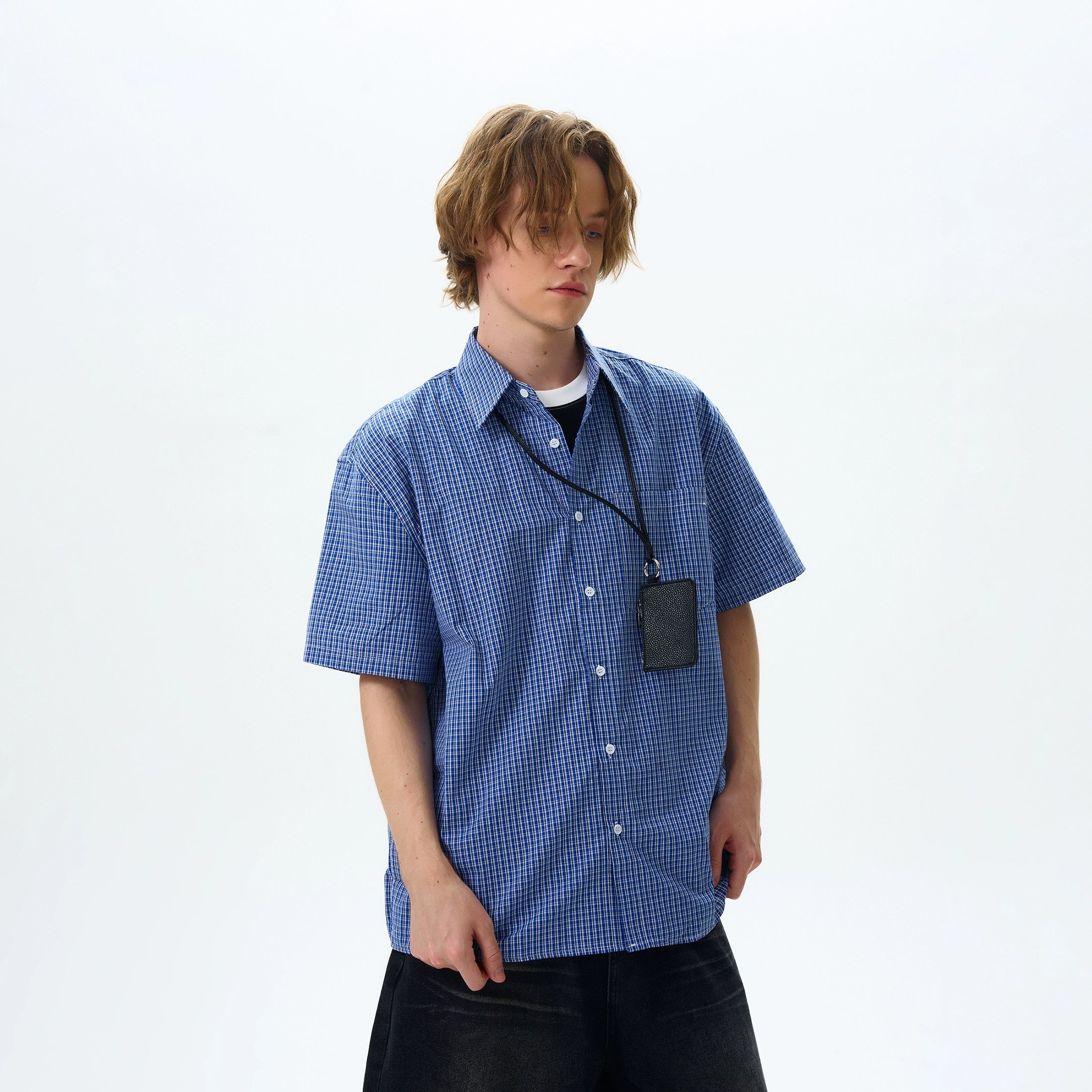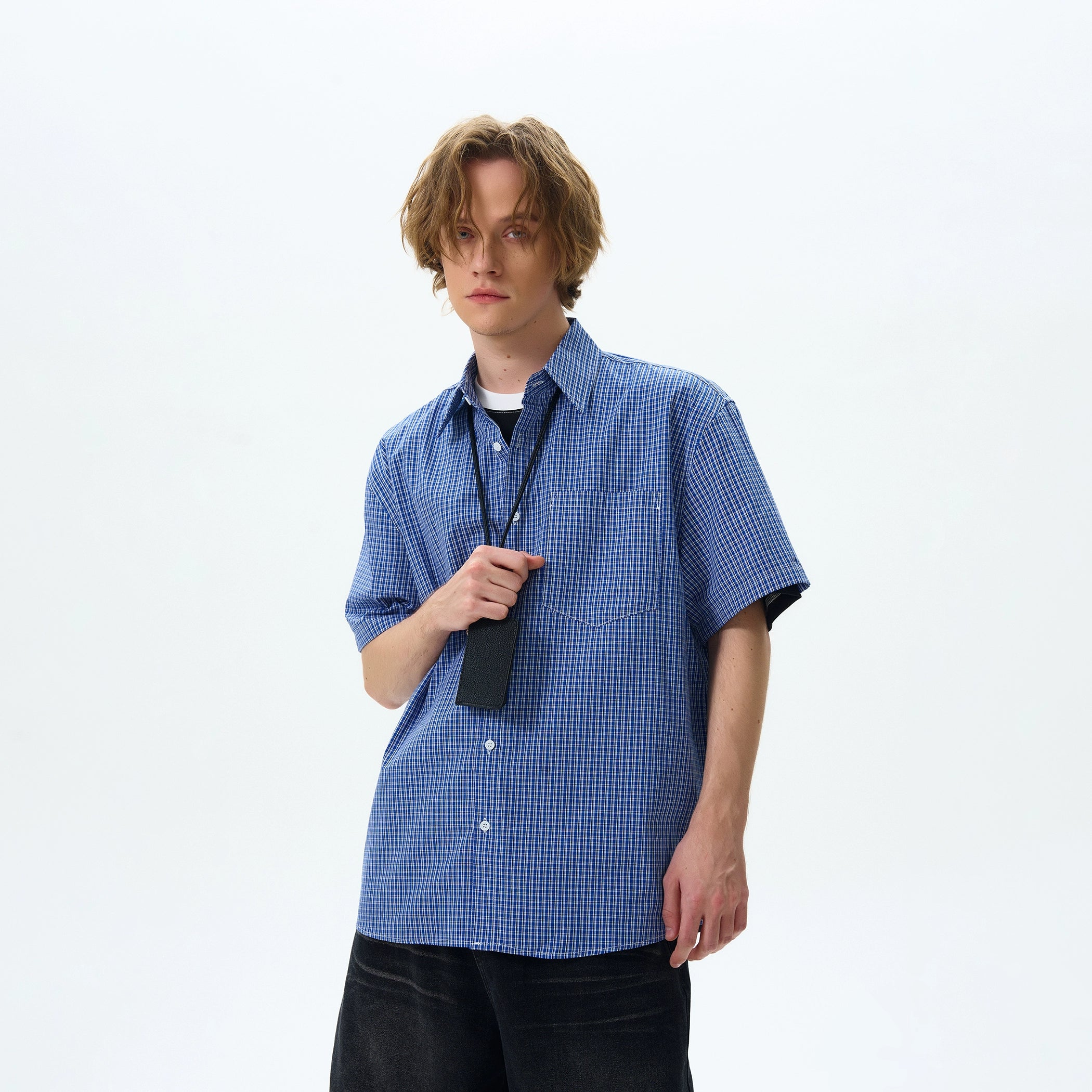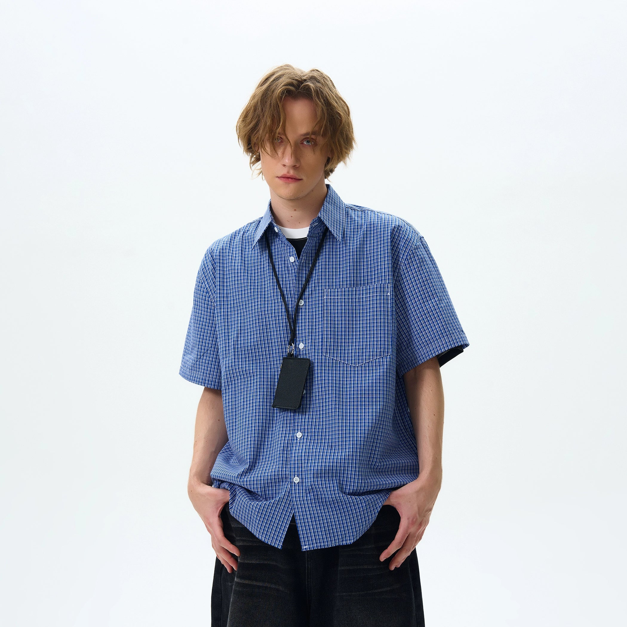 Checker Short Sleeve Button Shirt with Chest Pocket