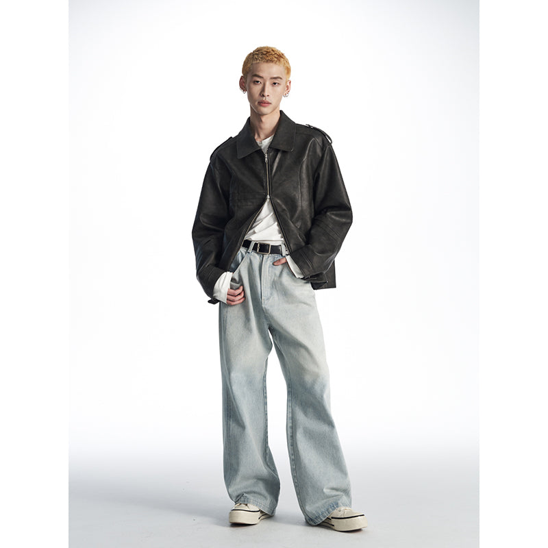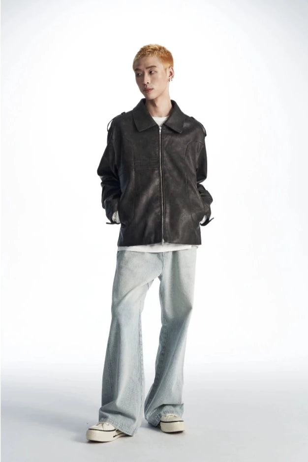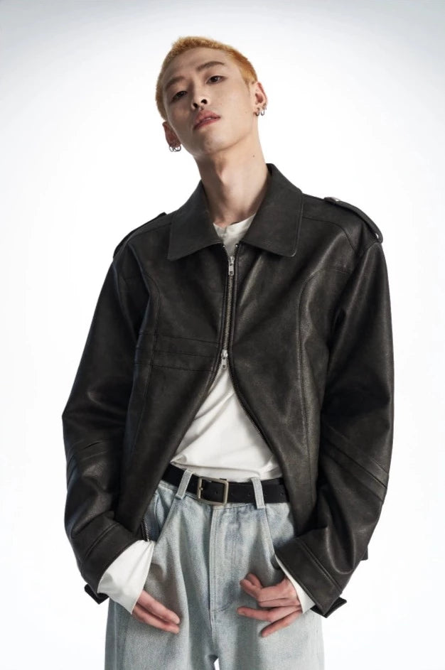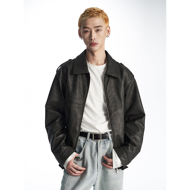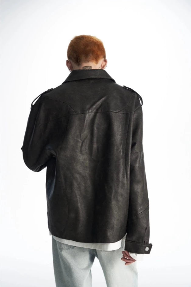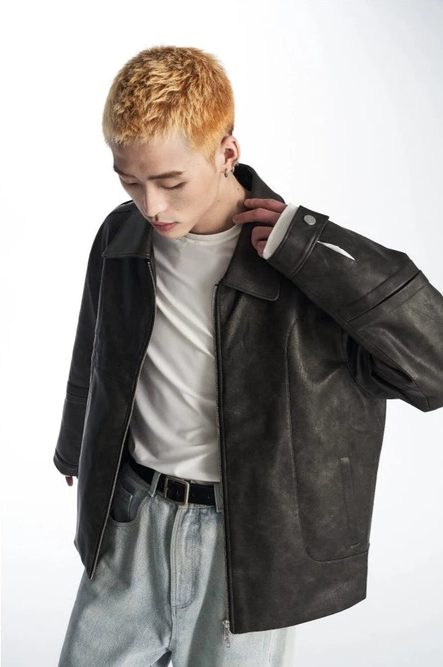 The light brown faux leather has a unique wax-dye texture, adding depth and character to the garment. It's the perfect balance of sophistication and durability.