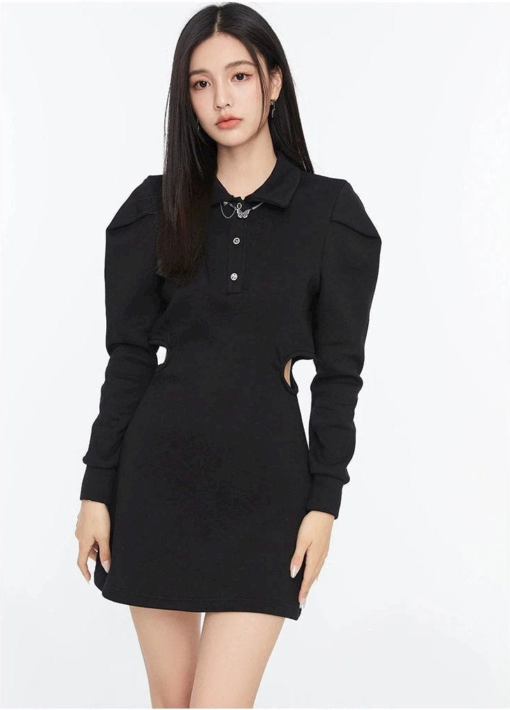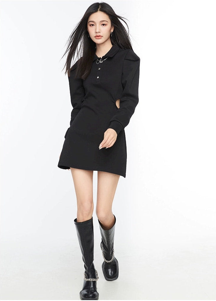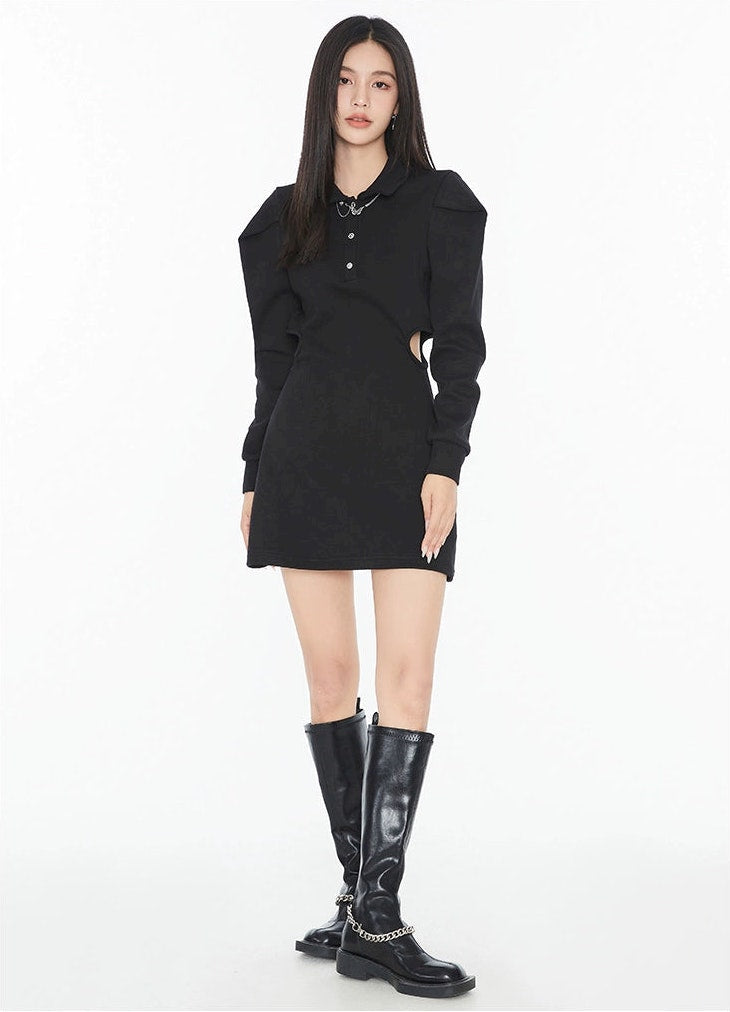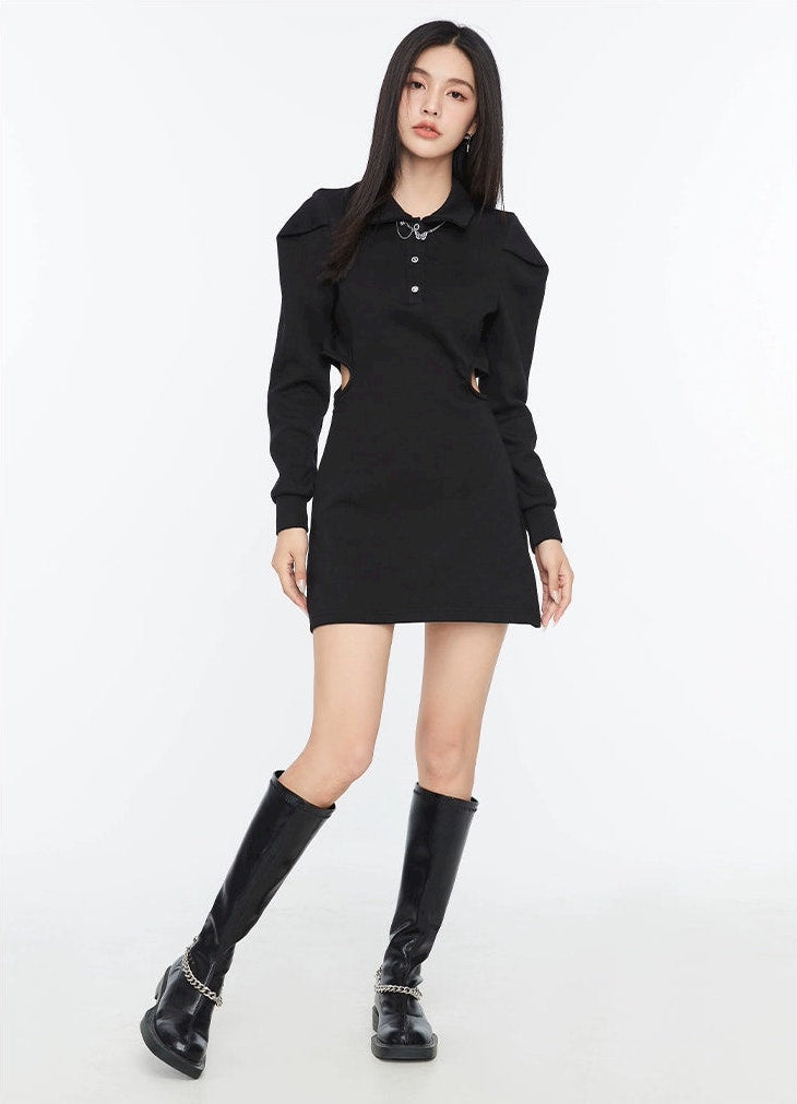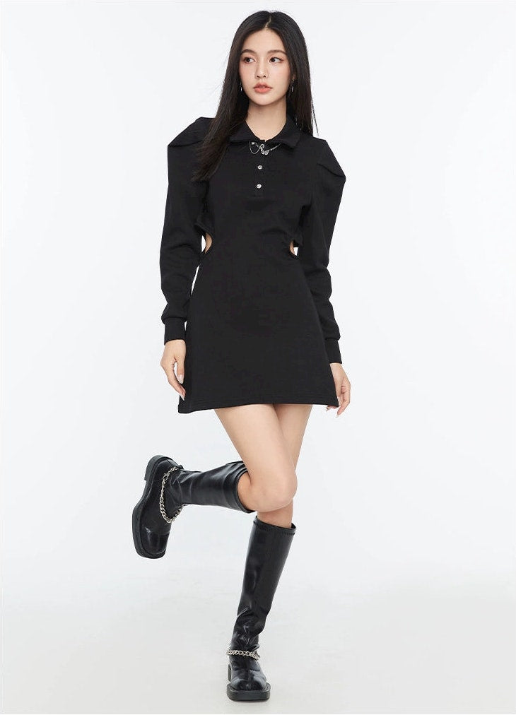 Collared Long Sleeve Side-Cutout Mini Shirt Dress