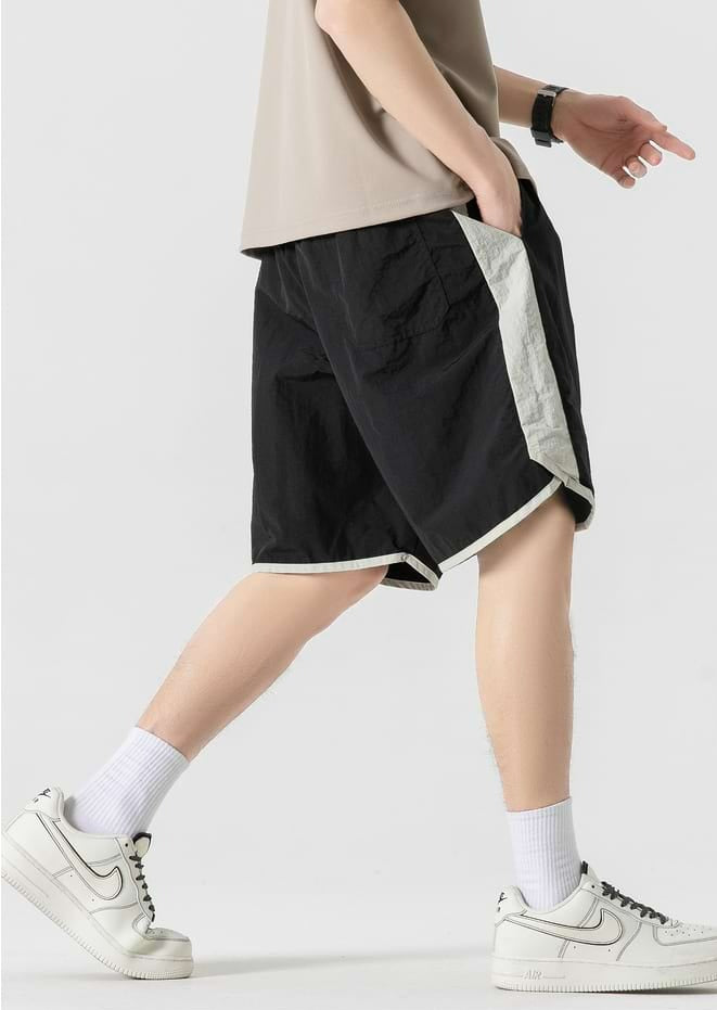 Color Block Elastic Waist Track Shorts