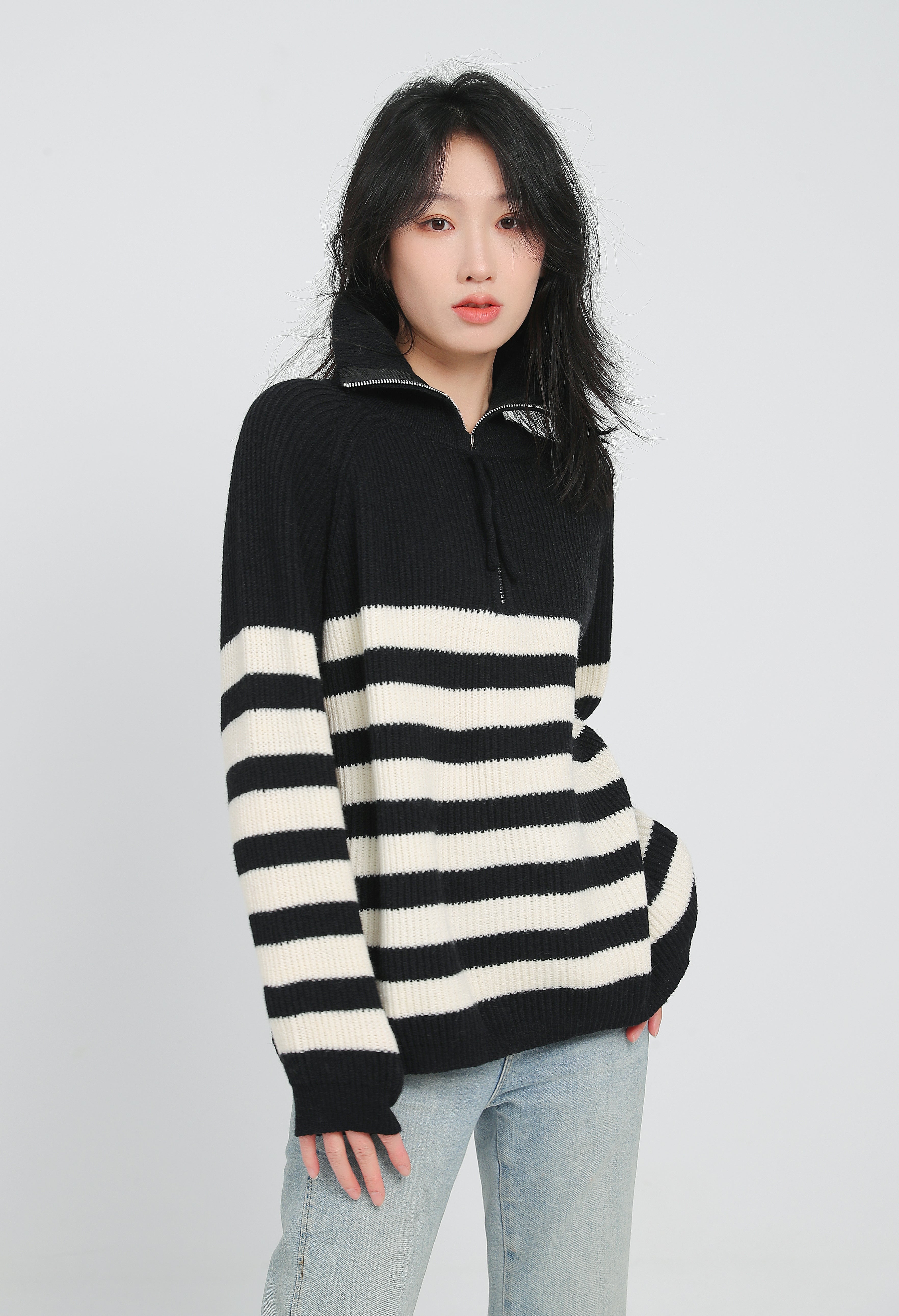 Read full Return PolicyThis Color Block Stripe Zip Up Pullover is the perfect top for a casual day out. The pullover has a comfortable fit and comes in a stripe pattern. It also has a zipper for a little extra style. Whether you're running errands or grabbing coffee with a friend, this is the perfect top to throw on.