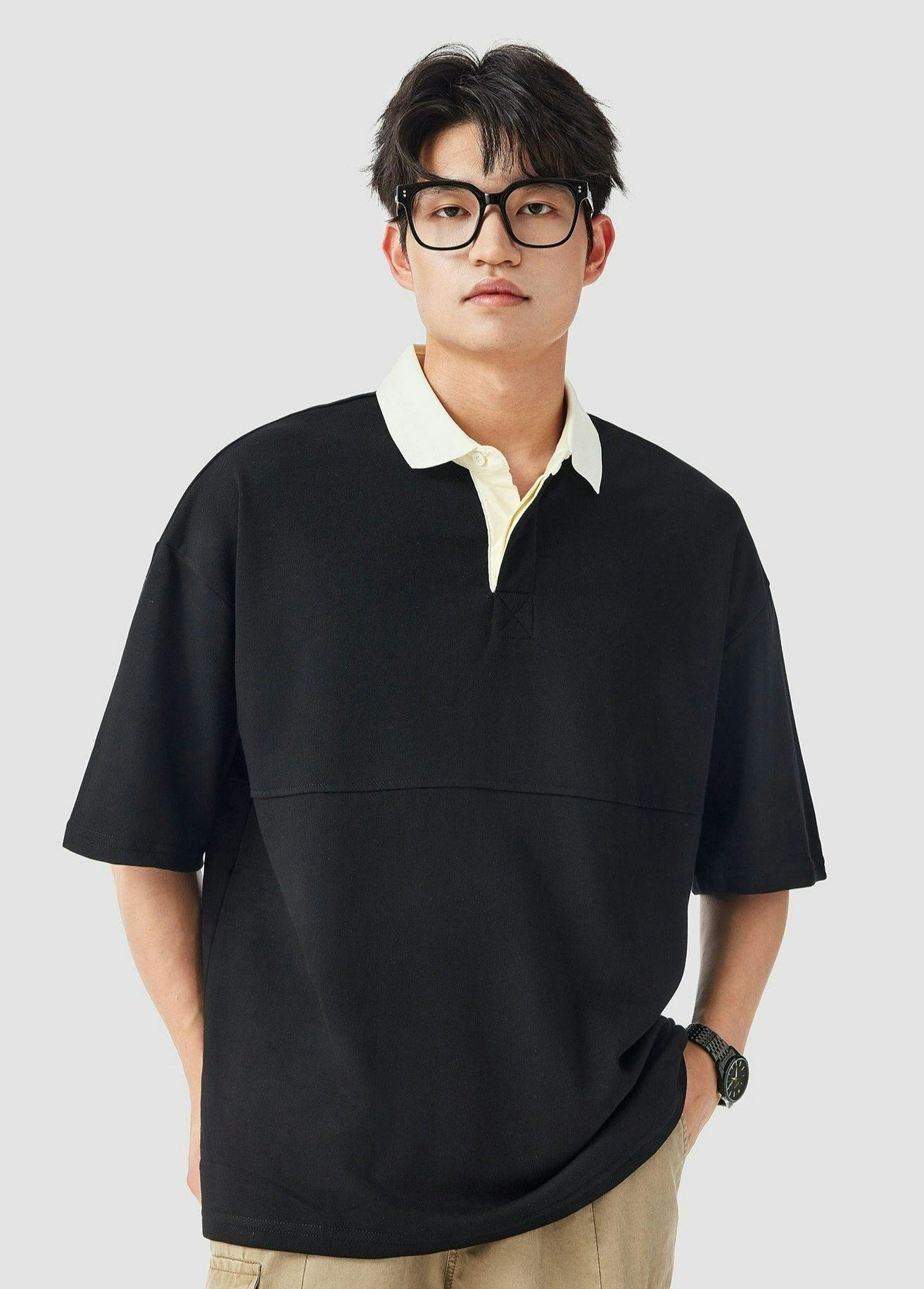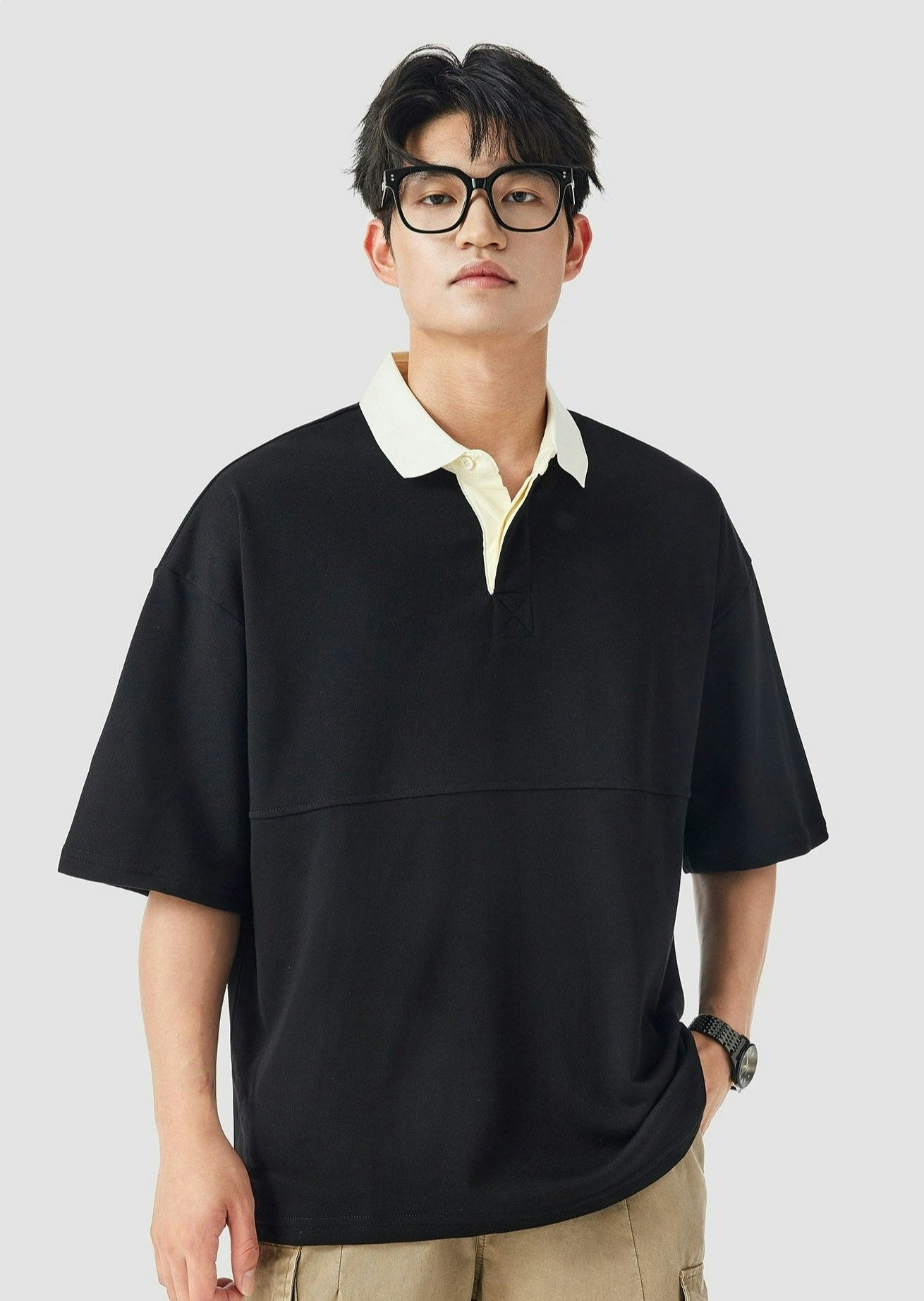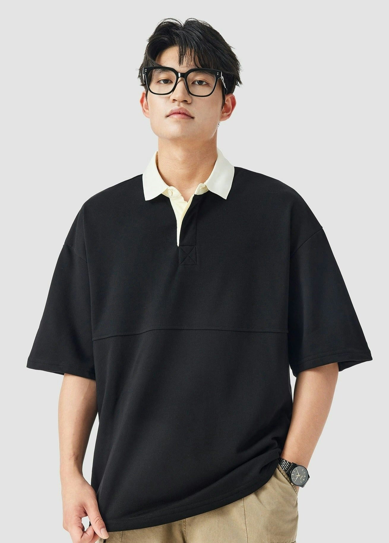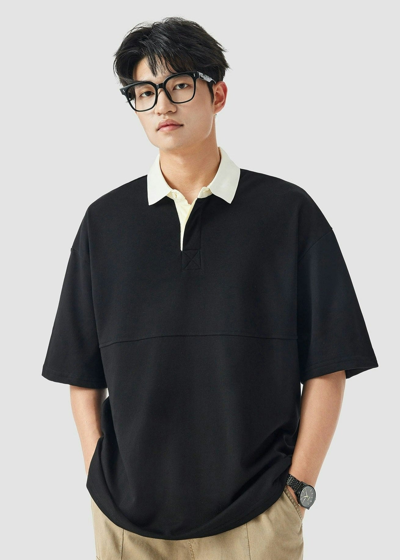 Read full Return PolicyStep up your casual wardrobe with the Contrast Collar Oversized Polo Shirt, a refreshing take on classic comfort.