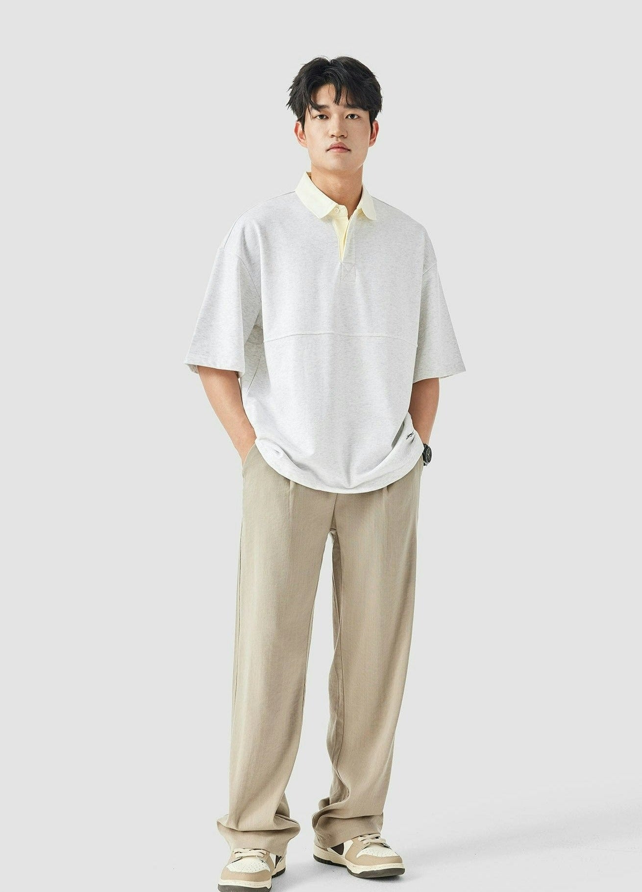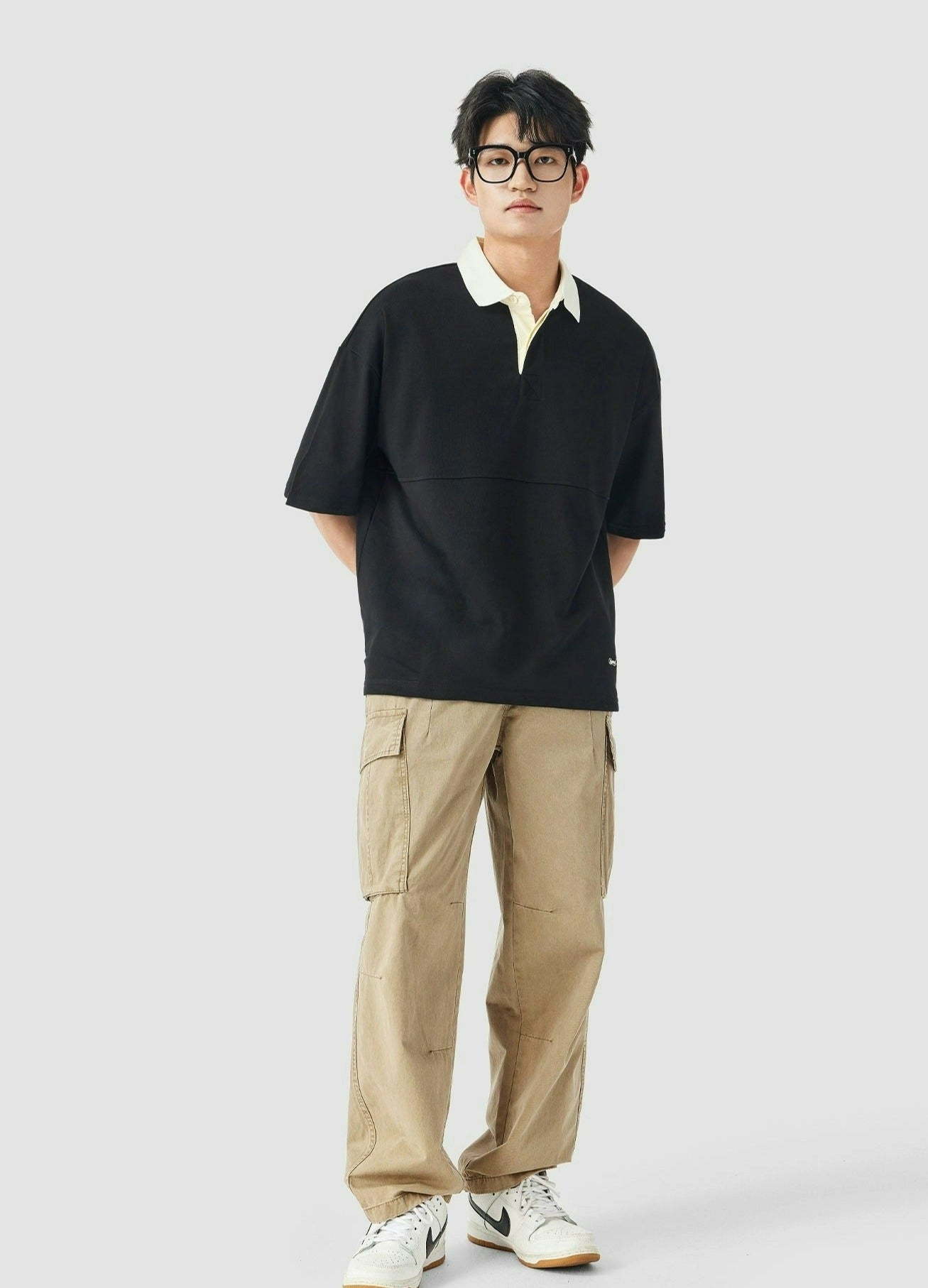 Made with a blend of 81.7% premium cotton and 18.3% polyester fiber, this polo shirt offers a relaxed fit without sacrificing breathability. It features a distinctive contrast collar and a clean, stitch detailing that provides an understated yet edgy appeal. The soft fabric and meticulous craftsmanship ensure a blend of style and all-day comfort.
