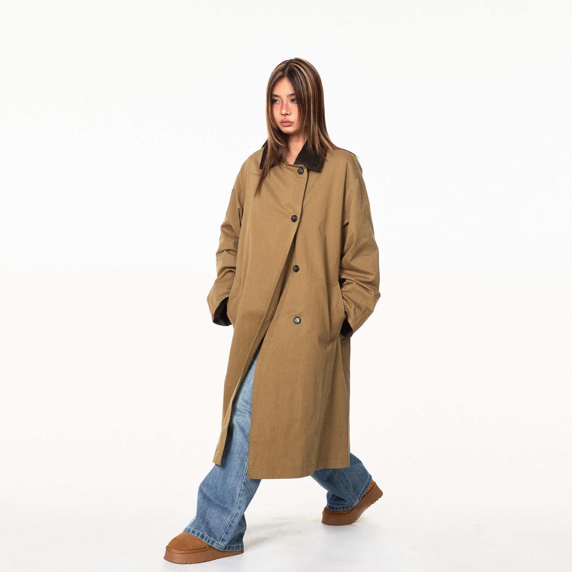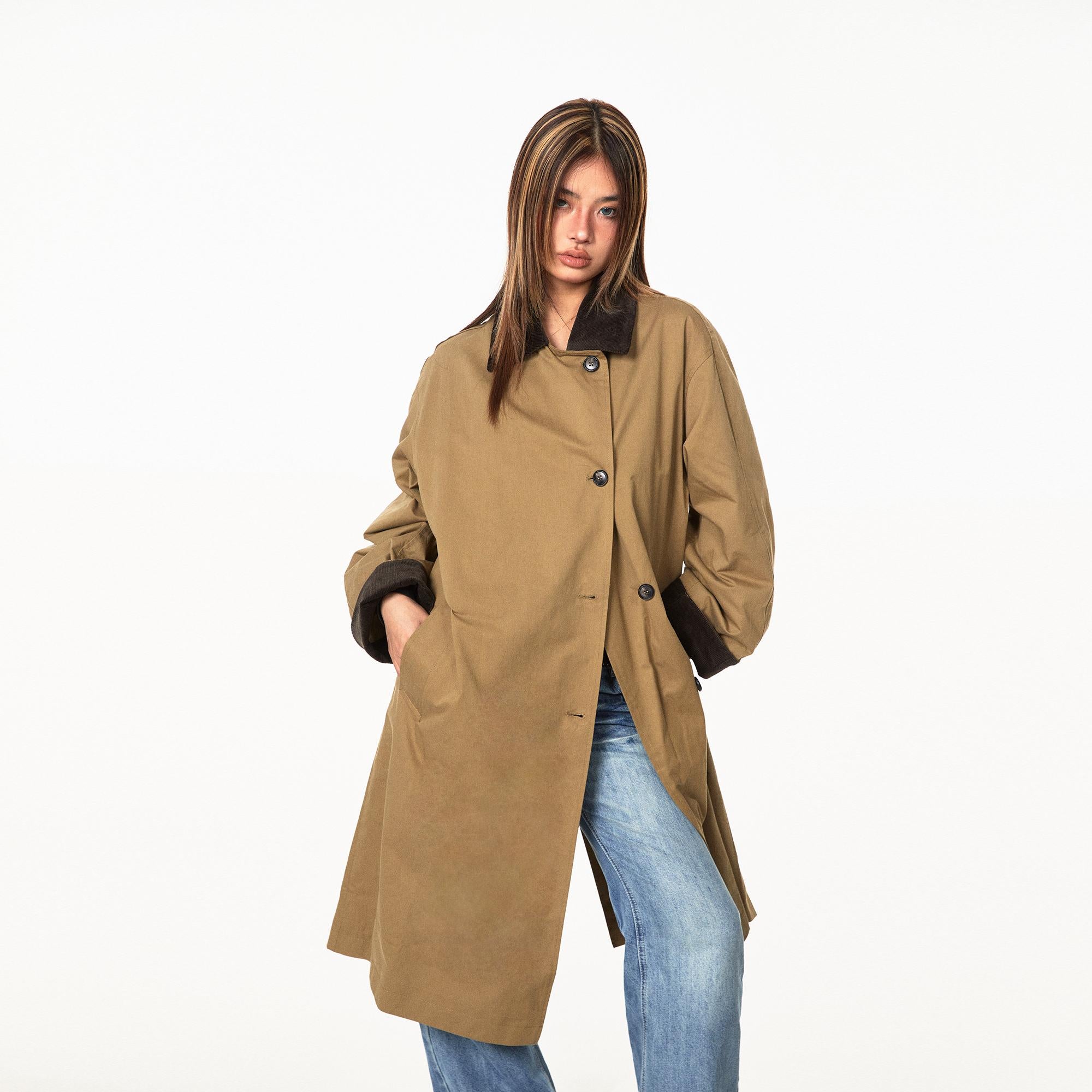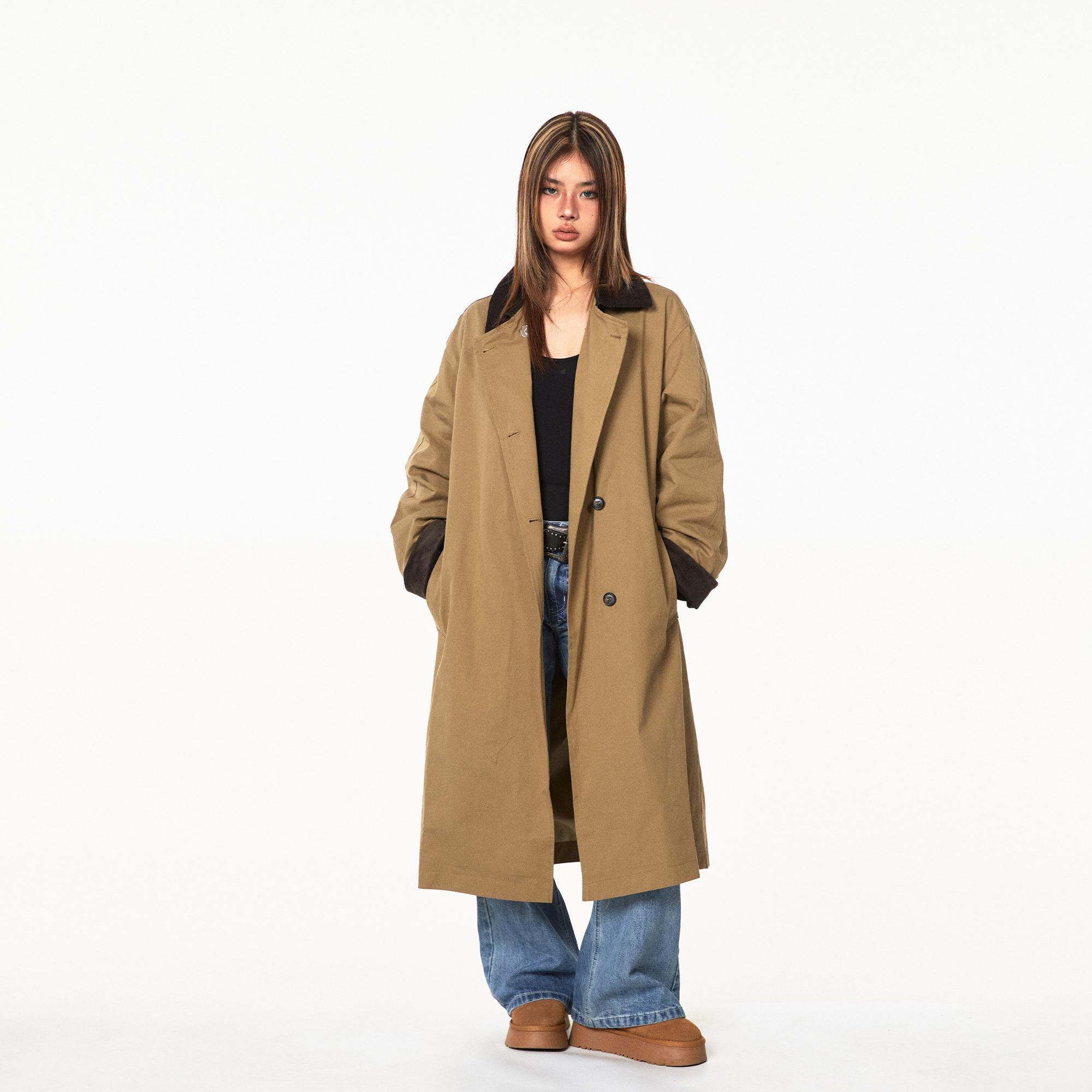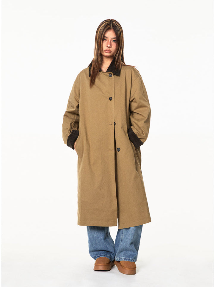 Contrast Corduroy Collar Oversized Single-Breasted Trench Coat