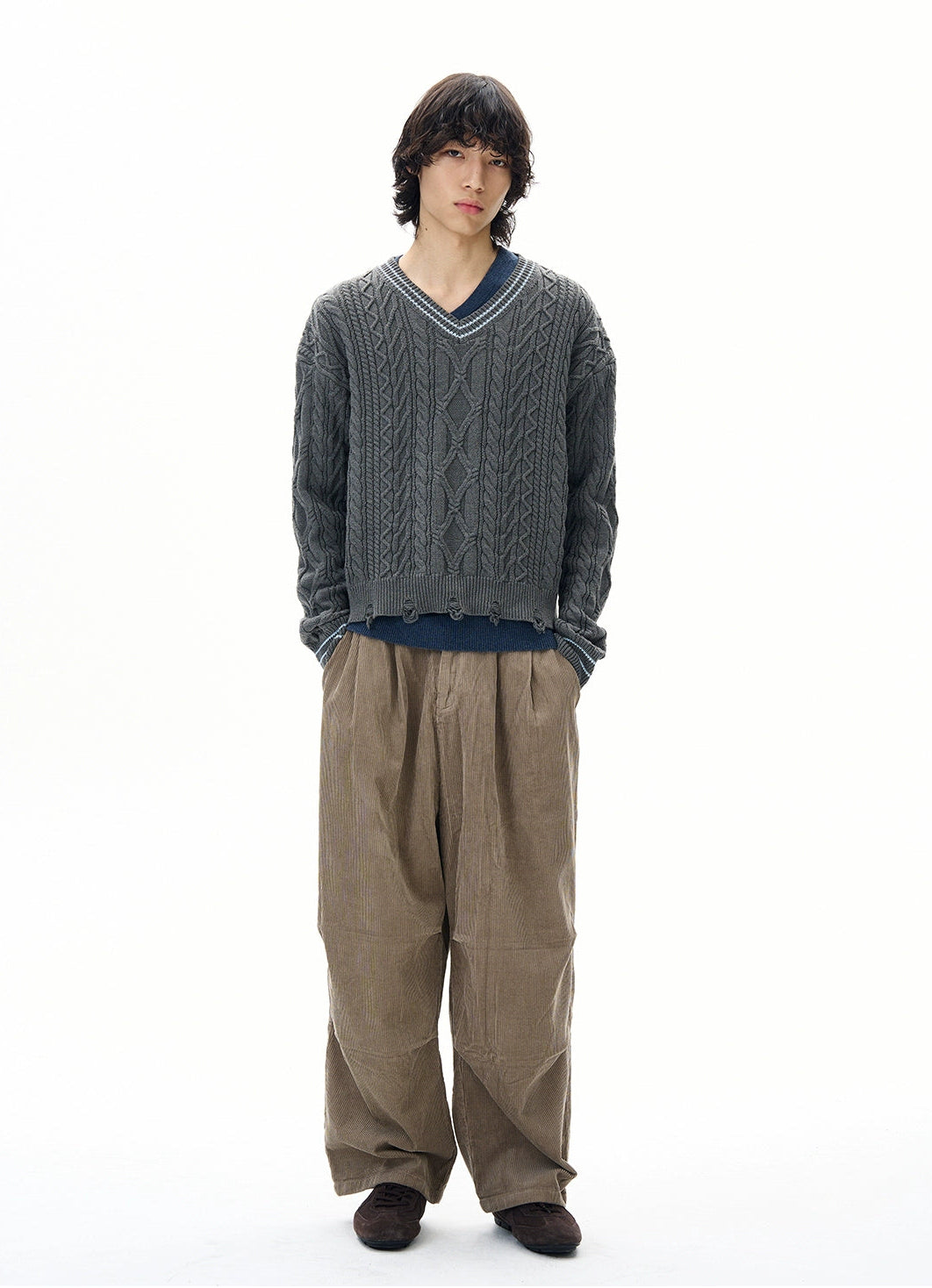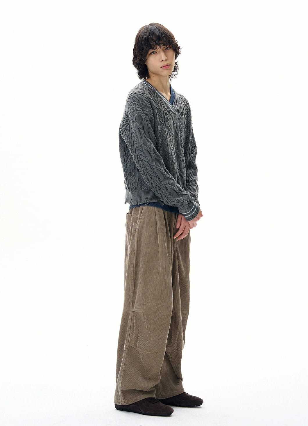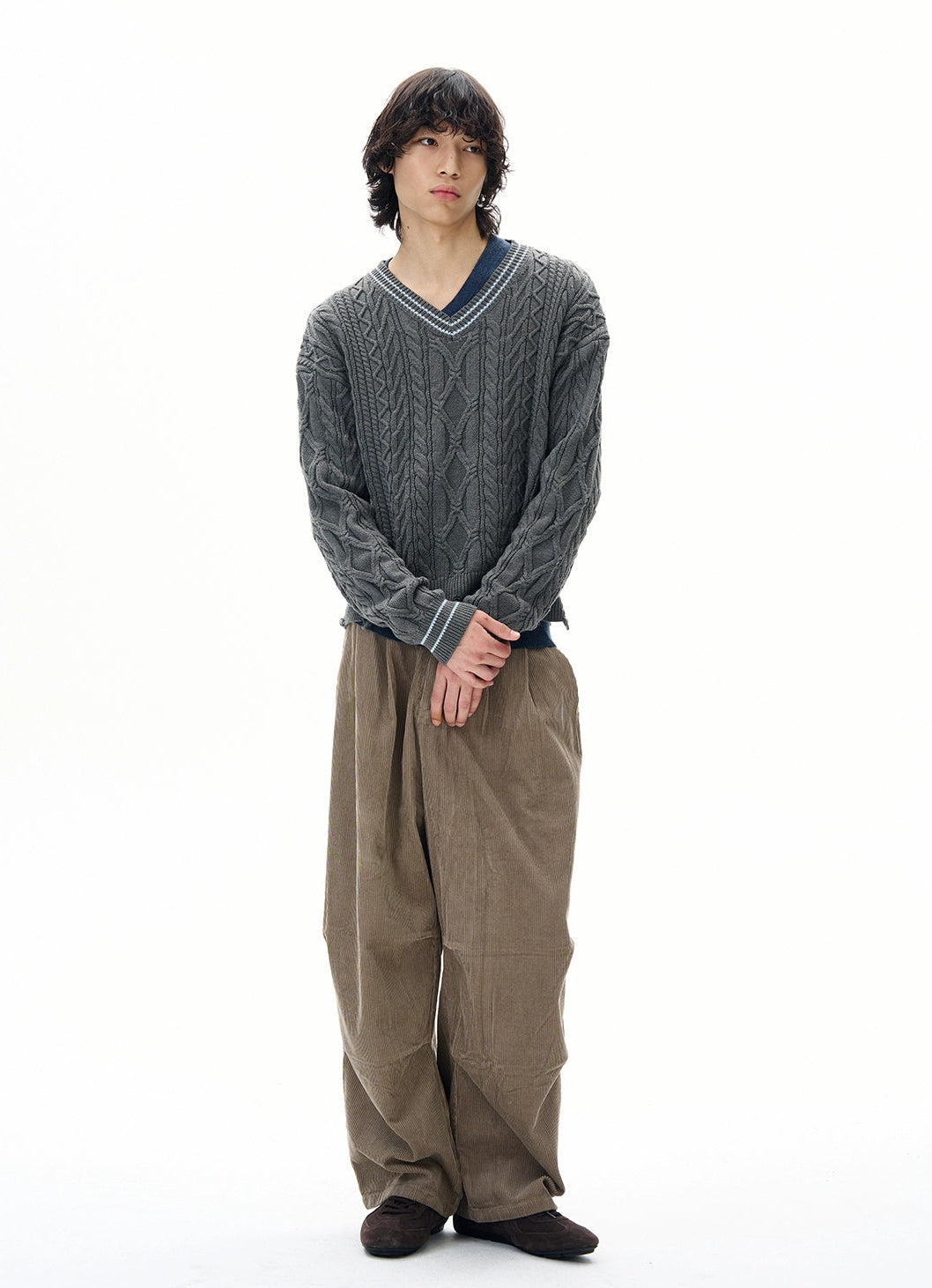 The deep knit pattern, blended with a laid-back cut and V-neckline, gives it a street-ready feel without sacrificing comfort. Crafted from a soft cotton-acrylic blend, its medium-weight structure offers flexibility for layering or wearing solo.