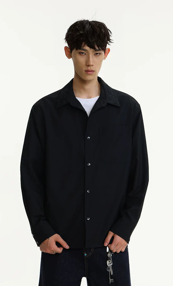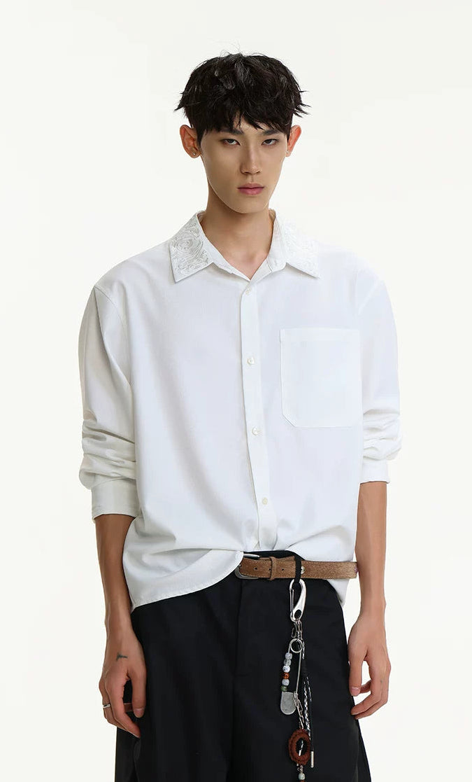 Read full Return PolicyA subtle standout, the Contrast Embroidered Collar Long Sleeve Button Shirt brings edge to everyday shirting with a refined twist.
