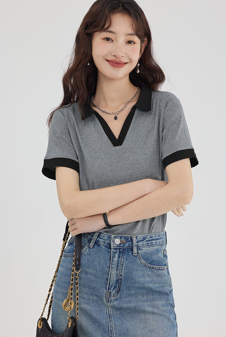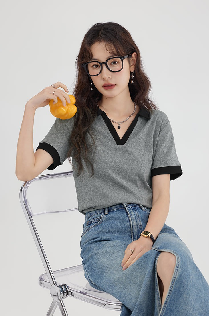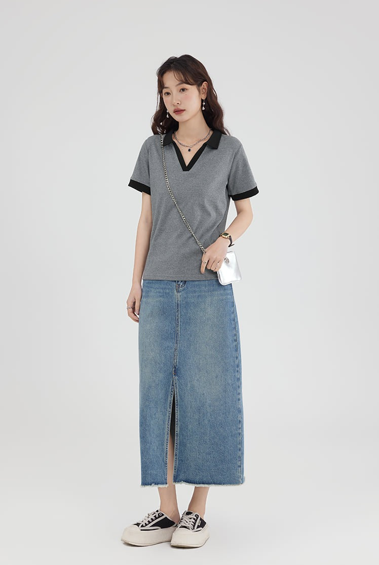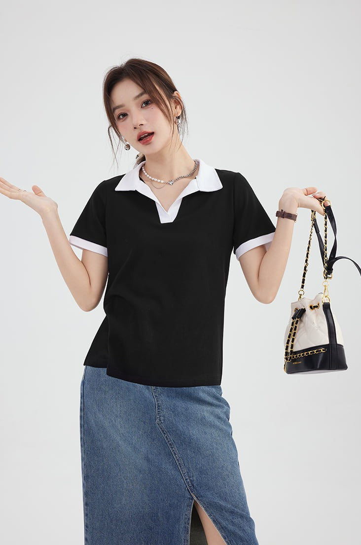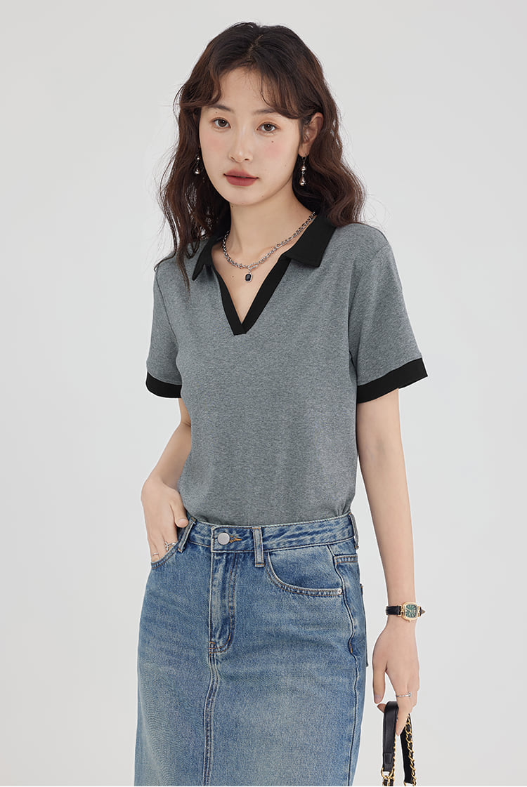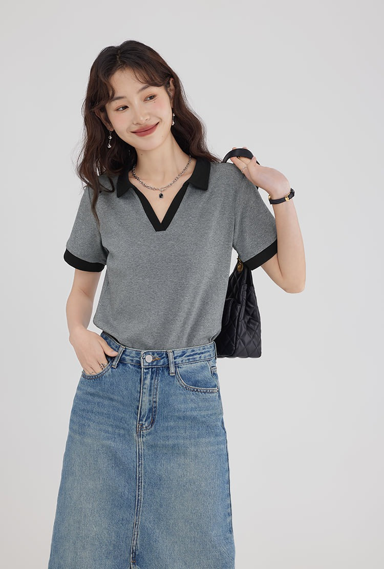Read full Return PolicyLooking for a comfortable, casual alternative to t-shirts and tanks? Try Contrast Hem V-Neck Top! This top is made from a soft and stretchy fabric, so it will cling to your body and feel comfortable throughout the day. It also has a pair of front pockets for holding your wallet or keys, as well as a contrasting collar. Pair this top with pants or a skirt for that professional touch.