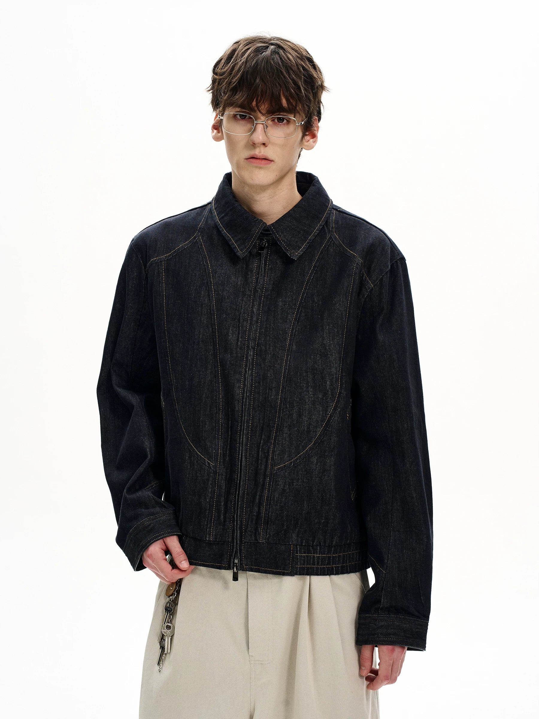 Read full Return PolicyA contrast leather collar gives this raw denim zip jacket a crisp edge that sets it apart without trying too hard.