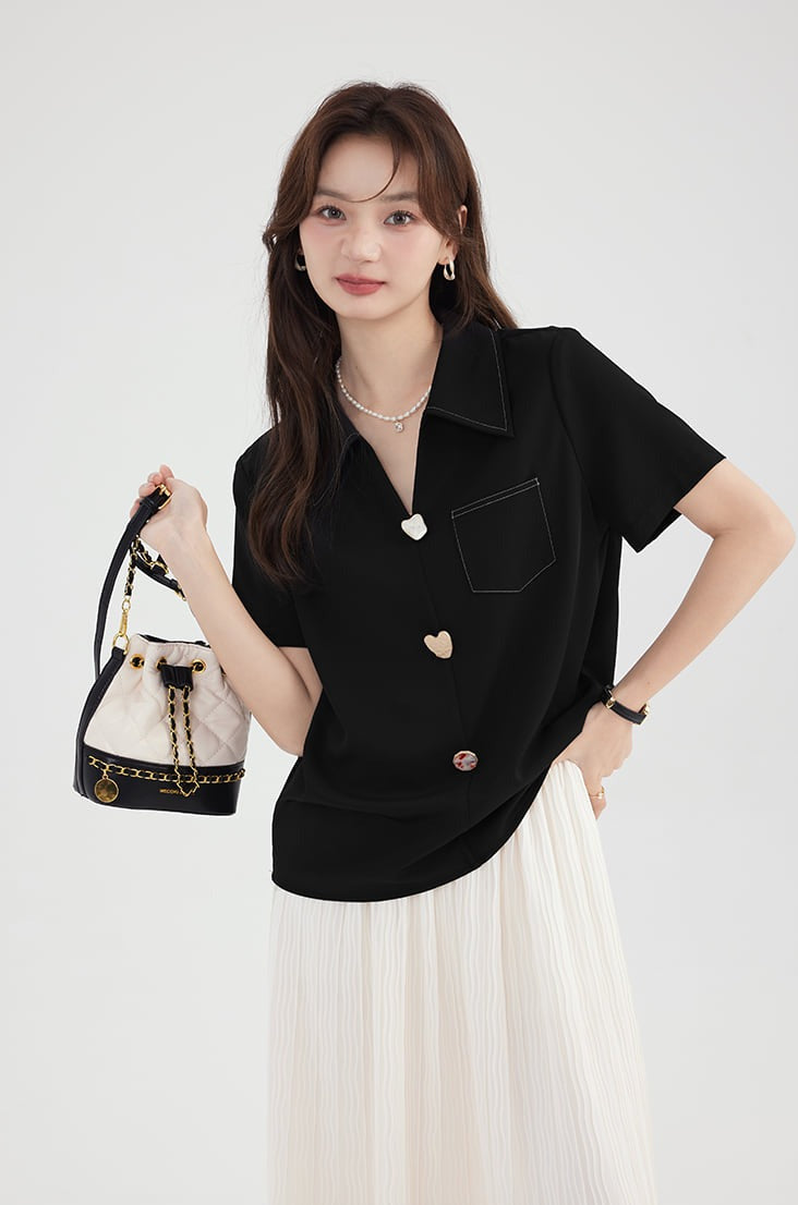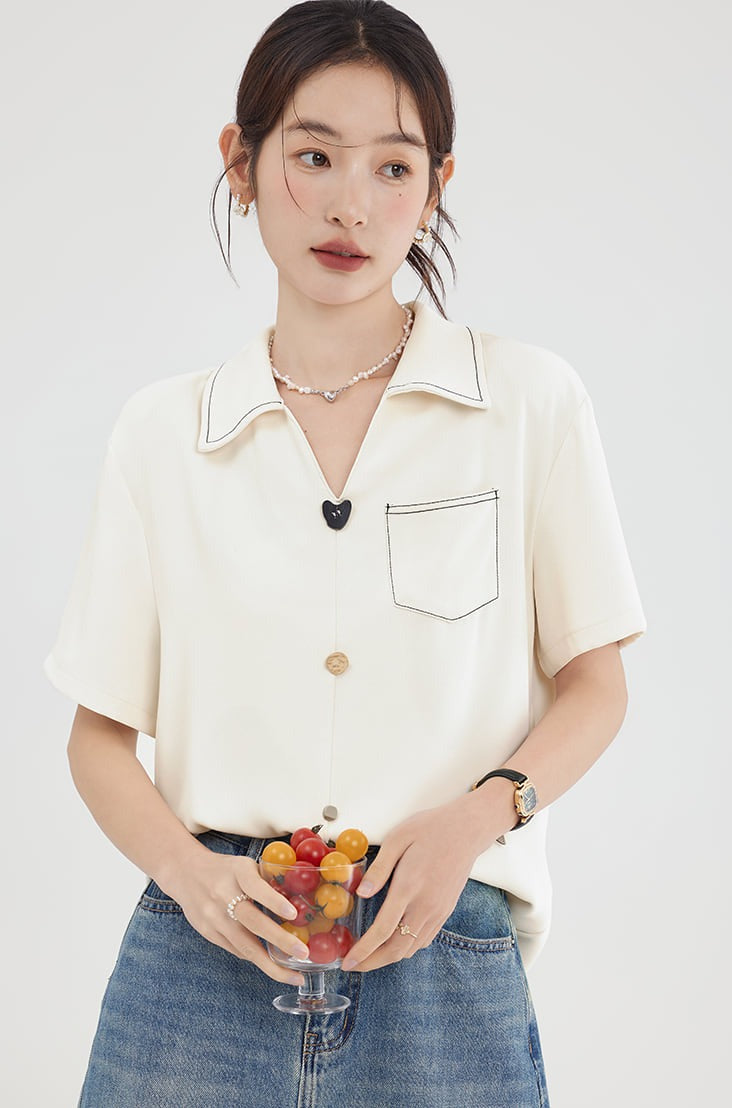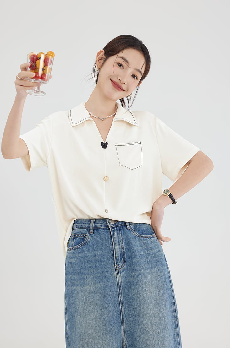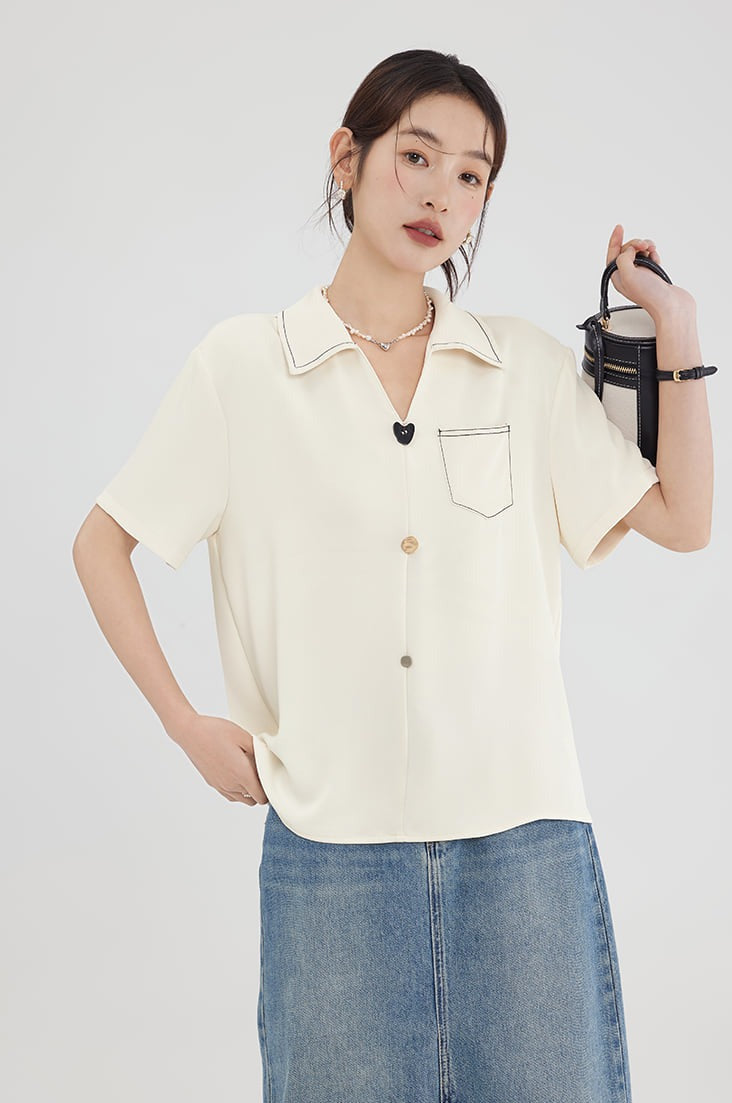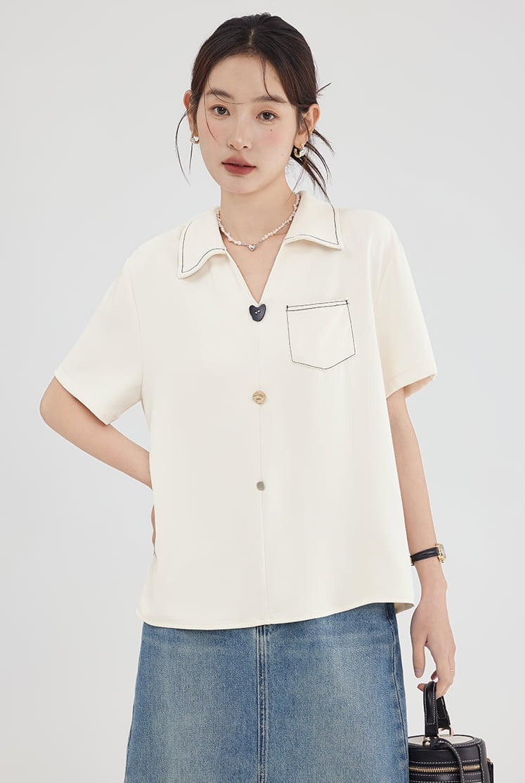 Read full Return PolicyThis Contrast Stitch Asymmetric Button Top is perfect for a casual look. Crafted with carefully placed fron pocket and different button sizes, it adds a unique touch of style to any outfit. The fabric is lightweight but sturdy, making it comfortable to wear and easy to coordinate with skirts or pants.