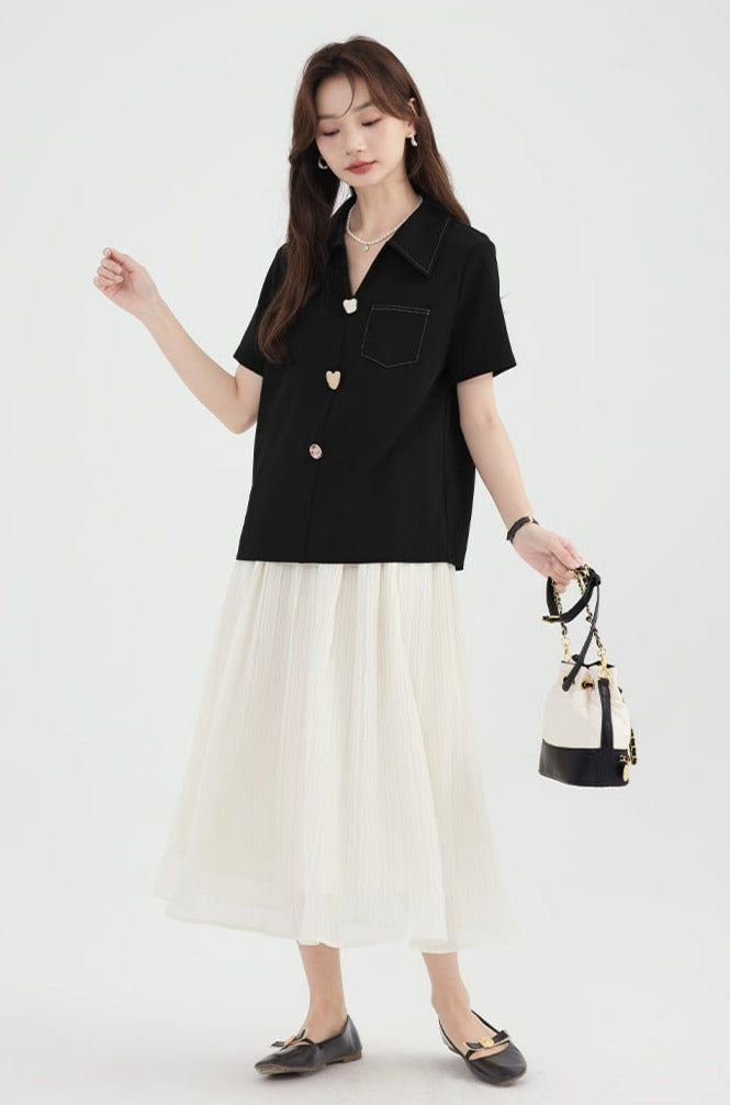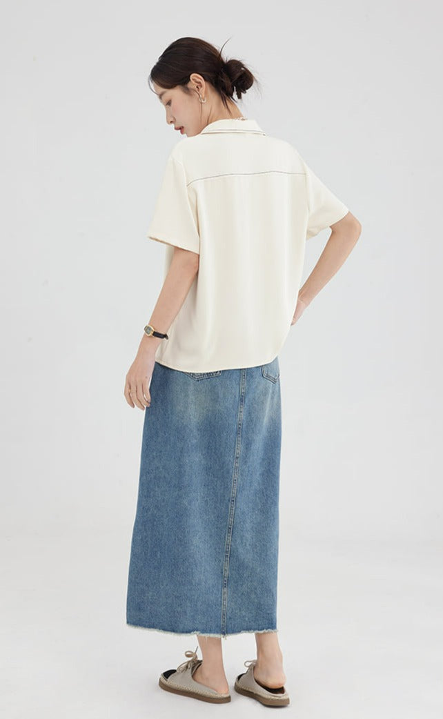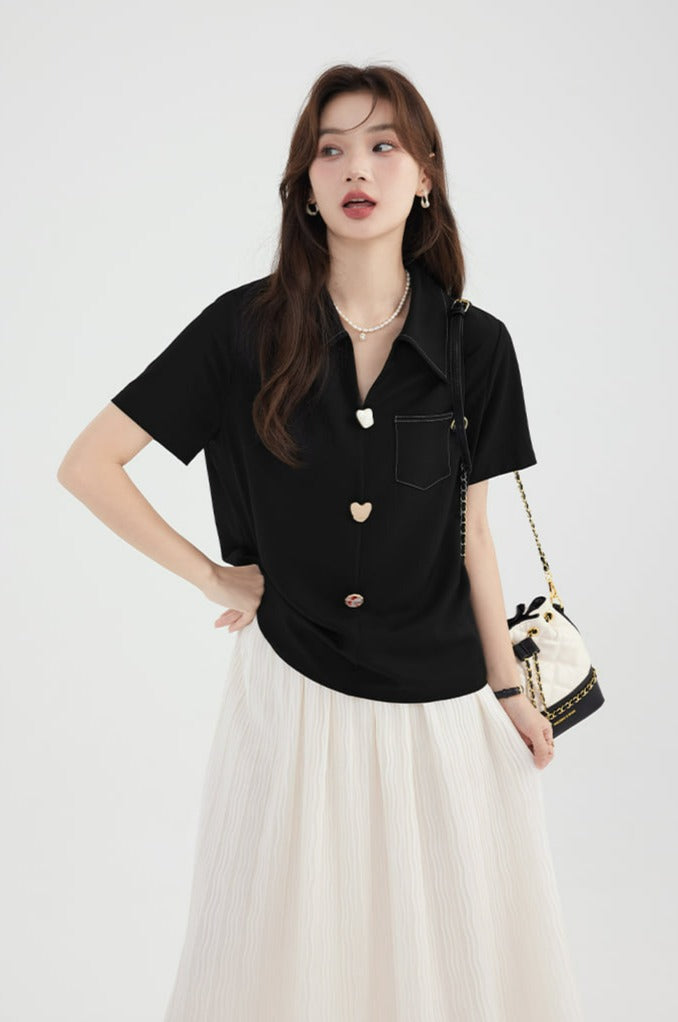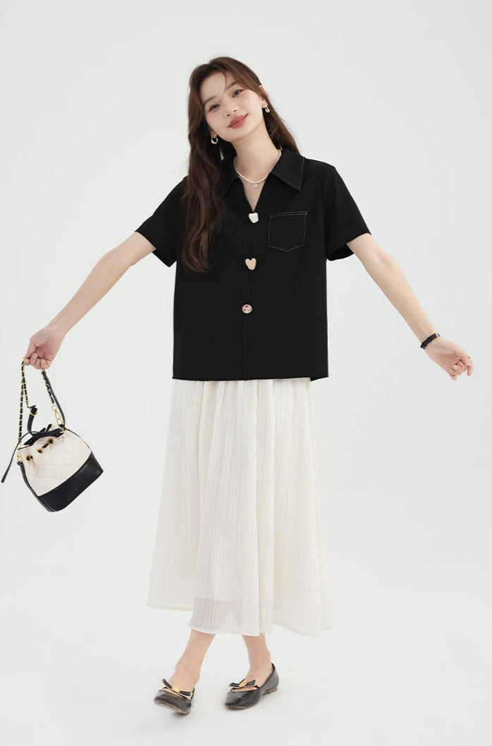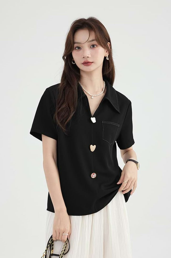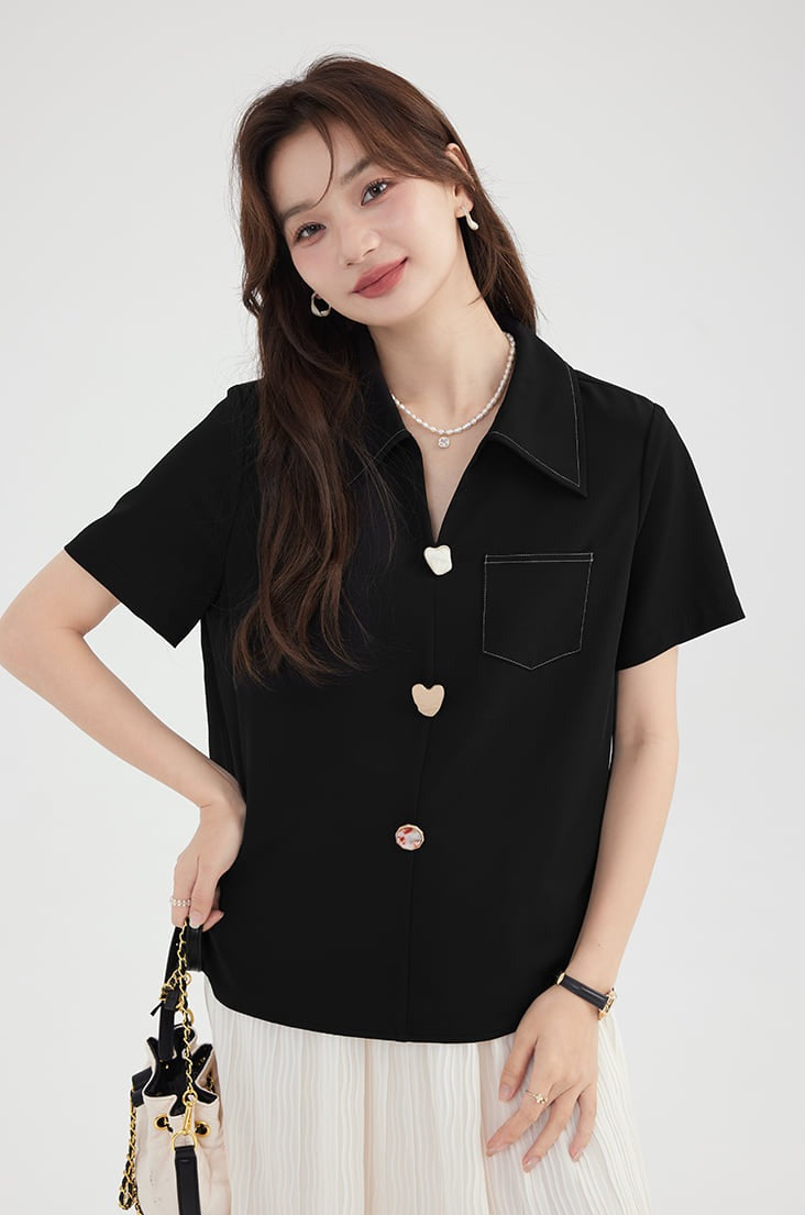Read full Return PolicyThis Contrast Stitch Asymmetric Button Top is perfect for a casual look. Crafted with carefully placed fron pocket and different button sizes, it adds a unique touch of style to any outfit. The fabric is lightweight but sturdy, making it comfortable to wear and easy to coordinate with skirts or pants.