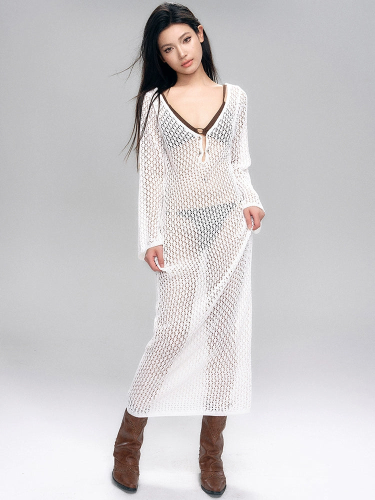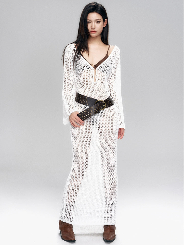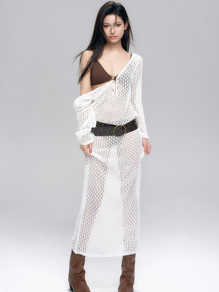 Crochet Cover-Up Open Knit Maxi Dress and Bikini Set