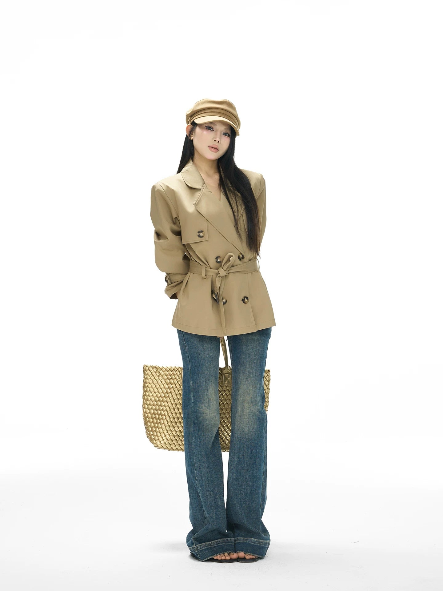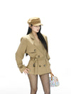 Cropped Double-Breasted Trench Coat with Belted Waist