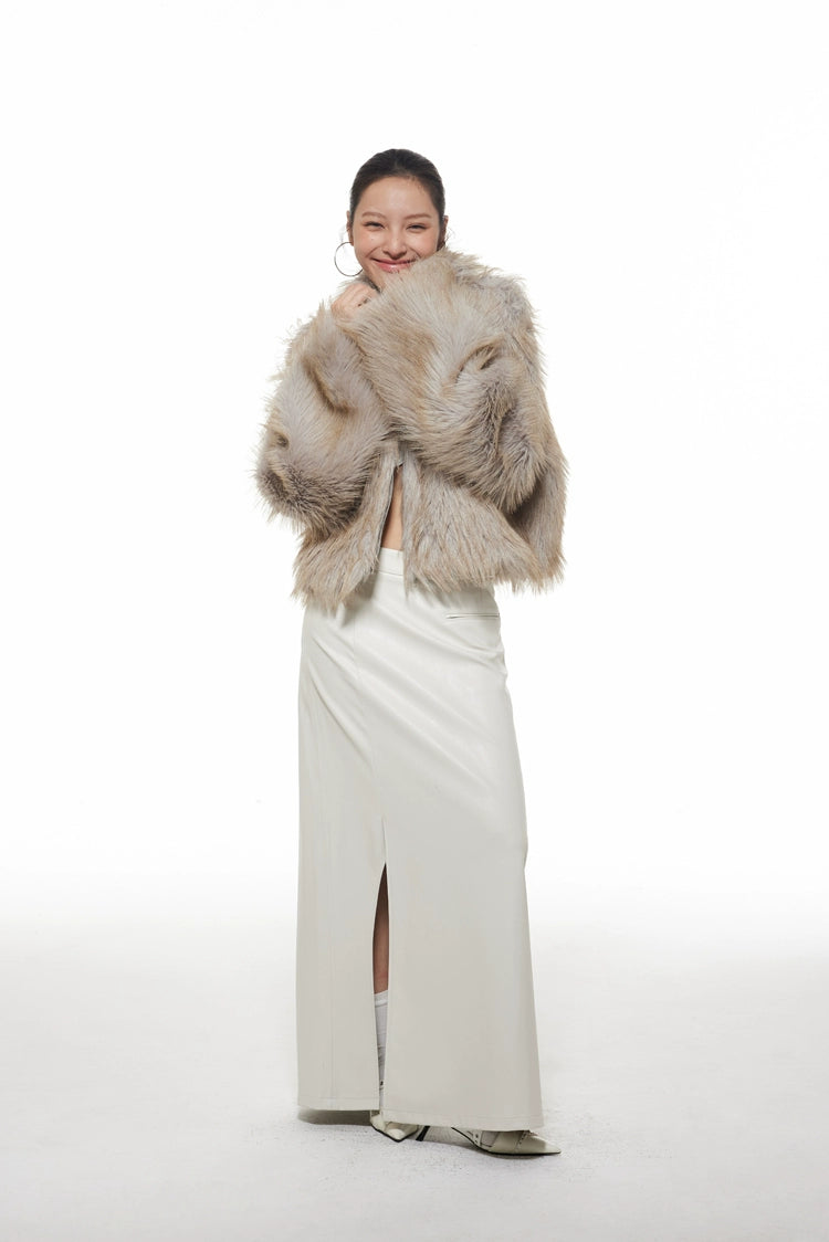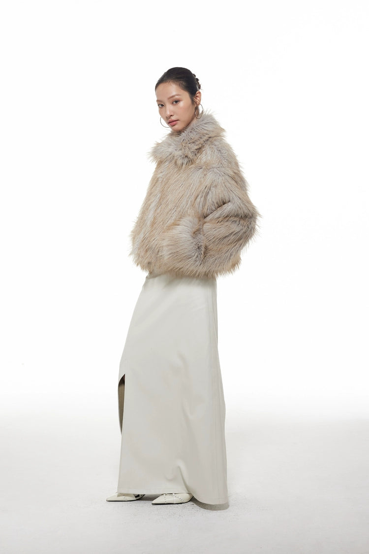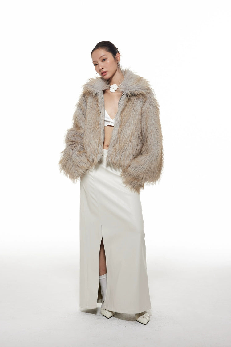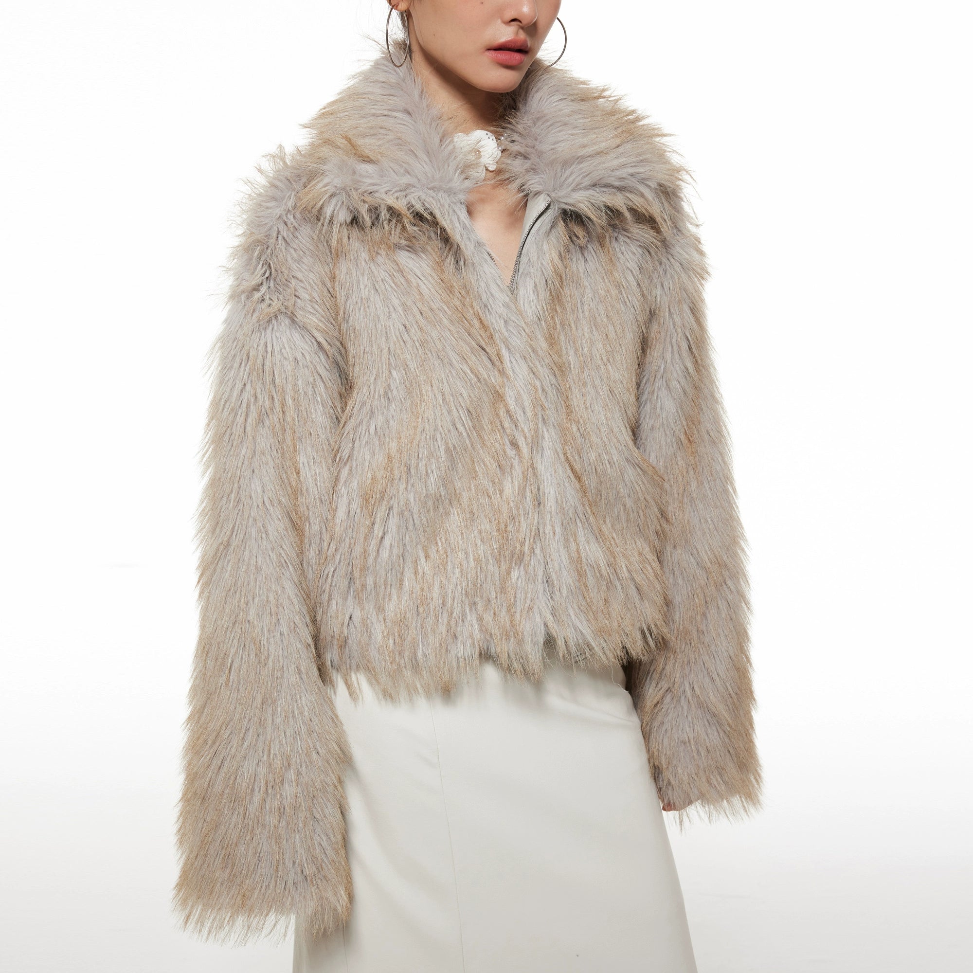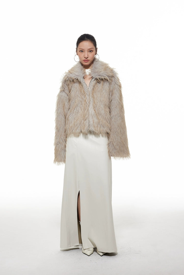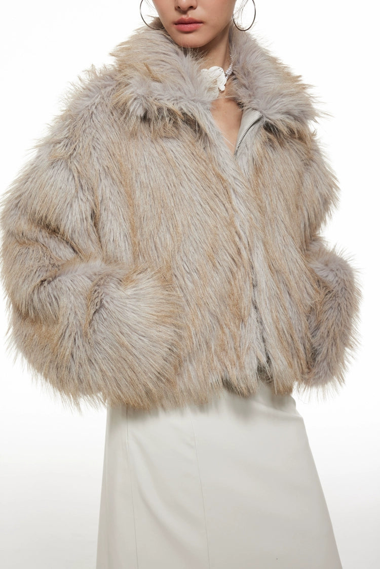 Faux Fur Wide Collar Zip Coat