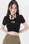 Read full Return PolicyThis Cropped Overlap Halter String Top is the perfect piece of clothing for those who want to stay stylish and cool this season. Featuring a cropped length, a halter strap, and lightweight fabric, this top is easily paired with pants or a skirt for a casual, yet elegant, look.