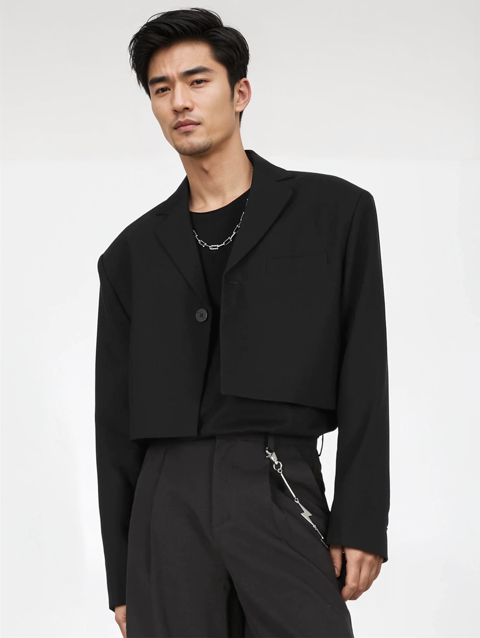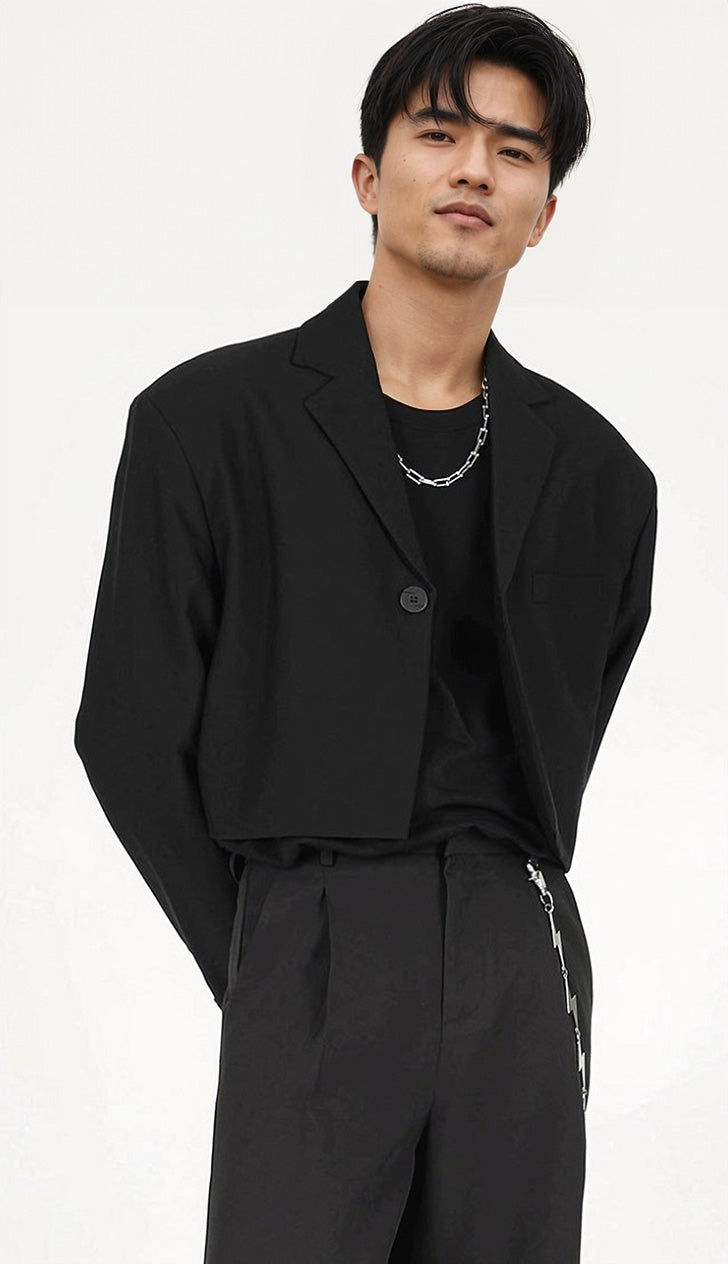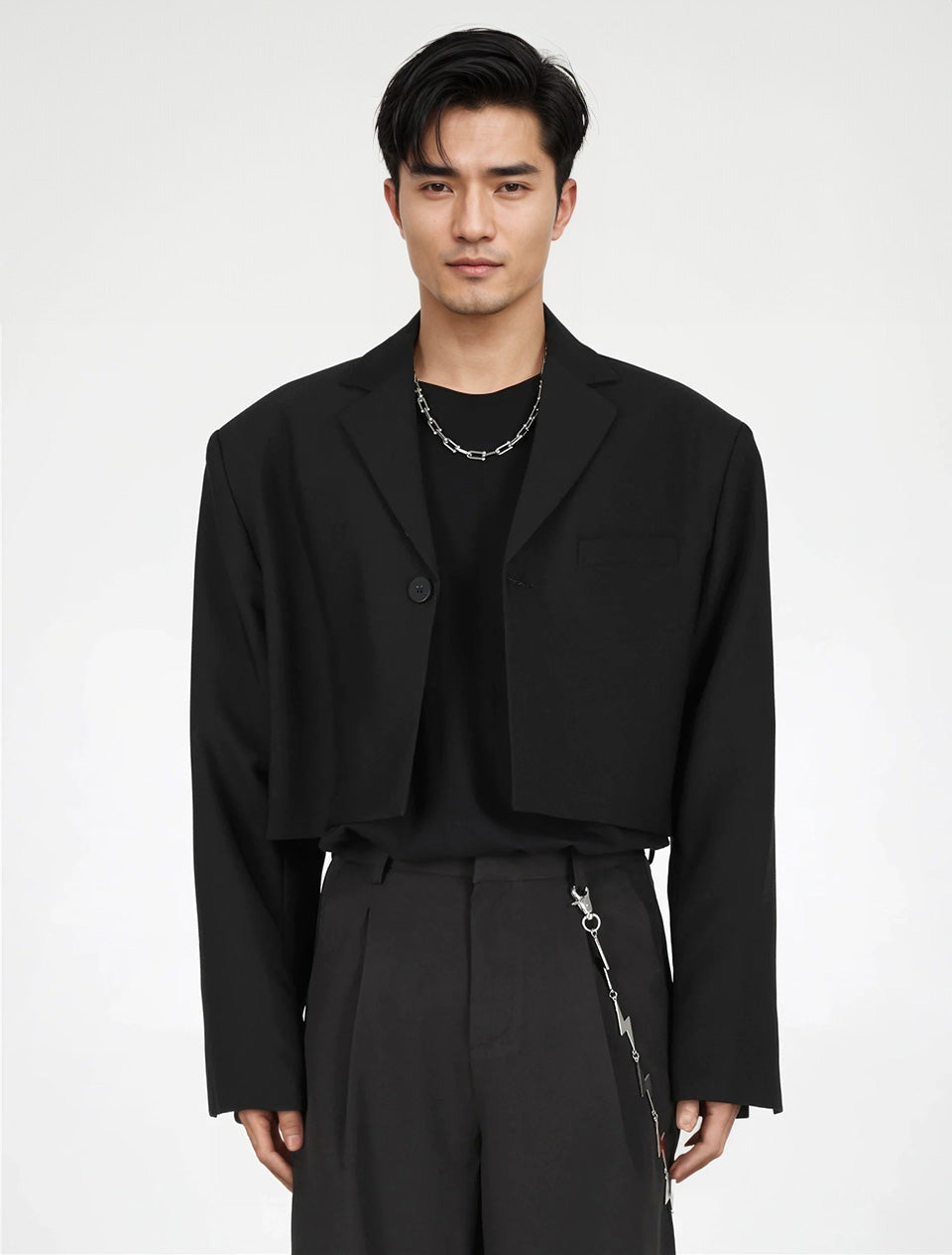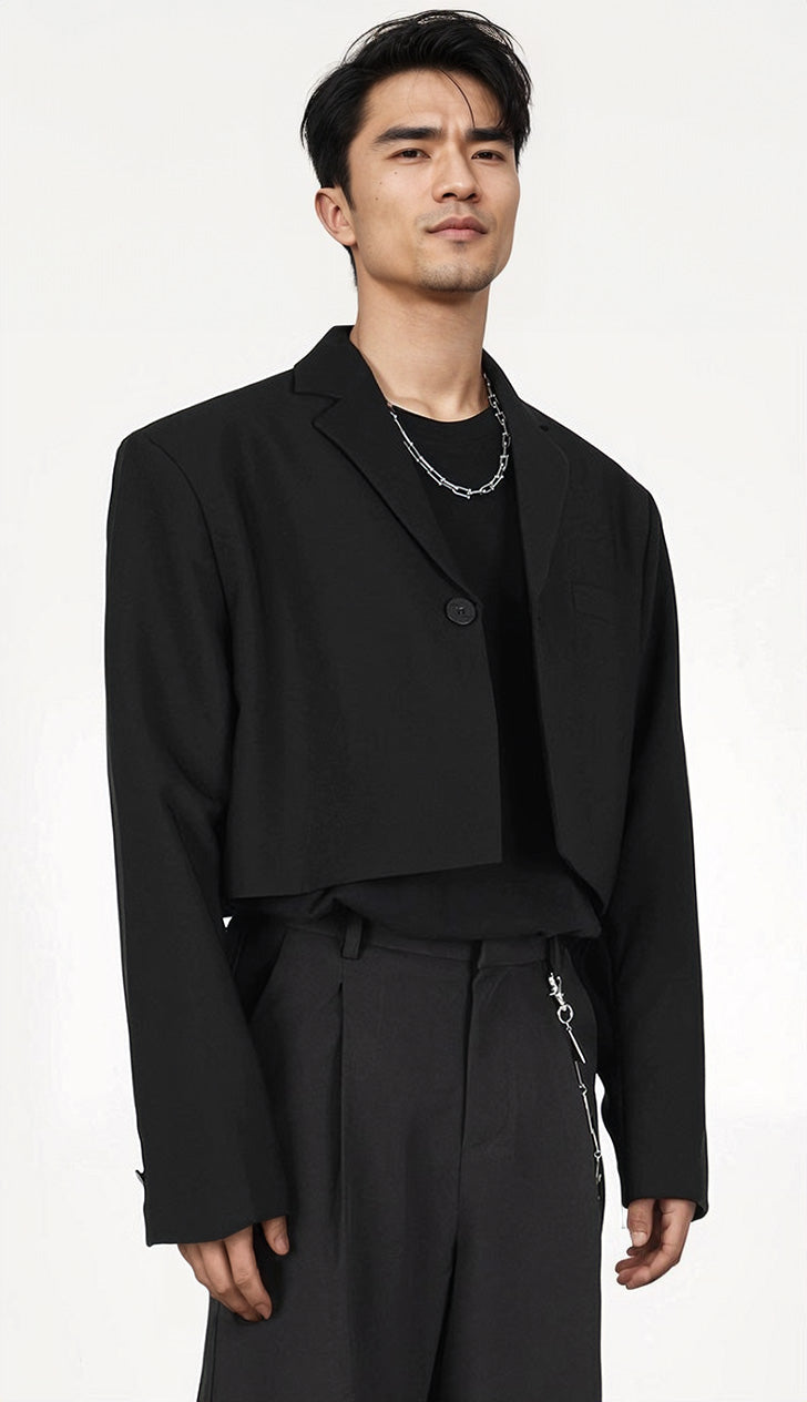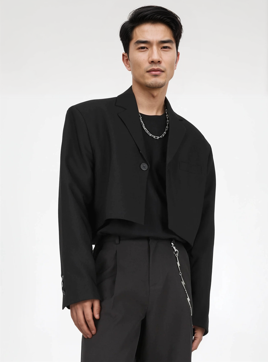 Read full Return PolicyRefine your wardrobe with our Cropped Single-Button Blazer with Chest Pocket, an infusion of modern minimalism and classic tailoring.