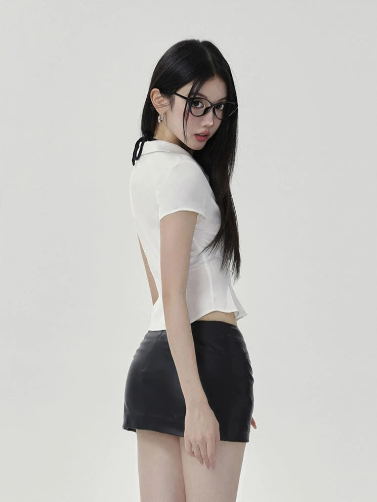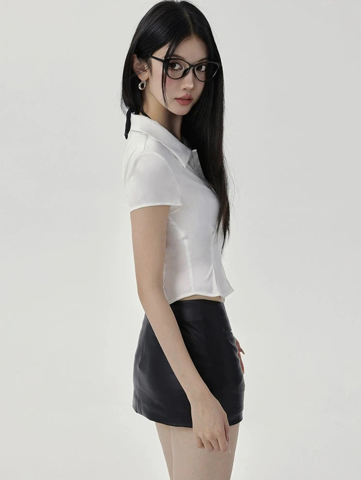 Cropped Tie-Front Blouse with Short Sleeves