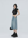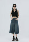 Denim Culotte Capri Shorts with Back Pocket Detail