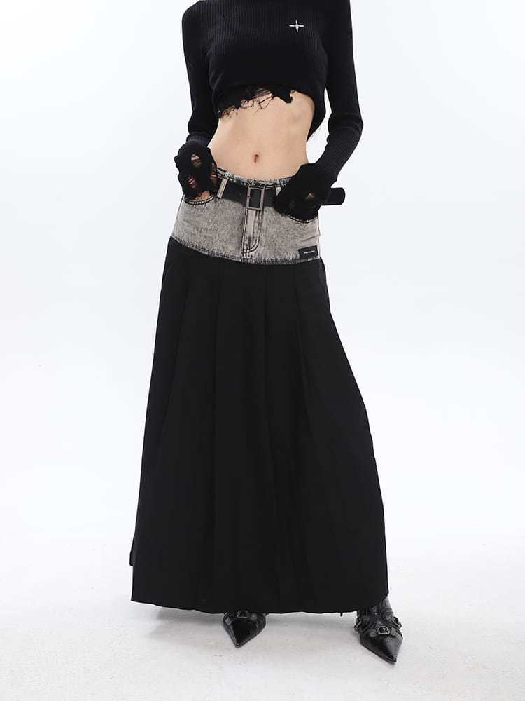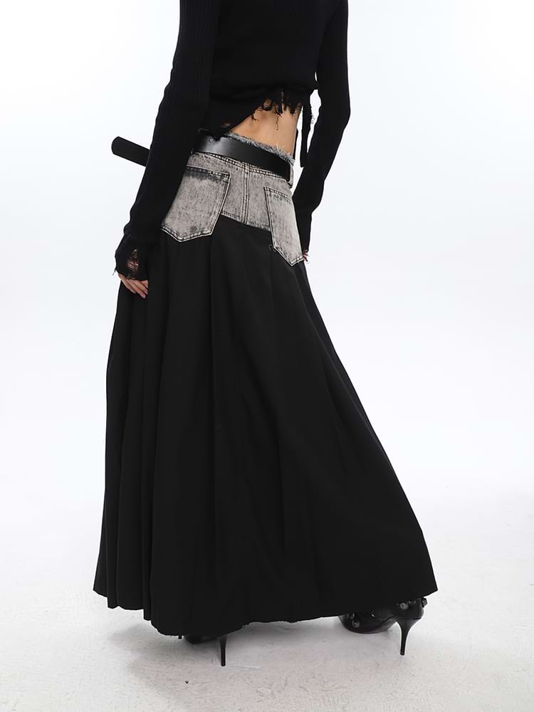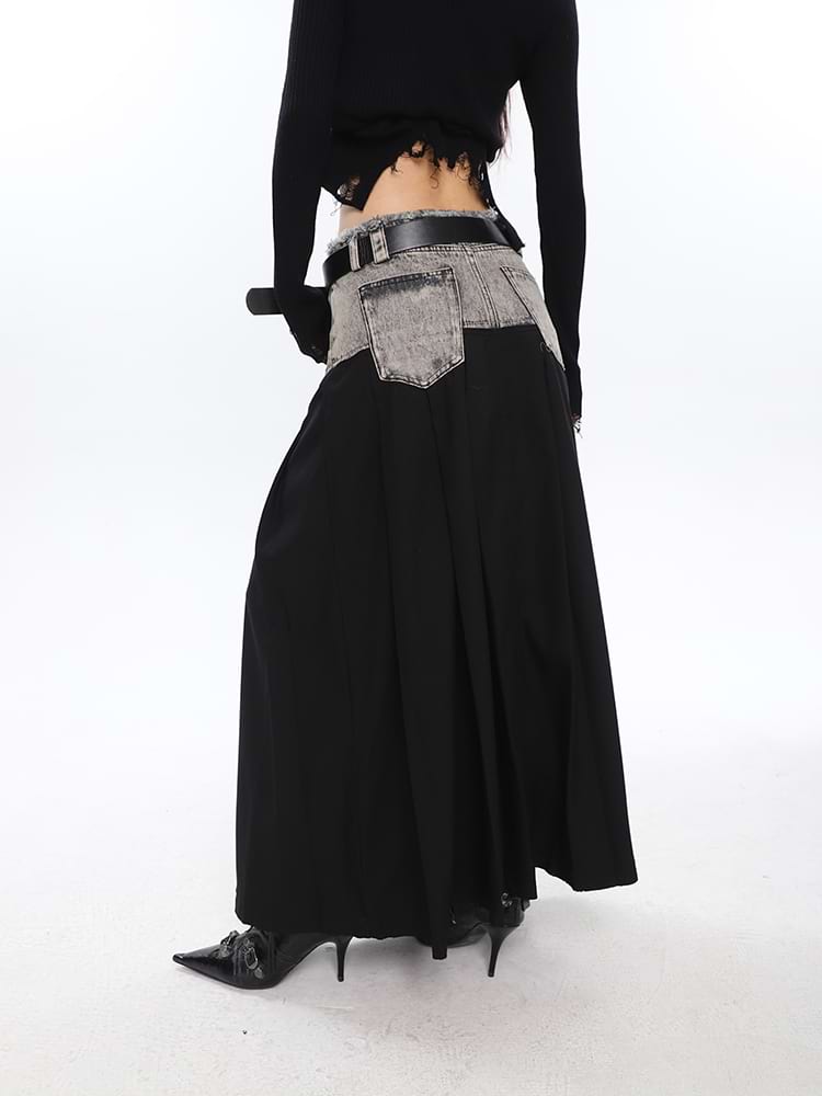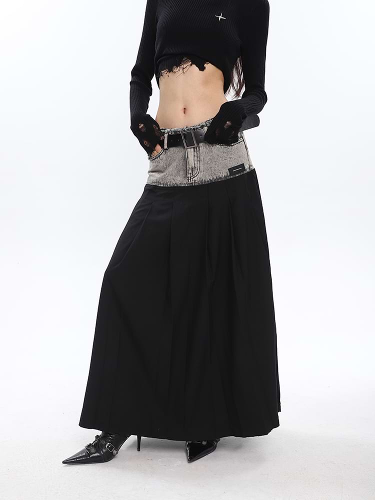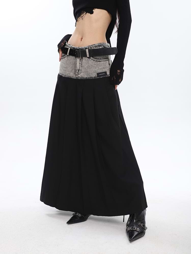 Read full Return PolicyThis Denim Patchwork Pleated Midi Skirt is perfect for adding a touch of style to your casual wardrobe. Its patchwork design lends it an intricate, unique look that will set you apart, while the pleated hemline can be styled with both boots or sandals. Wear it with a crop top for a cool, laid-back look.