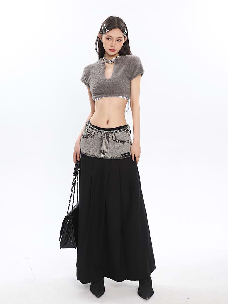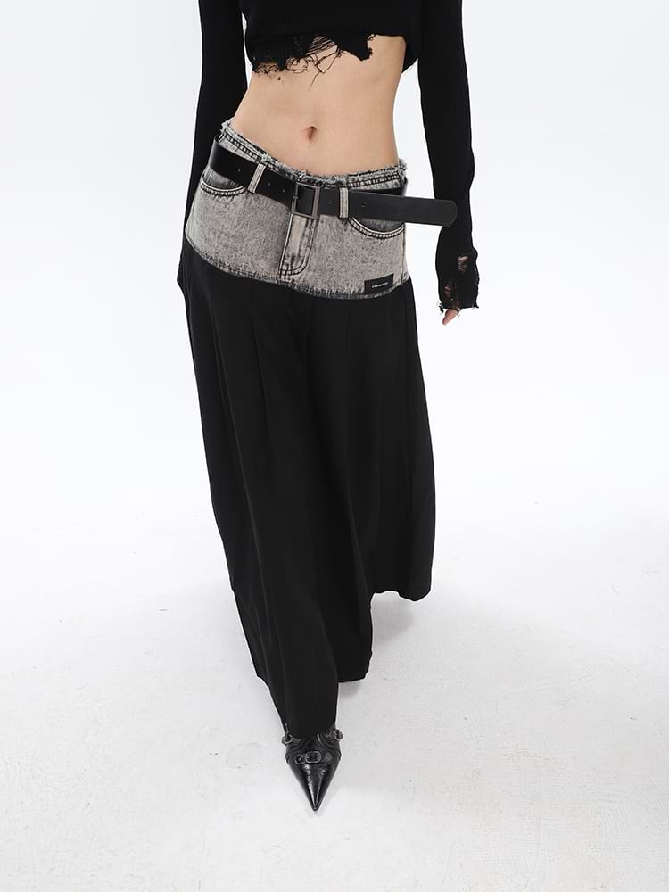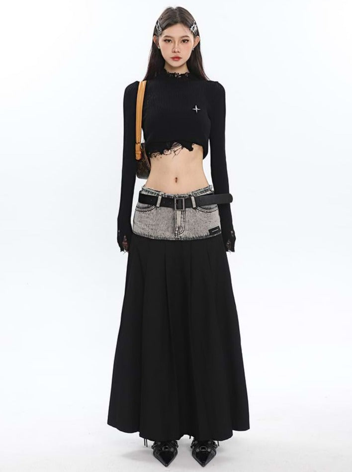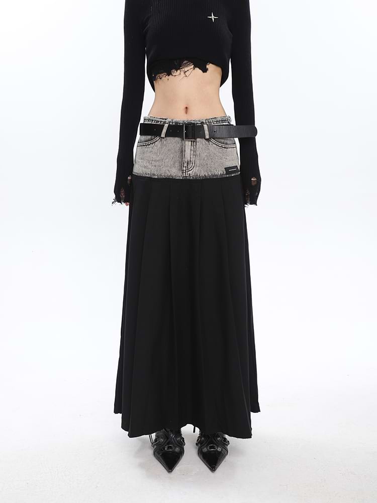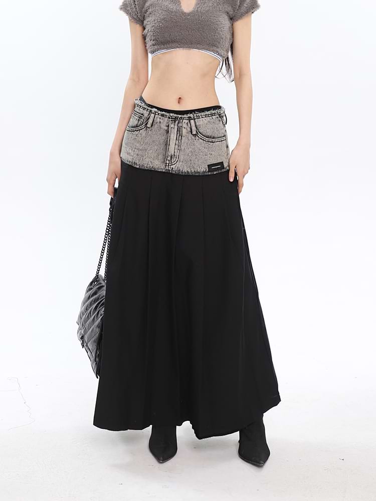 Read full Return PolicyThis Denim Patchwork Pleated Midi Skirt is perfect for adding a touch of style to your casual wardrobe. Its patchwork design lends it an intricate, unique look that will set you apart, while the pleated hemline can be styled with both boots or sandals. Wear it with a crop top for a cool, laid-back look.