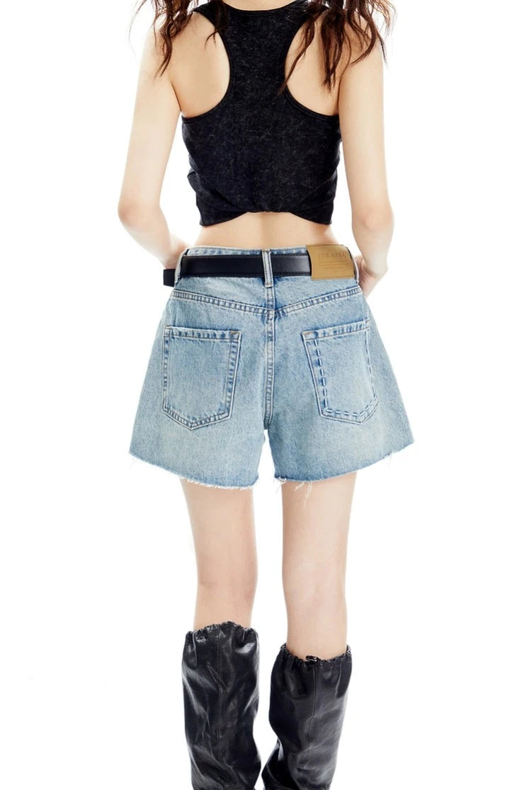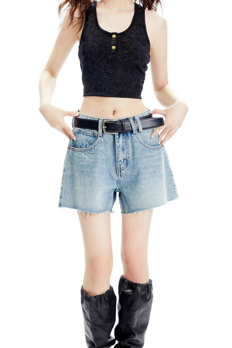 Denim Raw Hem Wide-Leg Shorts