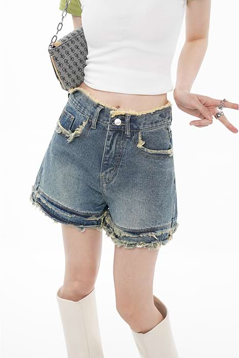 Read full Return PolicyIt's time to show off those legs - get ready to make a statement with these Distressed Hem Denim Shorts! Perfect for pairing with any top, this classic style will become a staple in your wardrobe. Whether you're dressing up or down, these shorts are versatile enough to be dressed up with boots and a blouse, or down with flats and a tank. With their distressed hem and soft fabric, these shorts will easily become your go-to for warm weather days. Embrace your casual look this season!