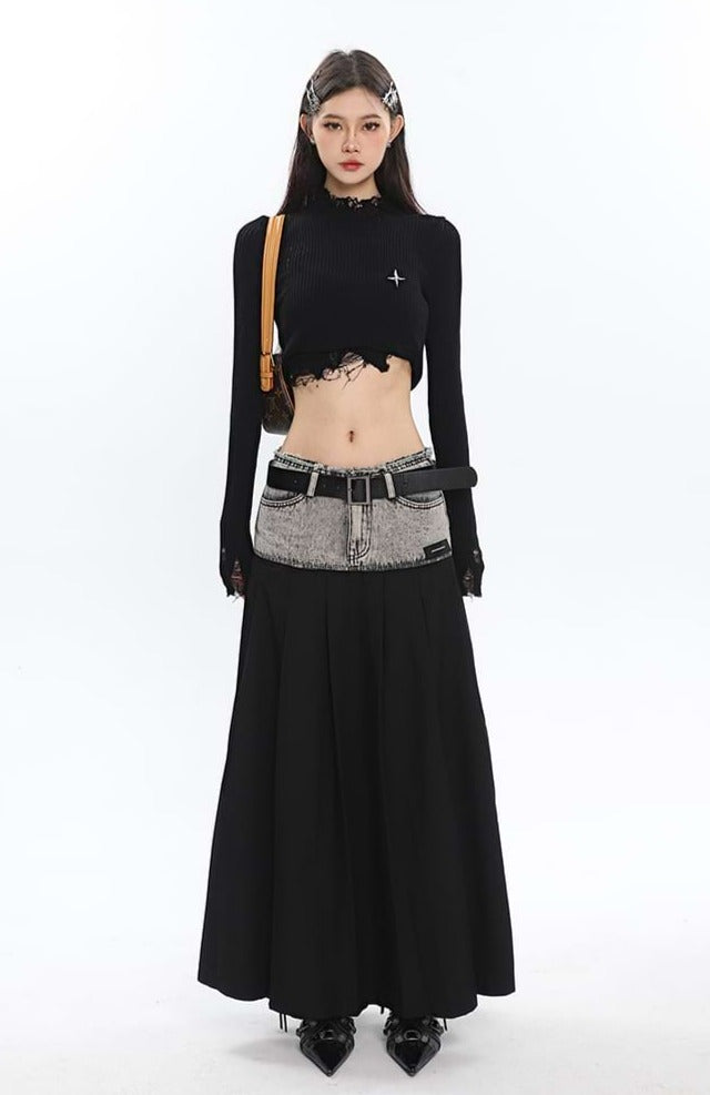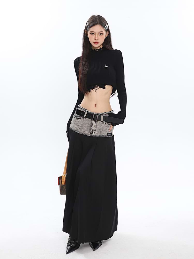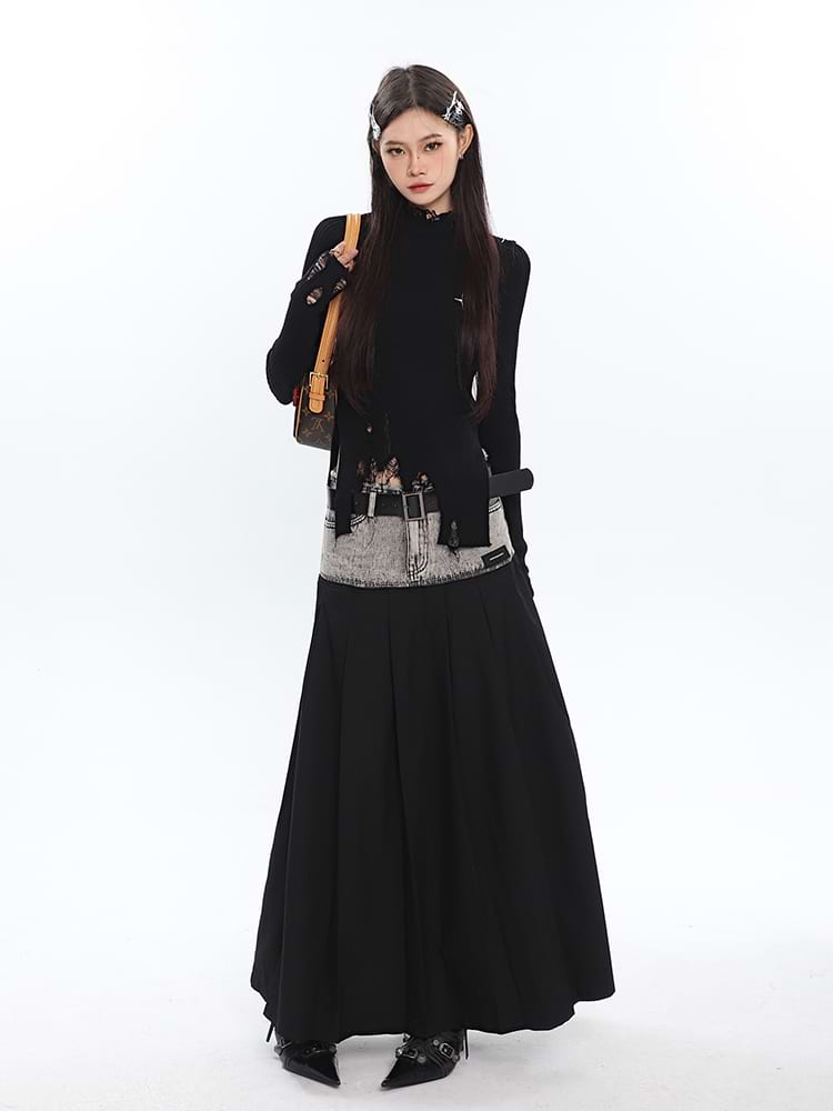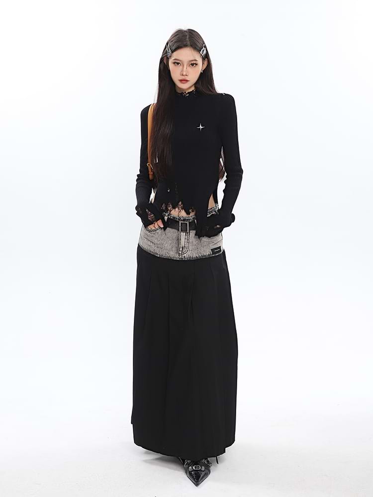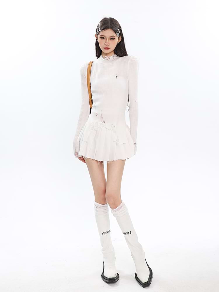 Read full Return PolicyLook stylish and chic with this distressed high neck long sleeve top. Its distressed details and versatile neckline create a timeless casual look that pairs perfectly with both long and short skirts. Show off your unique sense of fashion with this must-have piece.