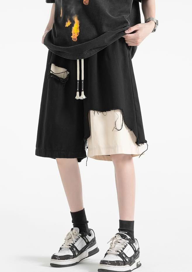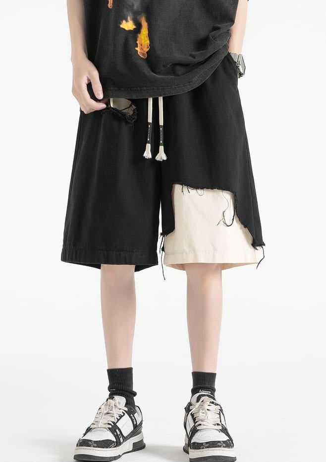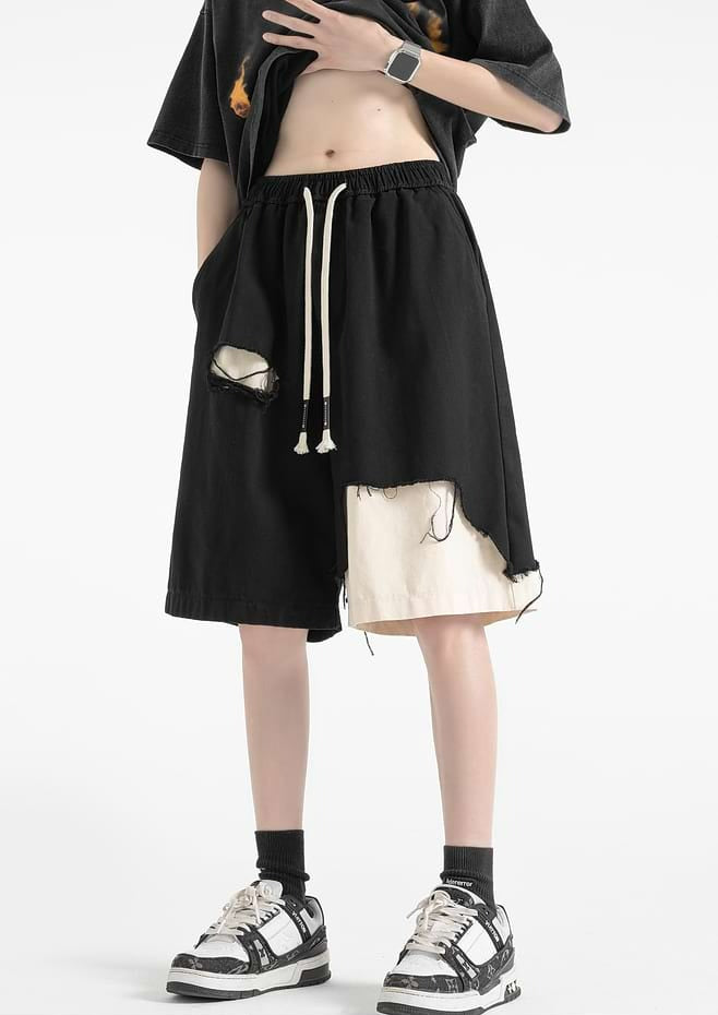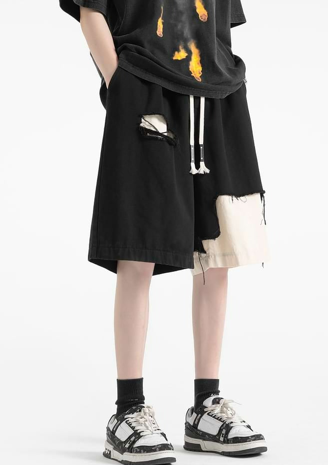 Distressed Patchwork Elastic Waist Shorts