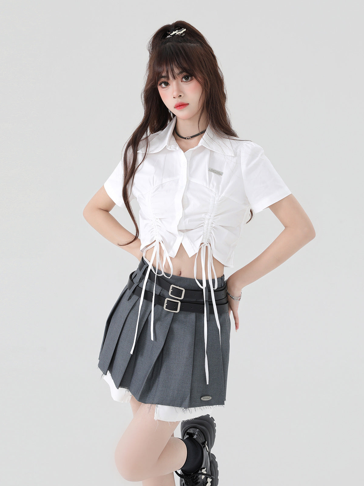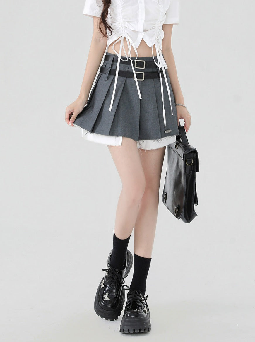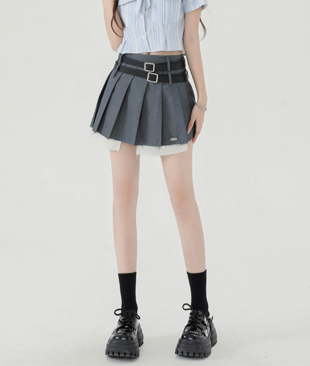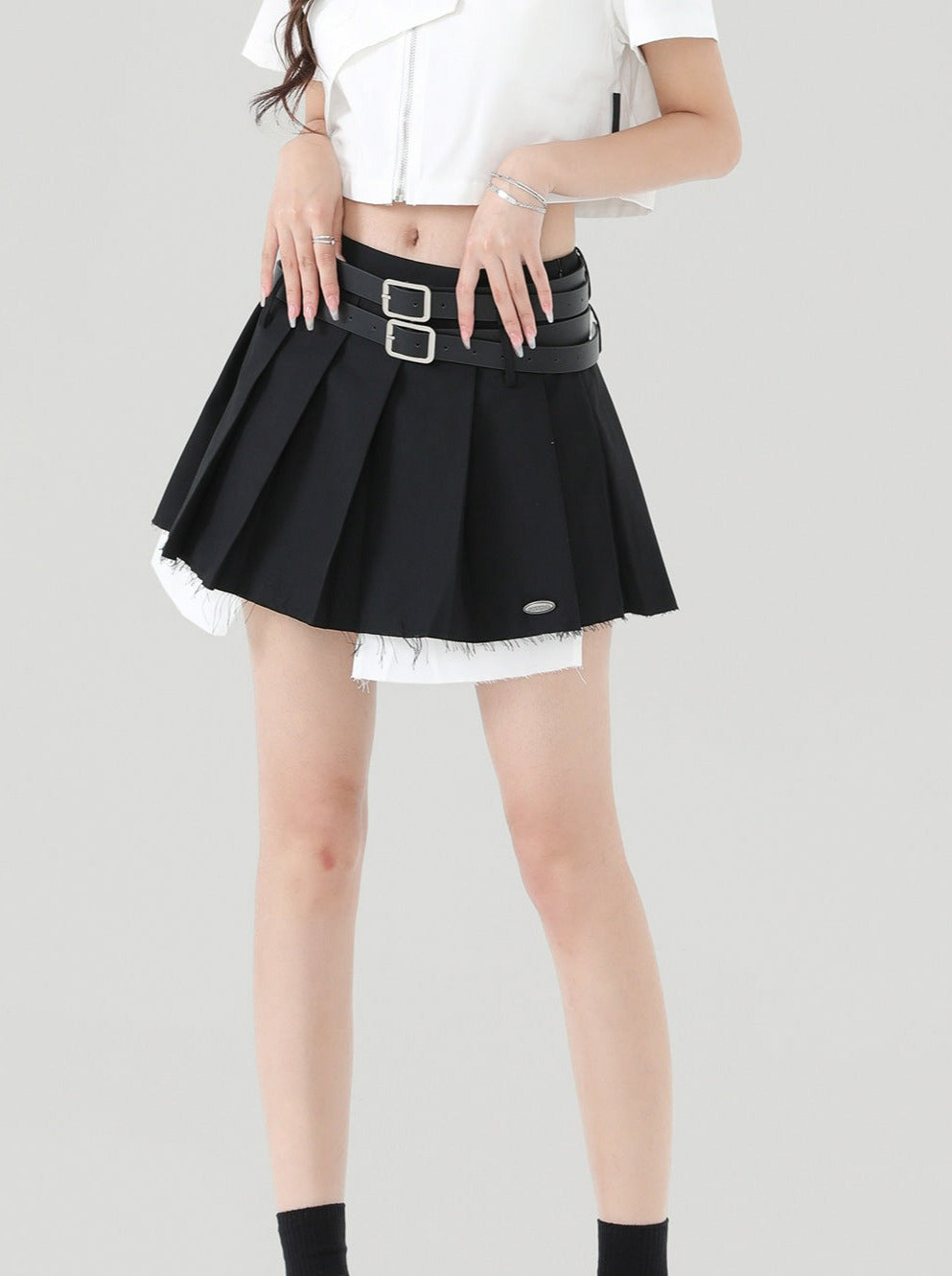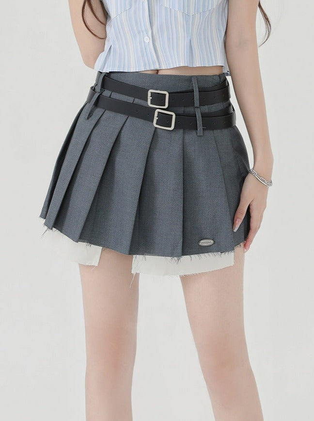 Read full Return PolicyThis Double Belt Pleated Mini Skirt is designed with subtle pleats and two removable belts, creating a look that is perfect for any casual occasion. Its versatile design makes it simple to pair with a crop top or simple tee, as well as flats, sneakers, or boots. Make a statement you feel comfortable in with this unique and flexible skirt.