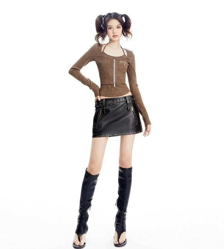 Pair this mini skirt with a tucked-in graphic tee and combat boots for an afternoon concert, or dress it up with a chic blouse and ankle strap heels for a night out. The skirt's functional zippers add both style and ease, allowing for a customized fit and look.