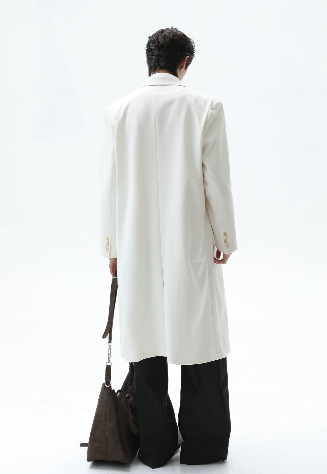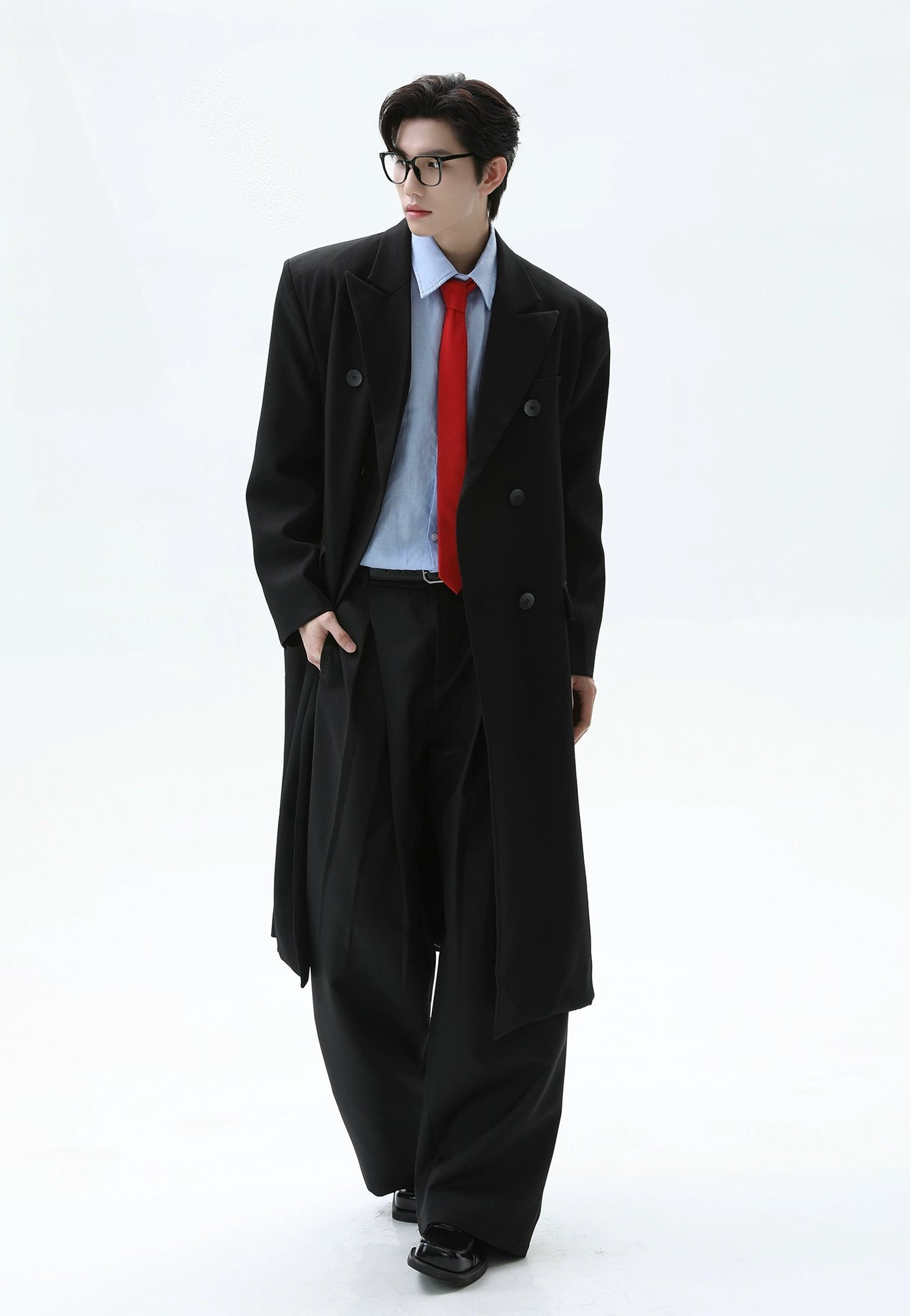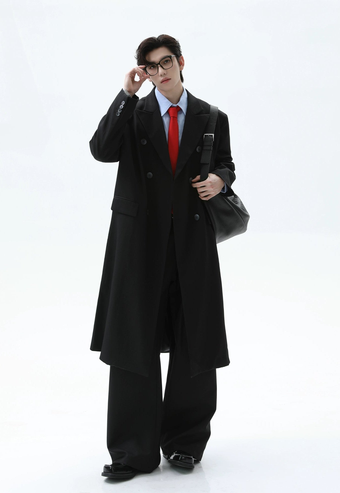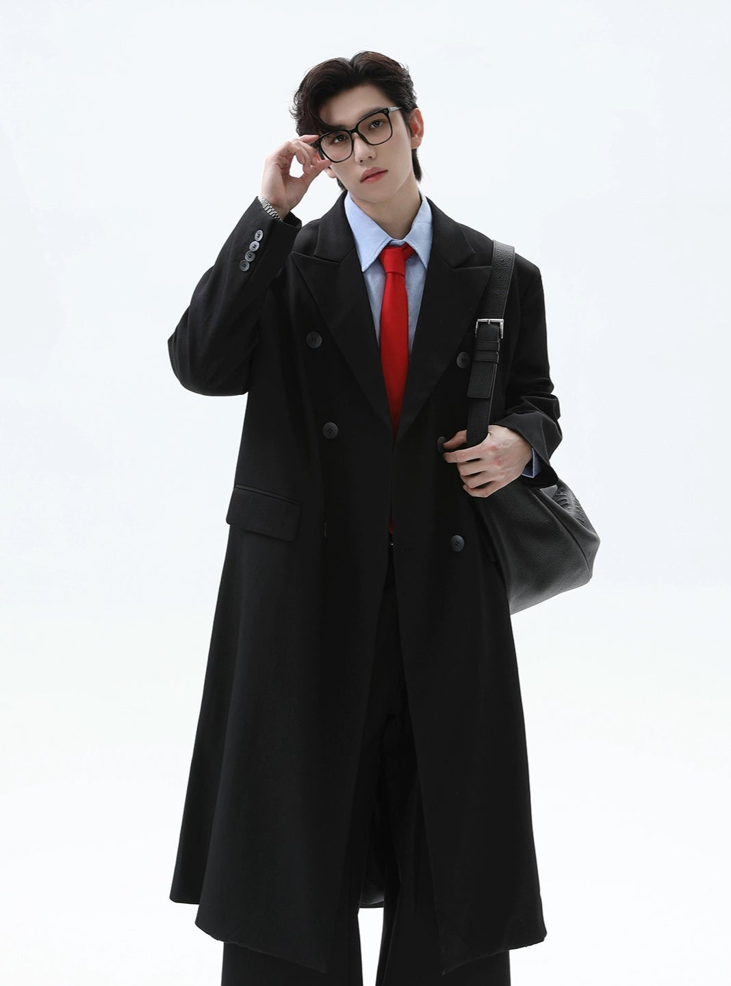 With a strong shoulder line and refined silhouette, it's a statement layer that adds edge without trying too hard. Crafted from a twill-textured blend for subtle depth and durability, this long coat balances polish and ease. The double-breasted front and lapel collar bring in classic structure, while thoughtful design choices like side-seam pockets and a smooth lining keep things functional and wearable.