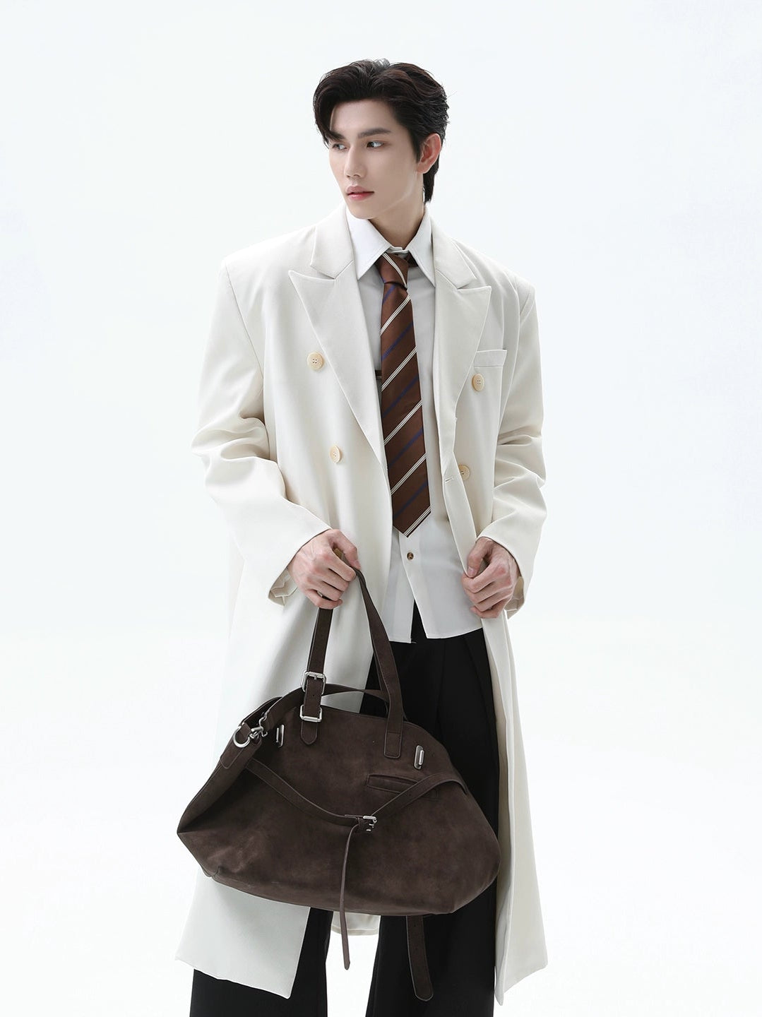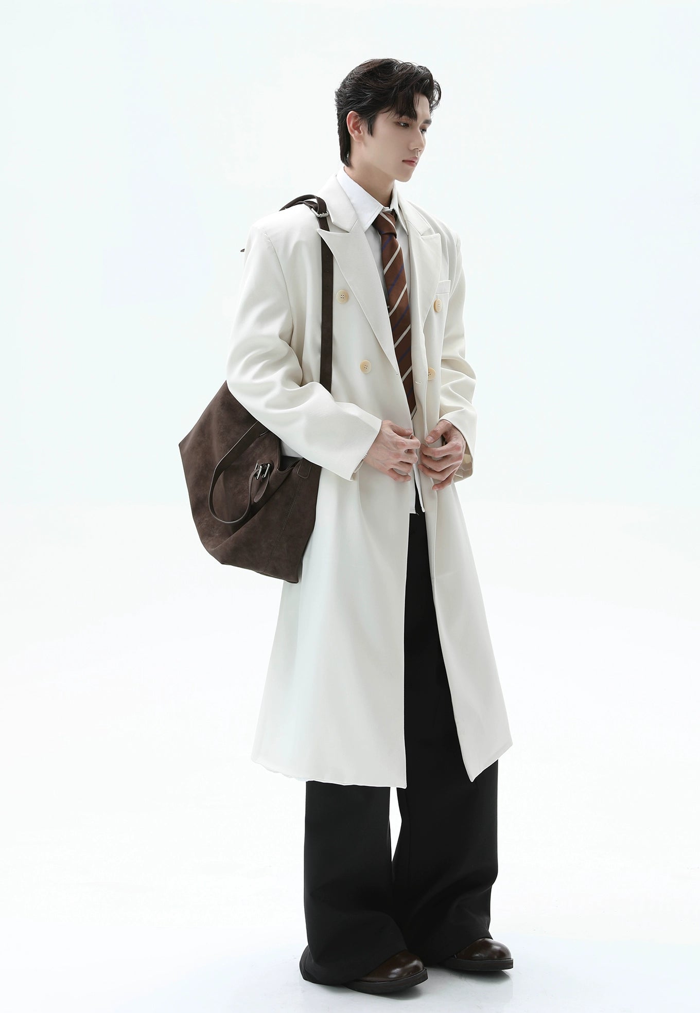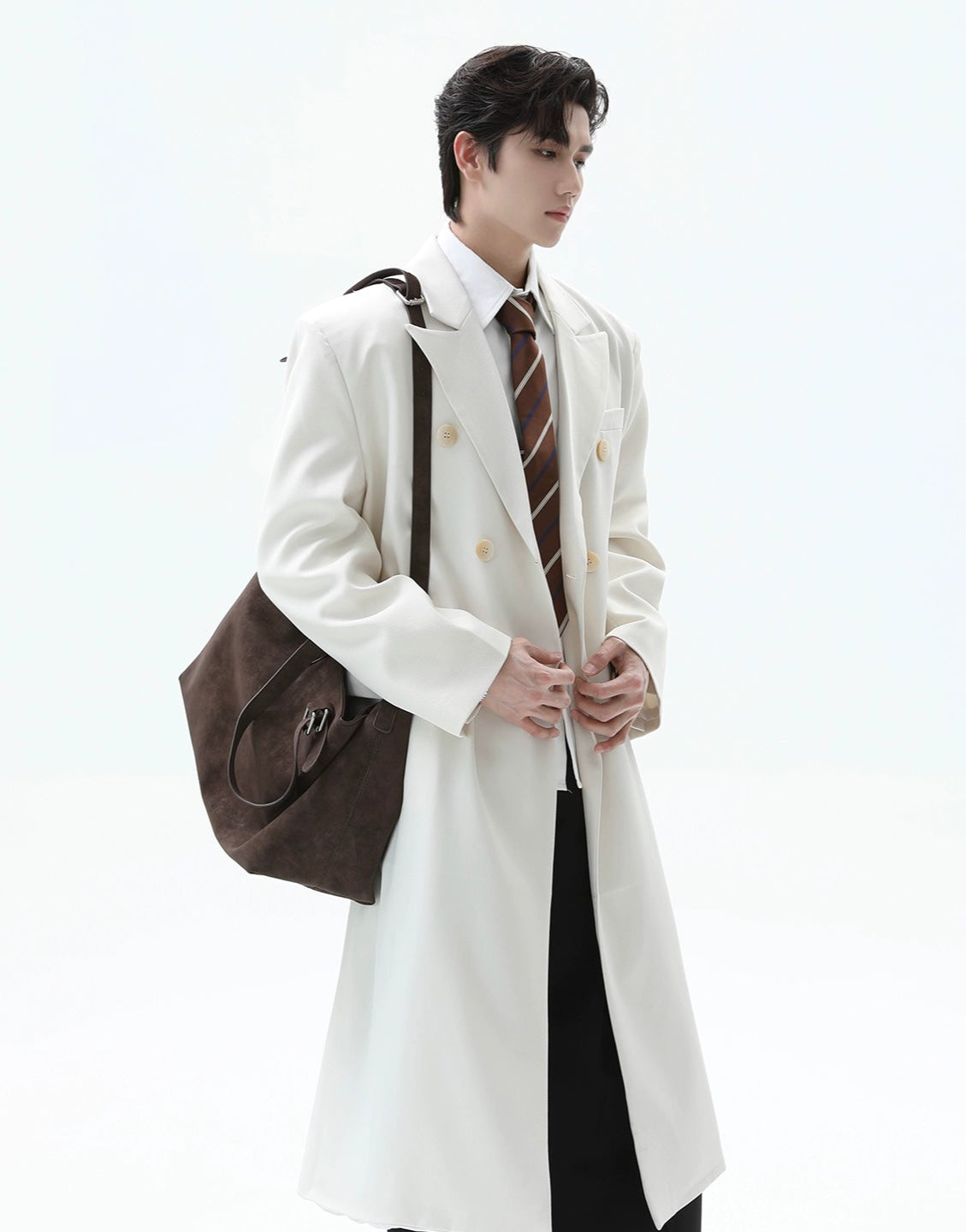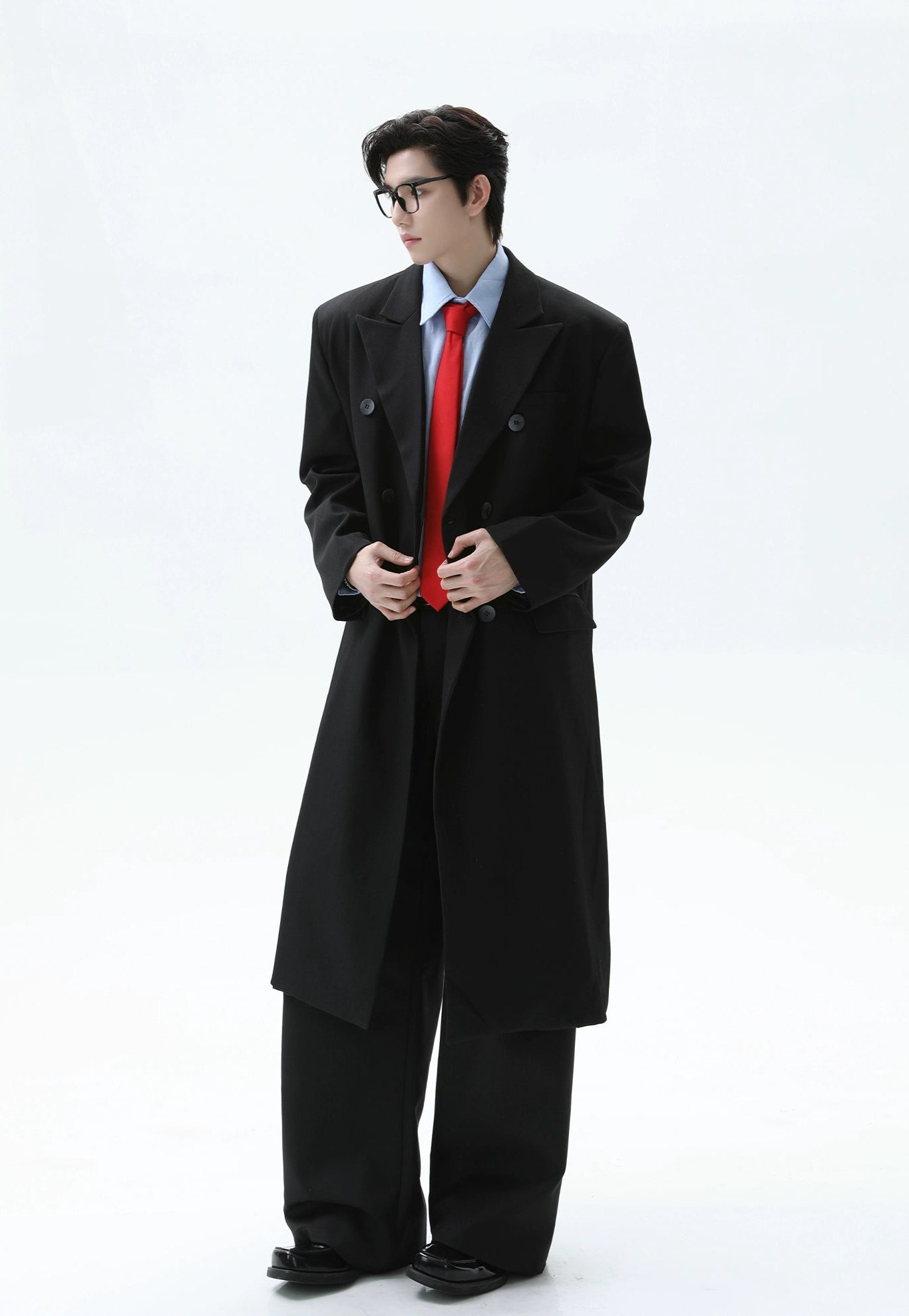 With a strong shoulder line and refined silhouette, it's a statement layer that adds edge without trying too hard. Crafted from a twill-textured blend for subtle depth and durability, this long coat balances polish and ease. The double-breasted front and lapel collar bring in classic structure, while thoughtful design choices like side-seam pockets and a smooth lining keep things functional and wearable.