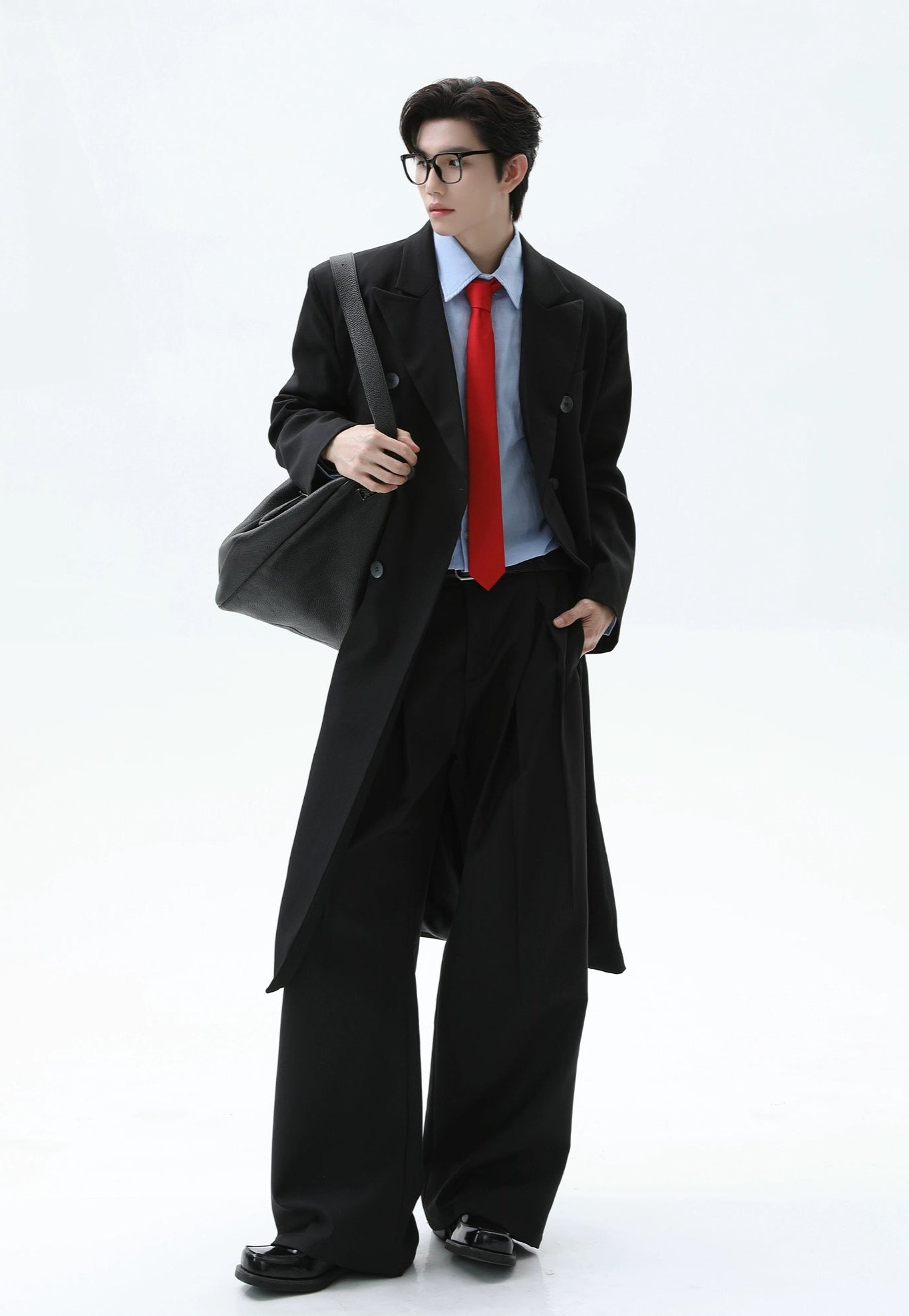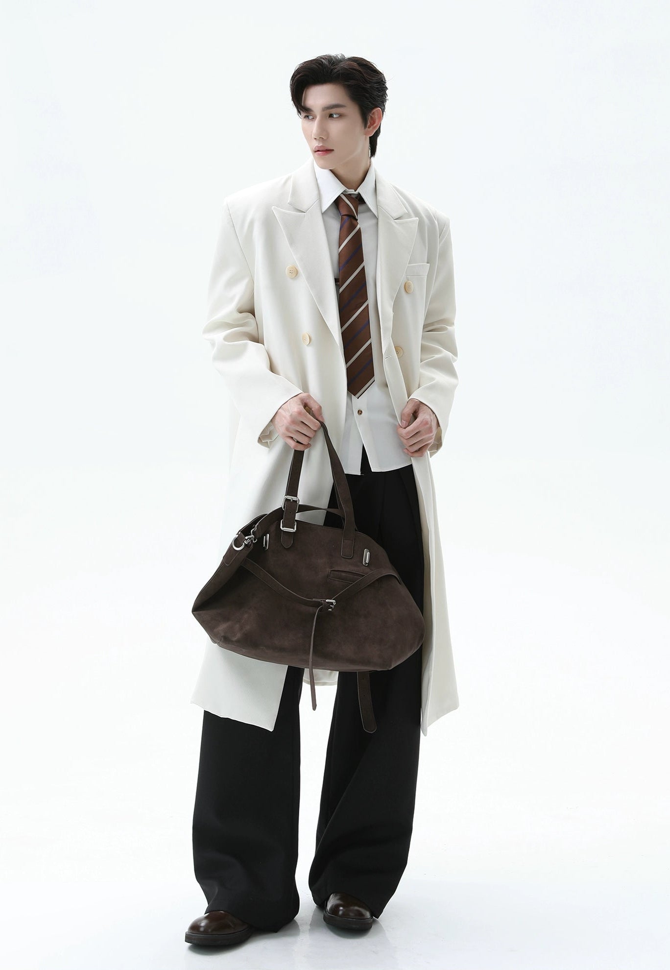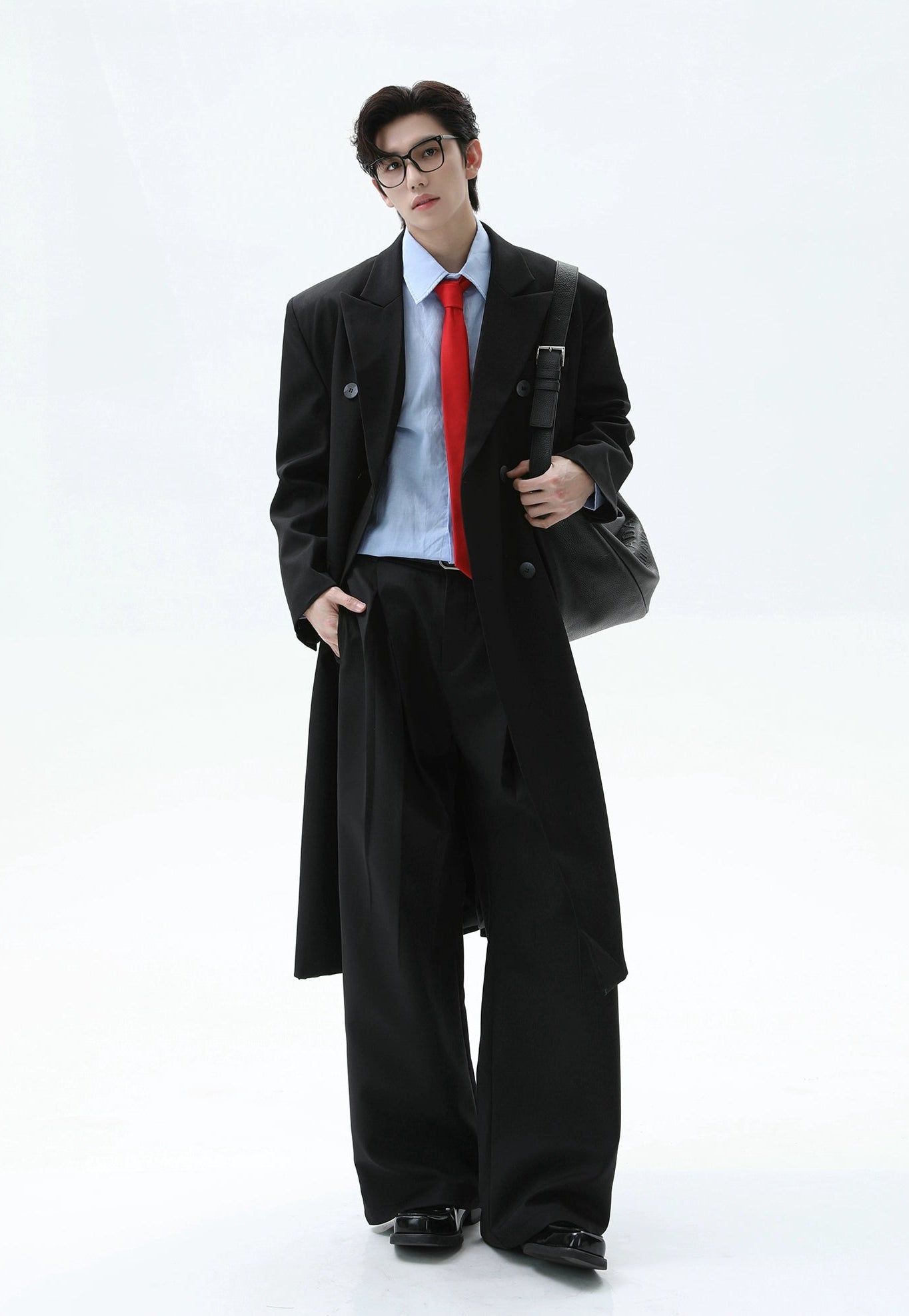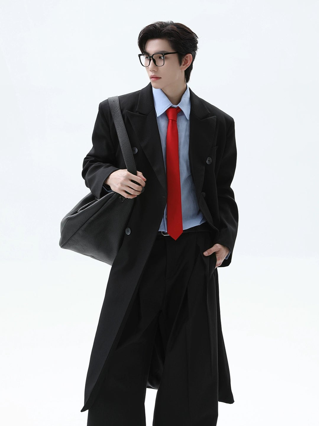 With a strong shoulder line and refined silhouette, it's a statement layer that adds edge without trying too hard. Crafted from a twill-textured blend for subtle depth and durability, this long coat balances polish and ease. The double-breasted front and lapel collar bring in classic structure, while thoughtful design choices like side-seam pockets and a smooth lining keep things functional and wearable.