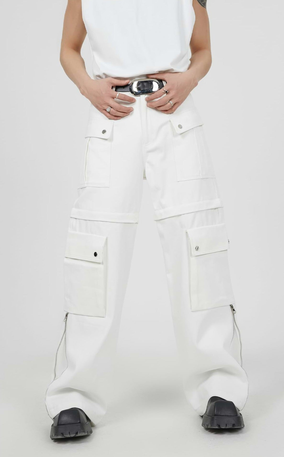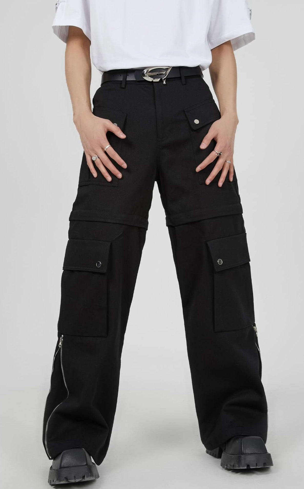 Double Side Zip Pants with Multiple Pockets